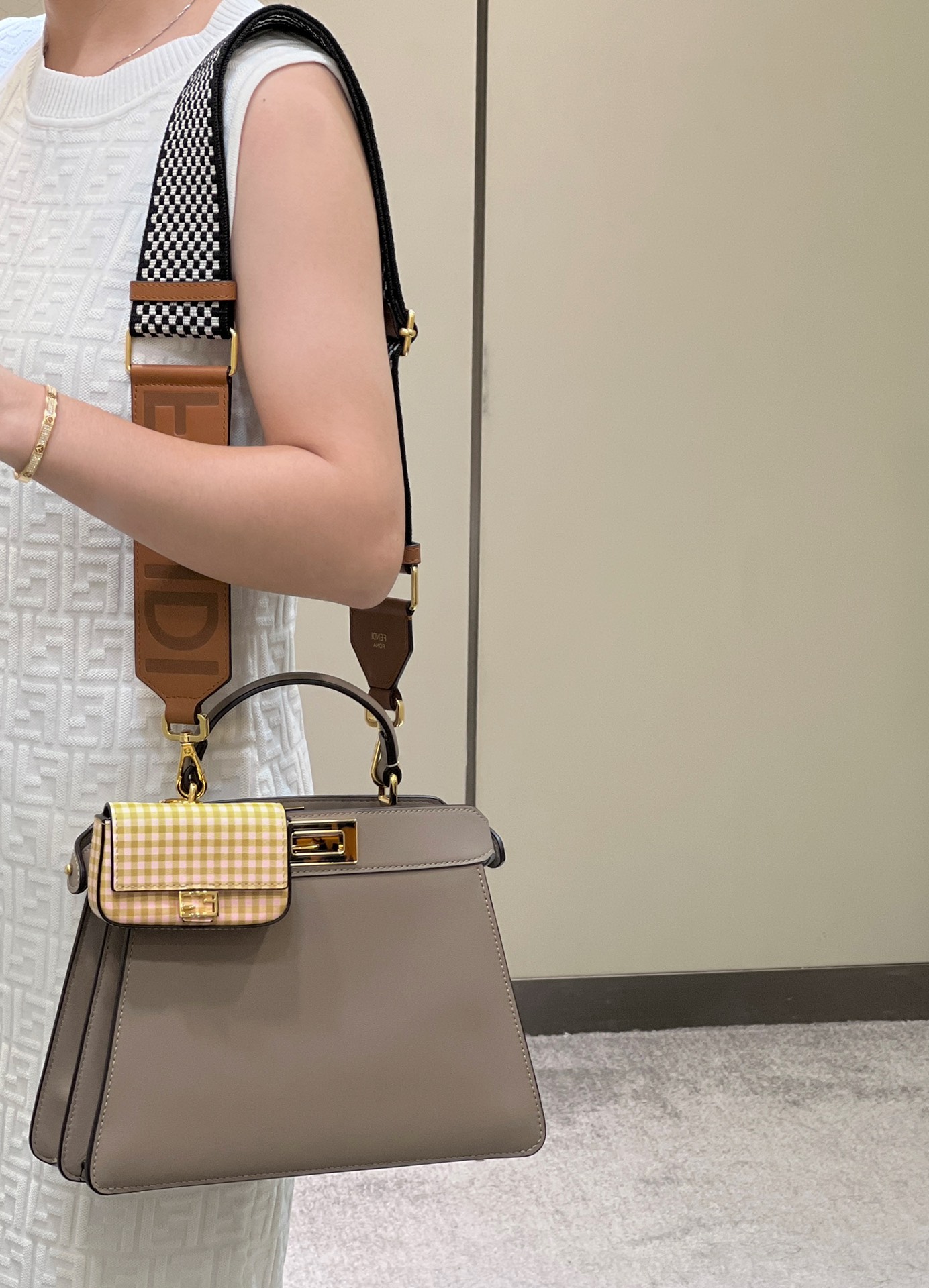 這款包包是AAAAA 1:1 質量(非常棒). 使用了和原版一模一樣的材料. 商標部分也保持了和芬迪/Fendi一樣. 圖片拍攝是實物包包拍攝, 您所收到的實物保證和我們圖片一模一樣.