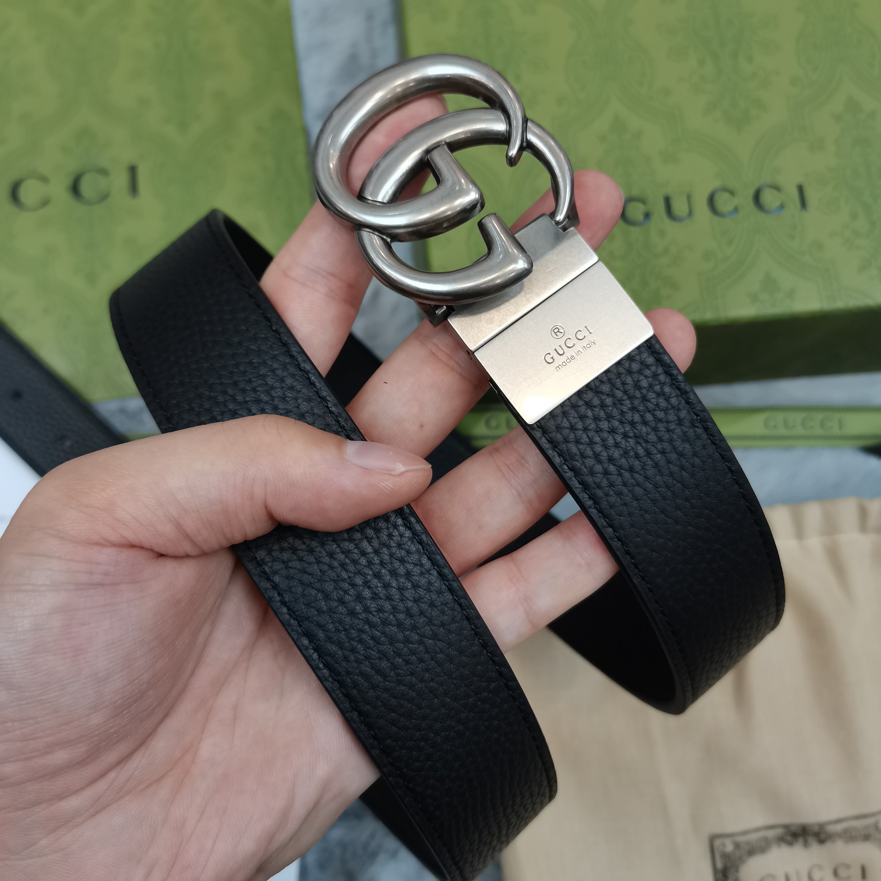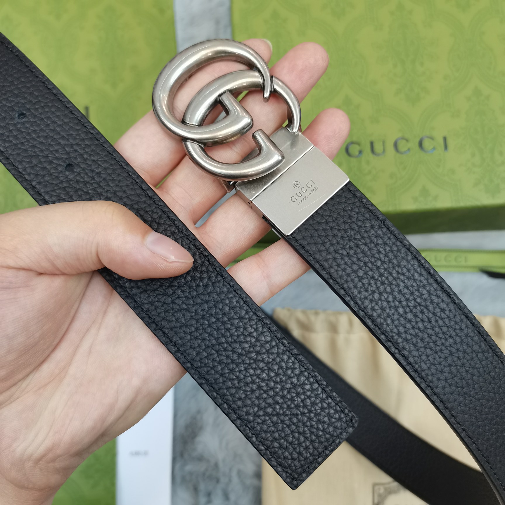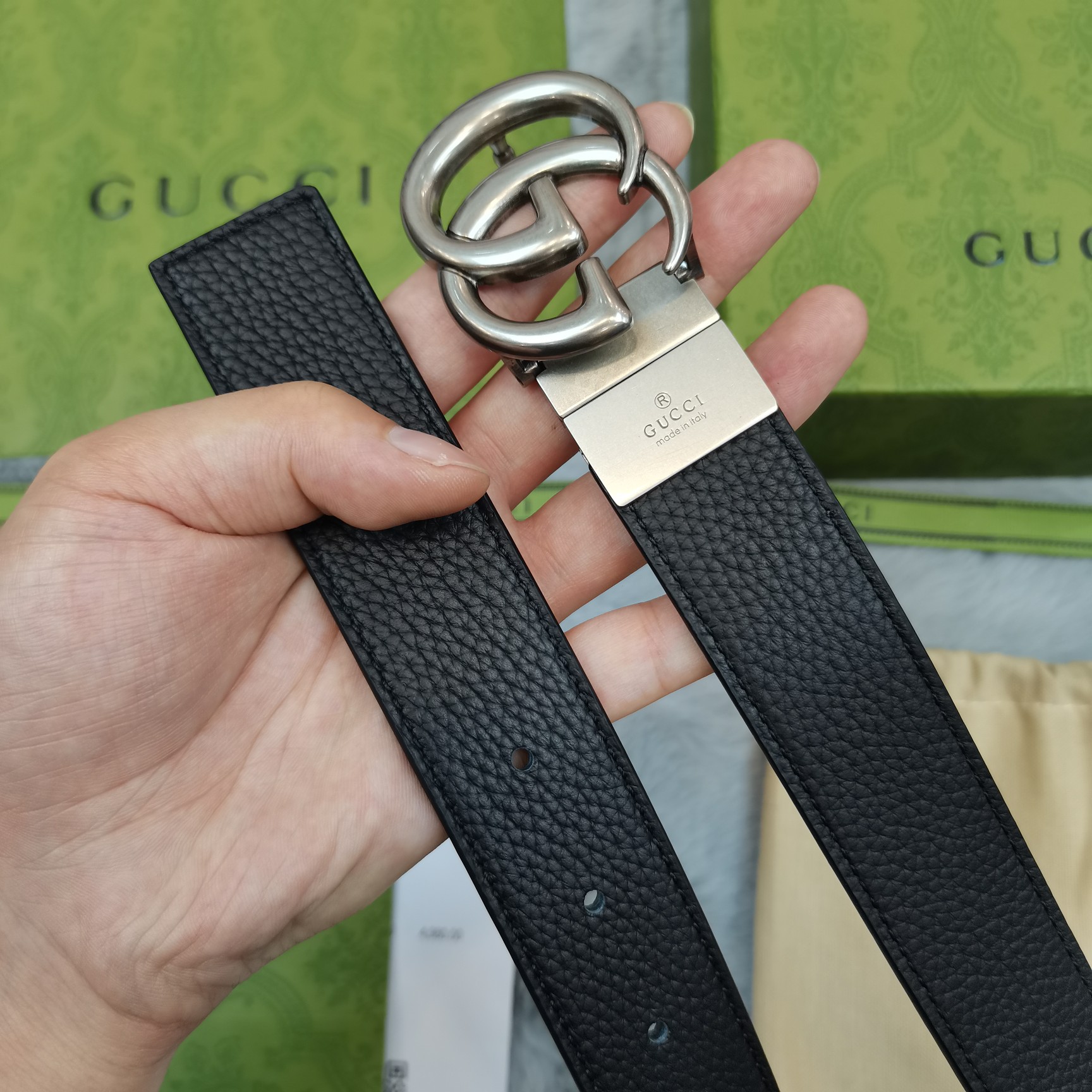 這款皮帶是AAAAA 1:1 質量(非常棒). 使用了和原版一模一樣的材料. 商標部分也保持了和古奇/Gucci一樣. 圖片拍攝是實物皮帶拍攝, 您所收到的實物保證和我們圖片一模一樣.
