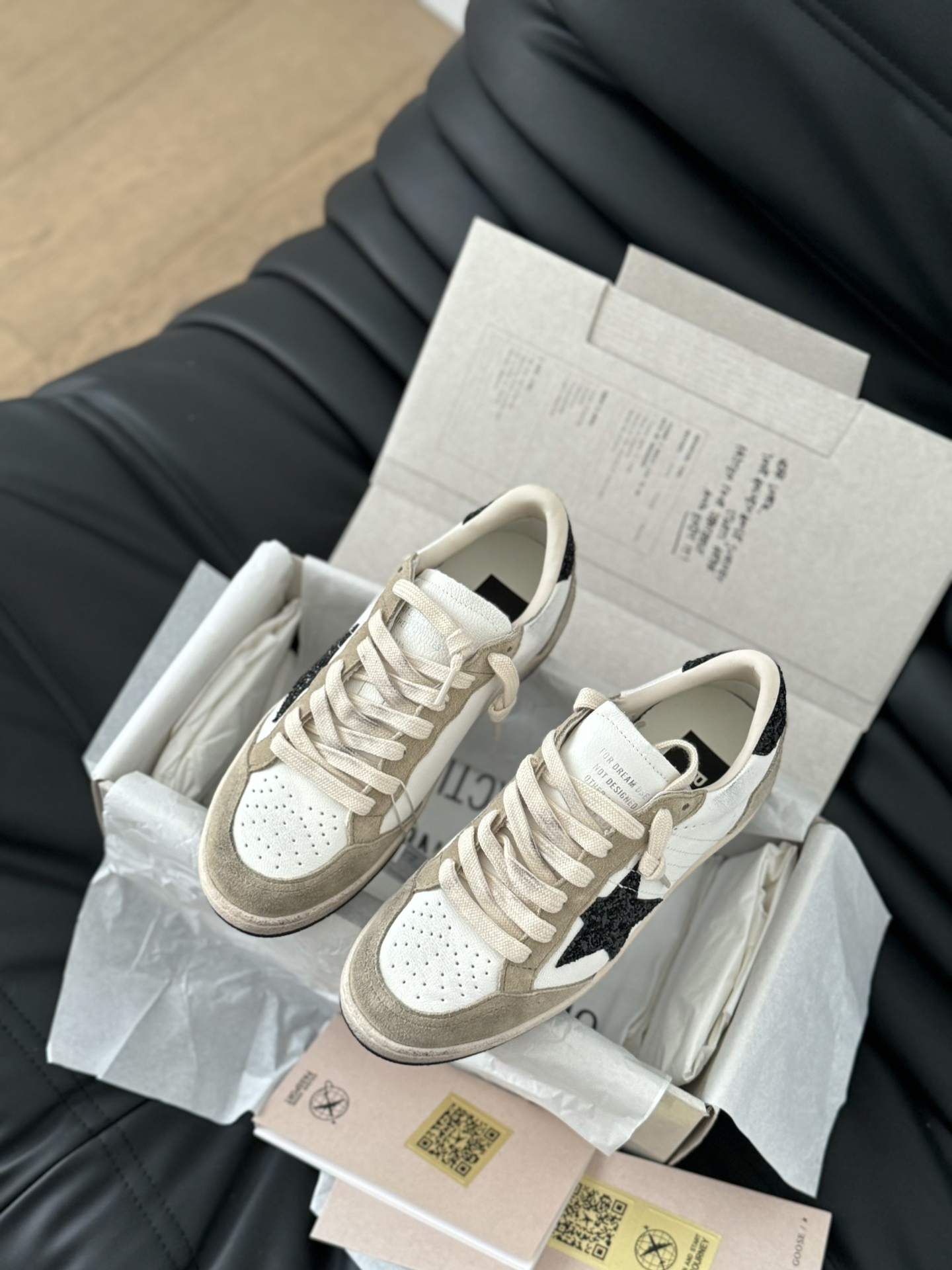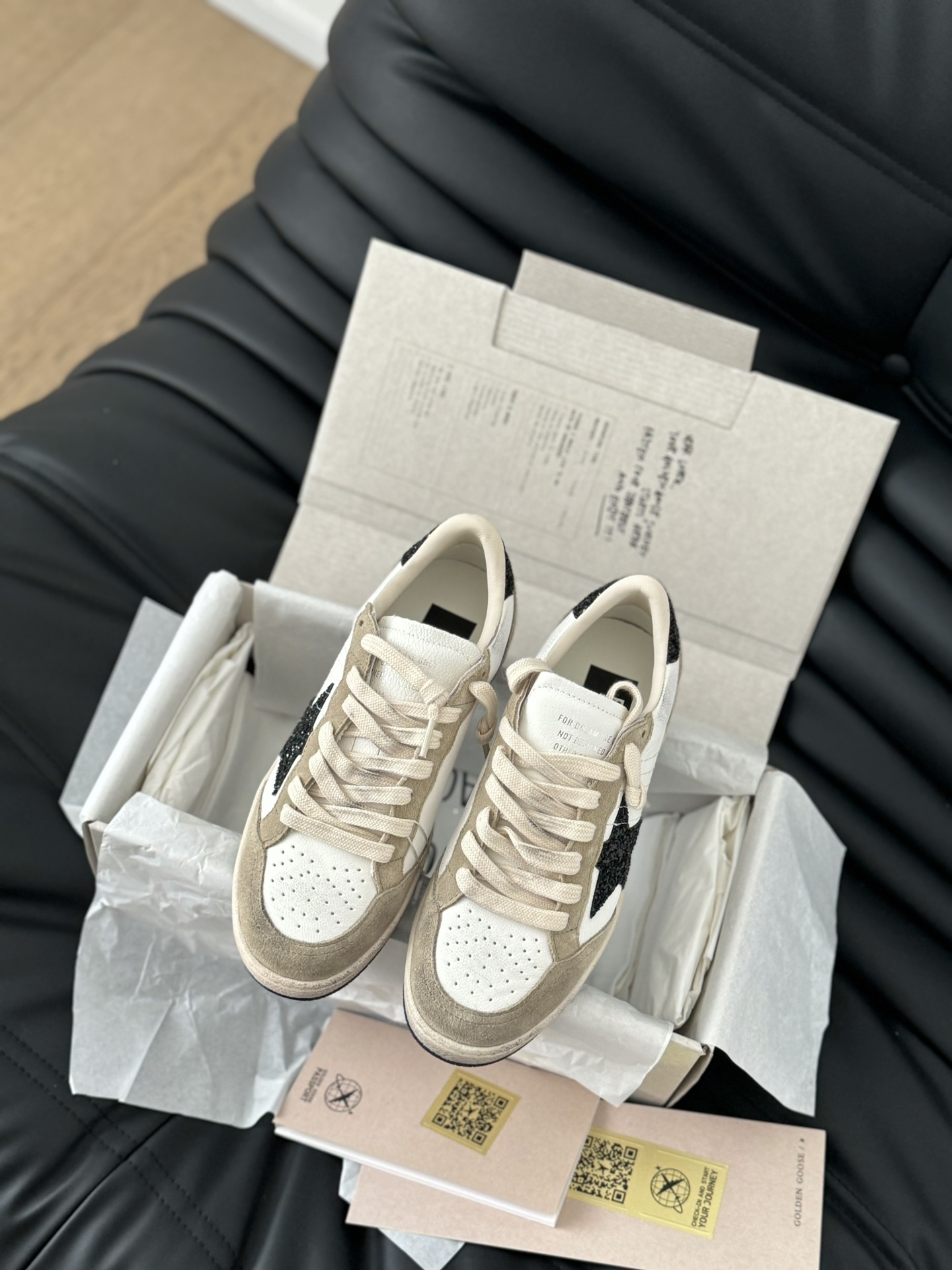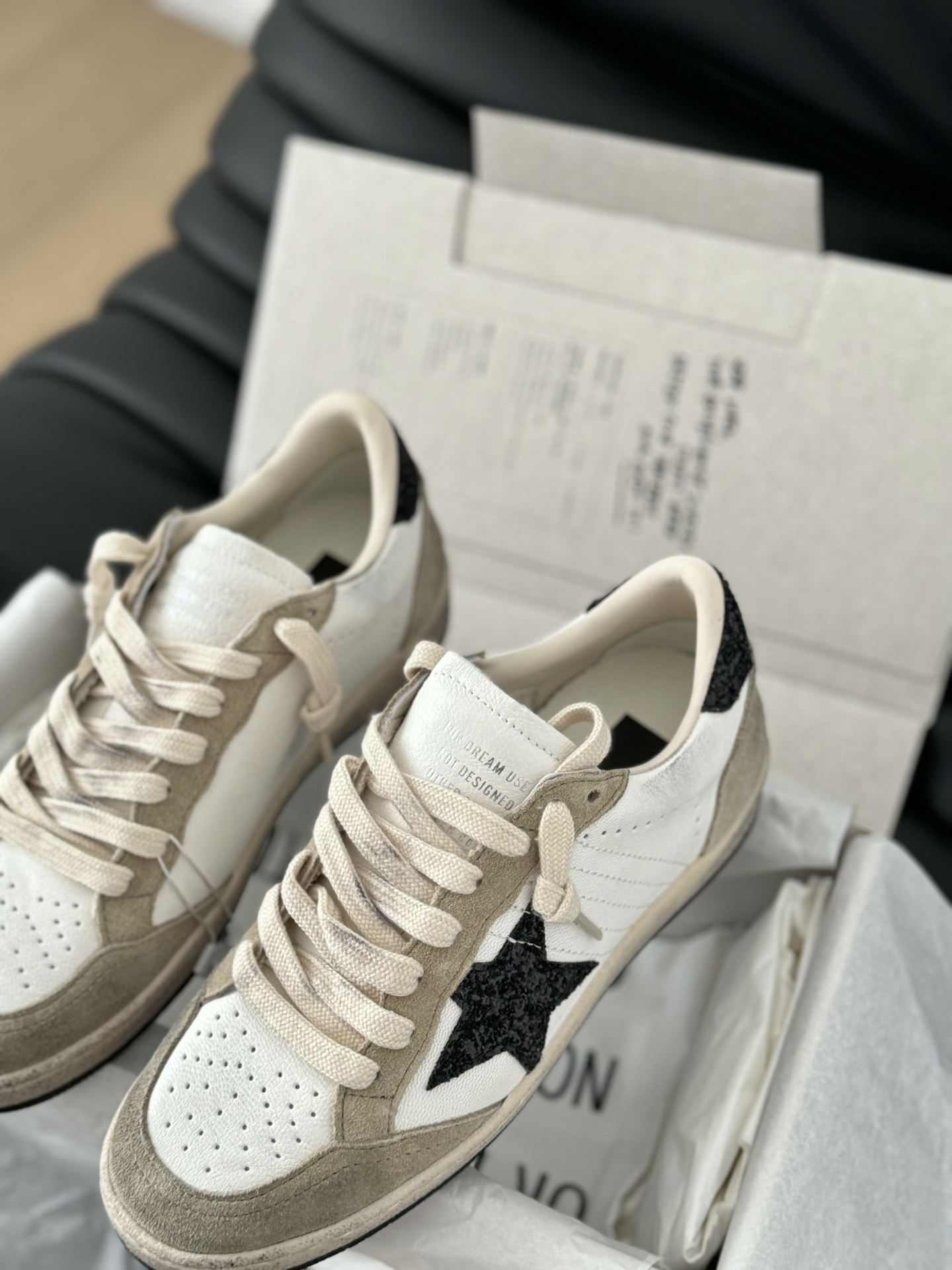 這款鞋子是AAAAA 1:1 質量(非常棒). 使用了和原版一模一樣的材料. 商標部分也保持了和Golden Goose一樣. 圖片拍攝是實物鞋子拍攝, 您所收到的實物保證和我們圖片一模一樣.