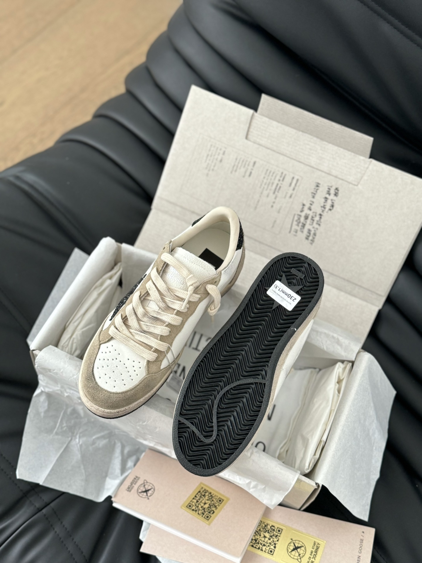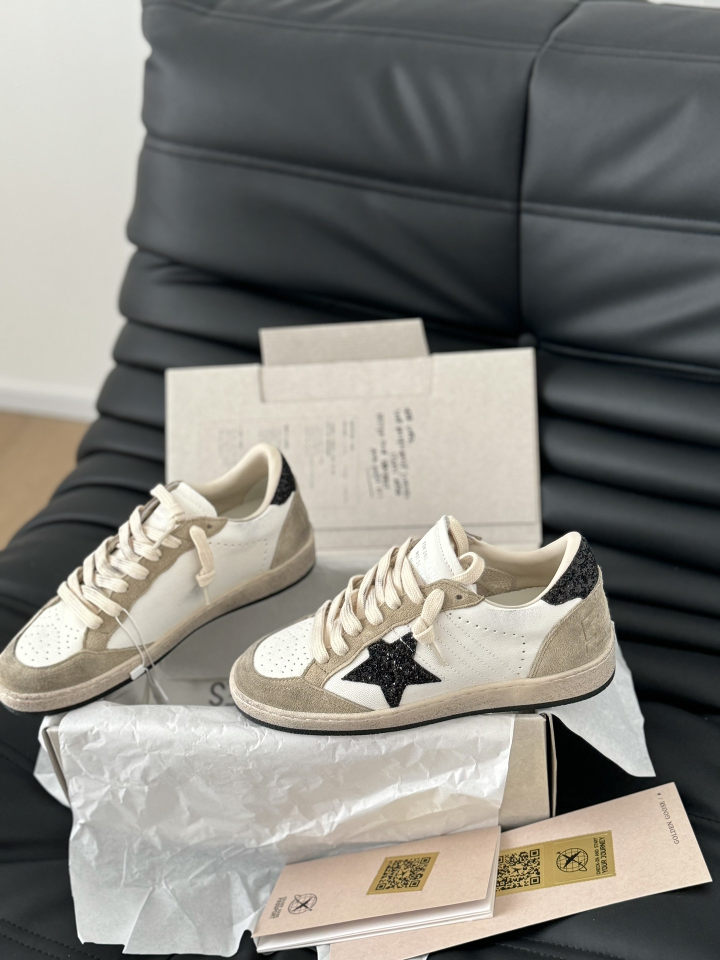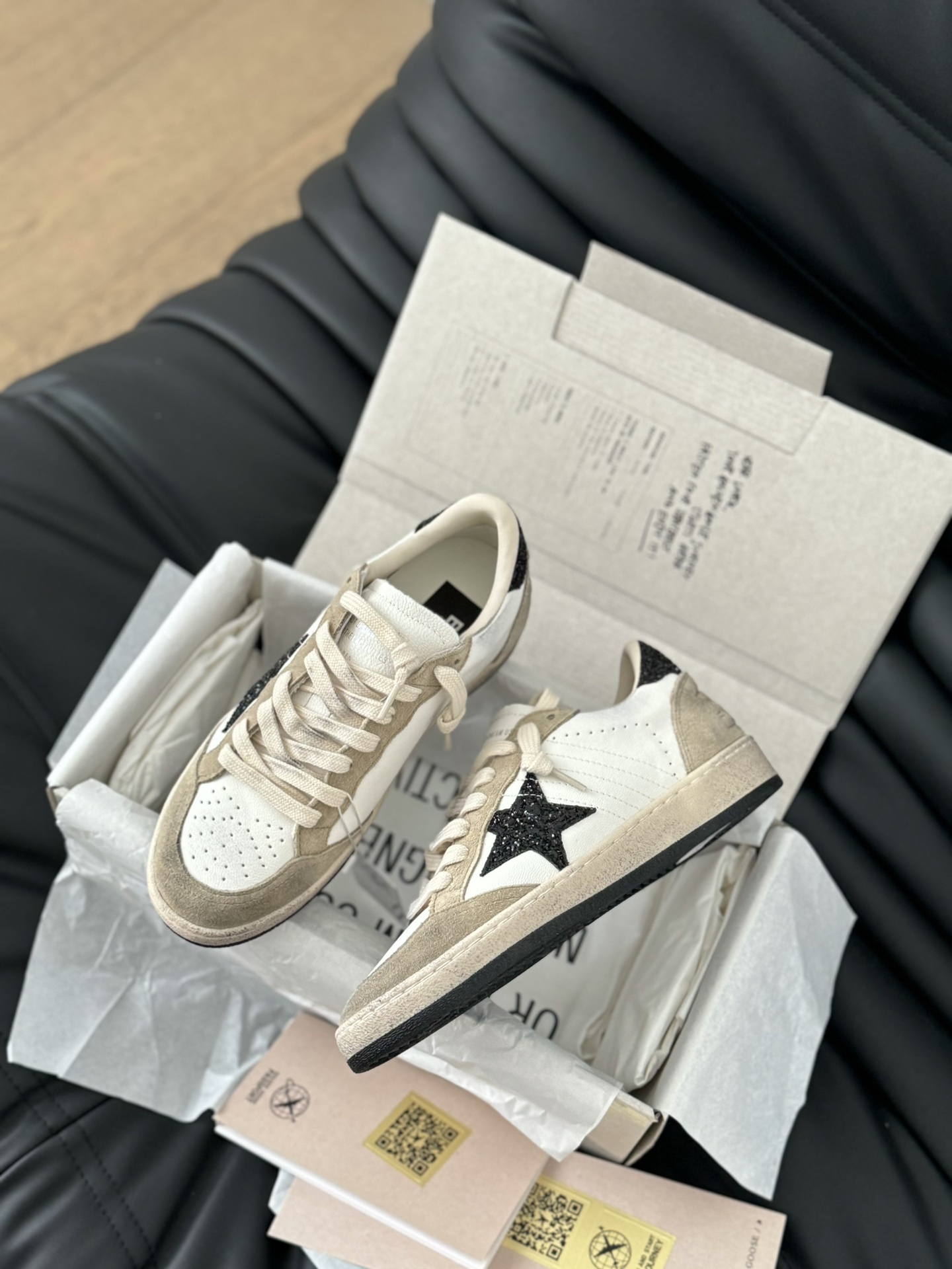 這款鞋子是AAAAA 1:1 質量(非常棒). 使用了和原版一模一樣的材料. 商標部分也保持了和Golden Goose一樣. 圖片拍攝是實物鞋子拍攝, 您所收到的實物保證和我們圖片一模一樣.