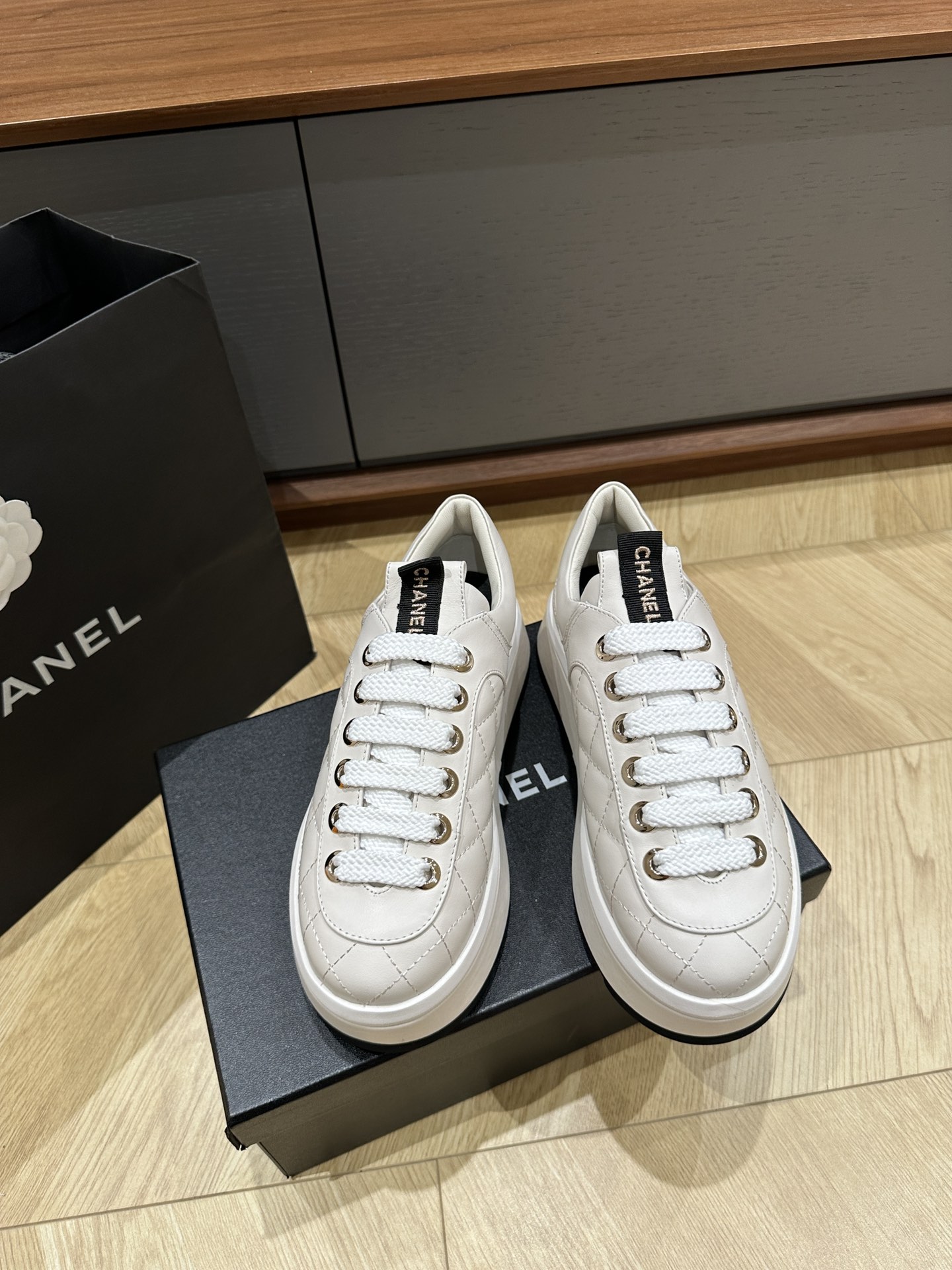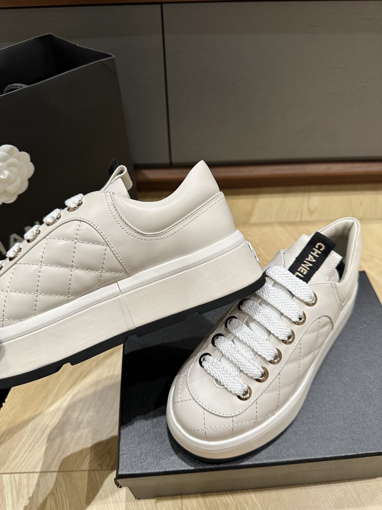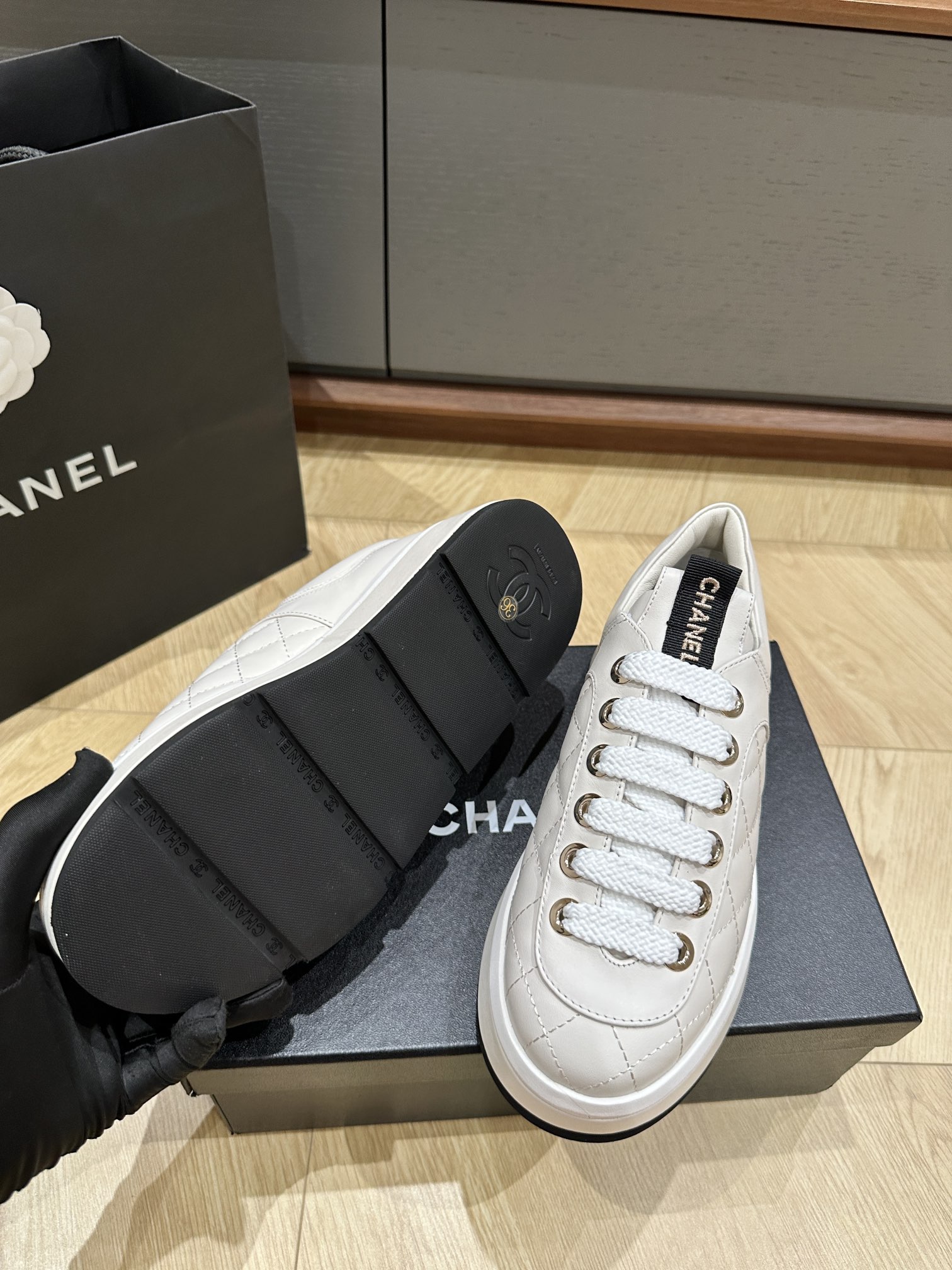 這款鞋子是AAAAA 1:1 質量(非常棒). 使用了和原版一模一樣的材料. 商標部分也保持了和香奈兒/Chanel一樣. 圖片拍攝是實物鞋子拍攝, 您所收到的實物保證和我們圖片一模一樣.