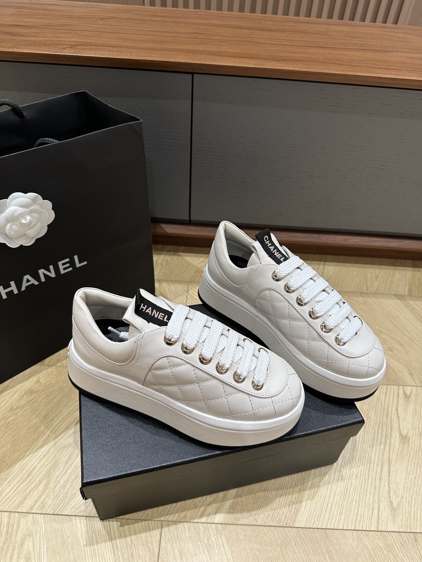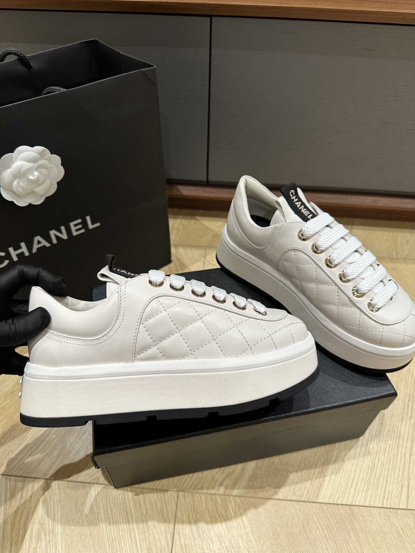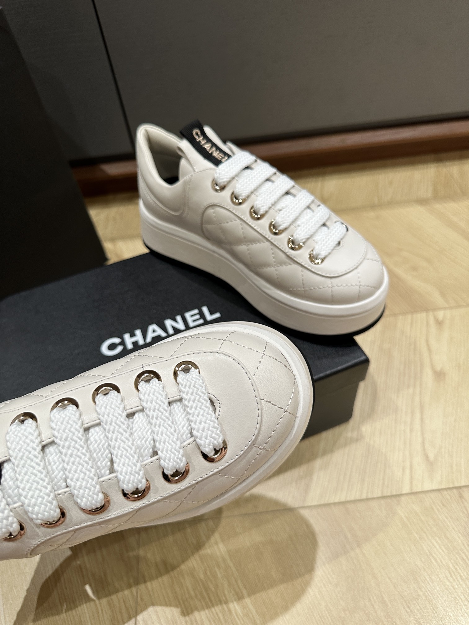 這款鞋子是AAAAA 1:1 質量(非常棒). 使用了和原版一模一樣的材料. 商標部分也保持了和香奈兒/Chanel一樣. 圖片拍攝是實物鞋子拍攝, 您所收到的實物保證和我們圖片一模一樣.