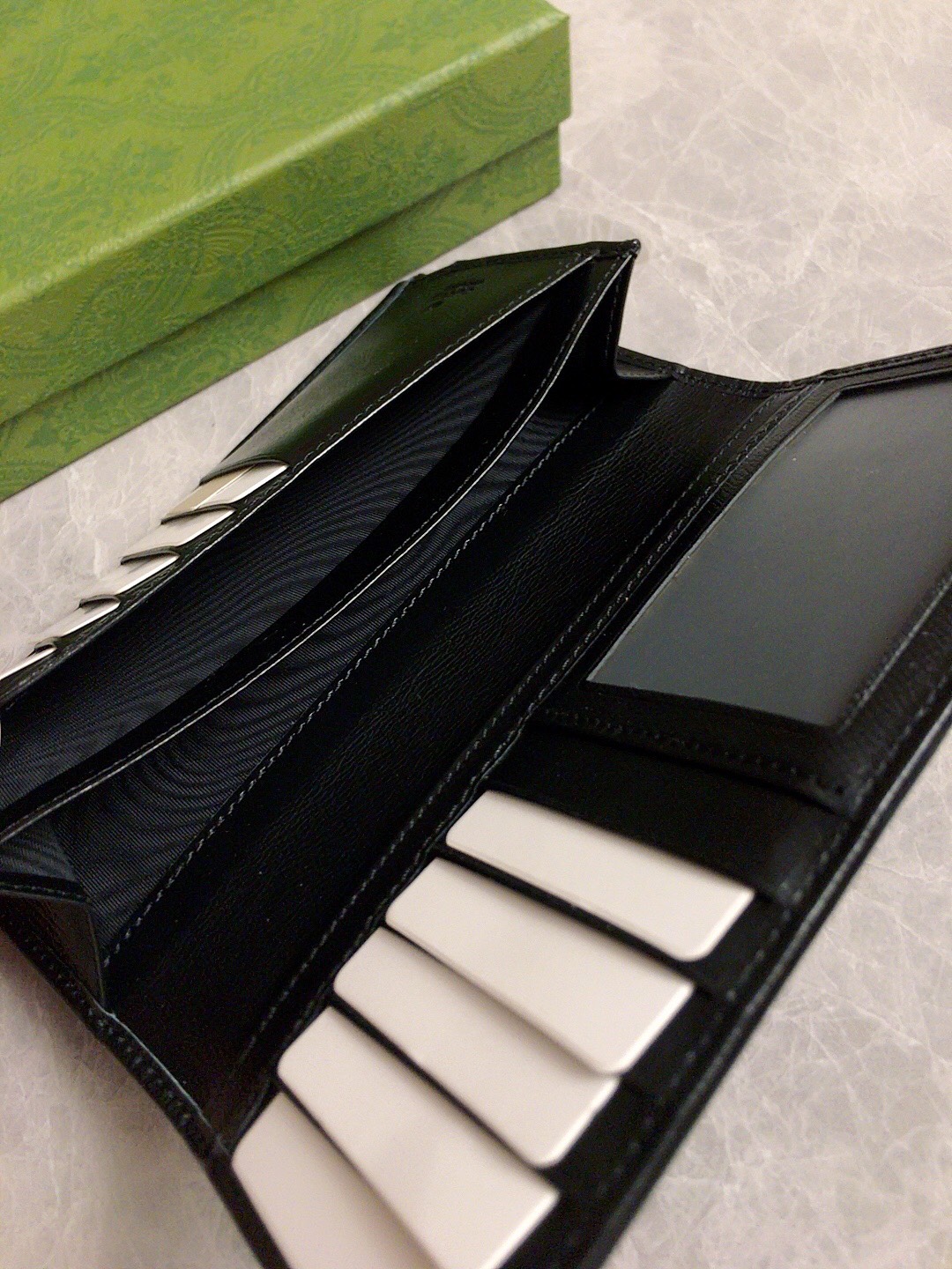 這款錢包是AAAAA 1:1 質量(非常棒). 使用了和原版一模一樣的材料. 商標部分也保持了和古奇/Gucci一樣. 圖片拍攝是實物錢包拍攝, 您所收到的實物保證和我們圖片一模一樣.