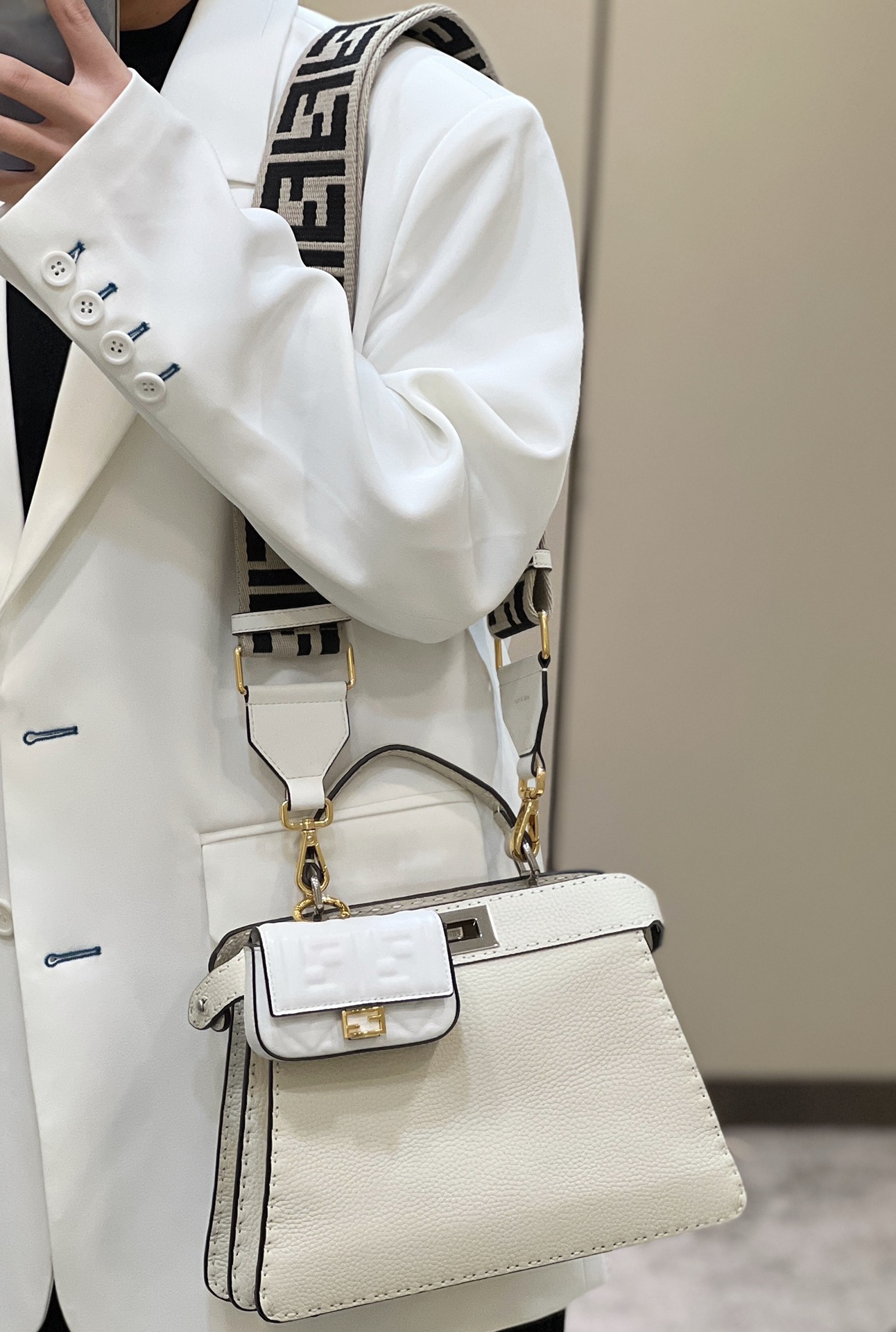這款包包是AAAAA 1:1 質量(非常棒). 使用了和原版一模一樣的材料. 商標部分也保持了和芬迪/Fendi一樣. 圖片拍攝是實物包包拍攝, 您所收到的實物保證和我們圖片一模一樣.