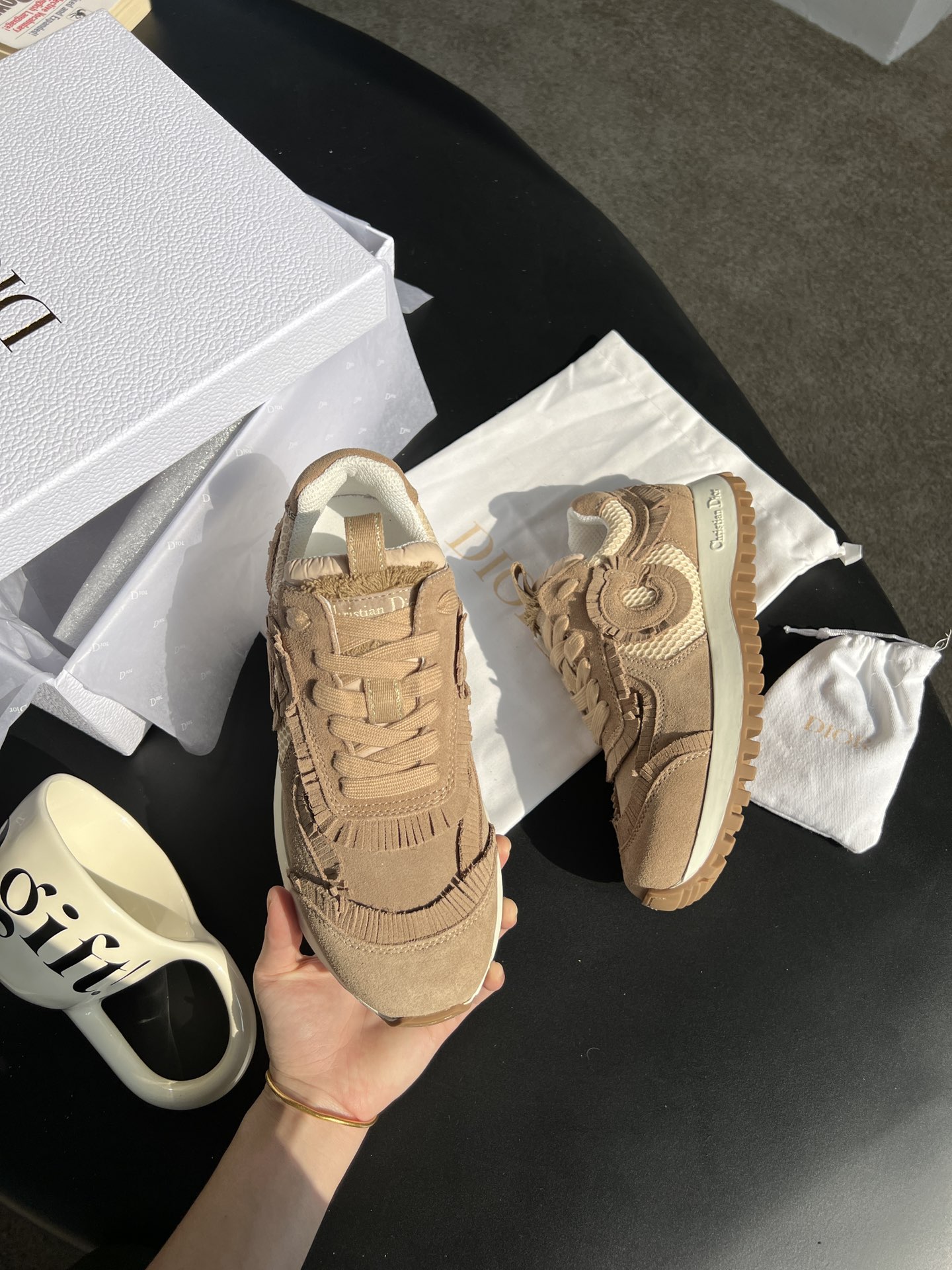 這款鞋子是AAAAA 1:1 質量(非常棒). 使用了和原版一模一樣的材料. 商標部分也保持了和迪奧/Dior一樣. 圖片拍攝是實物鞋子拍攝, 您所收到的實物保證和我們圖片一模一樣.
