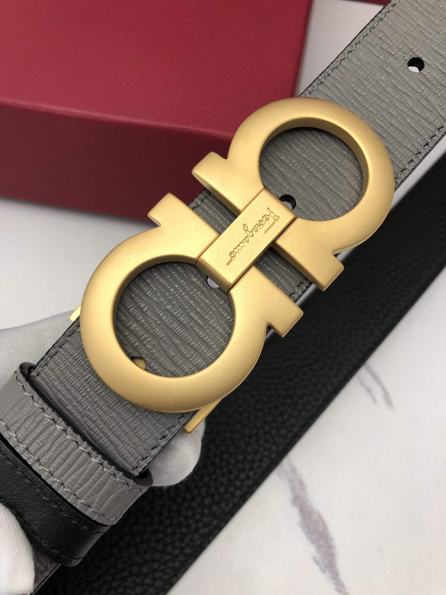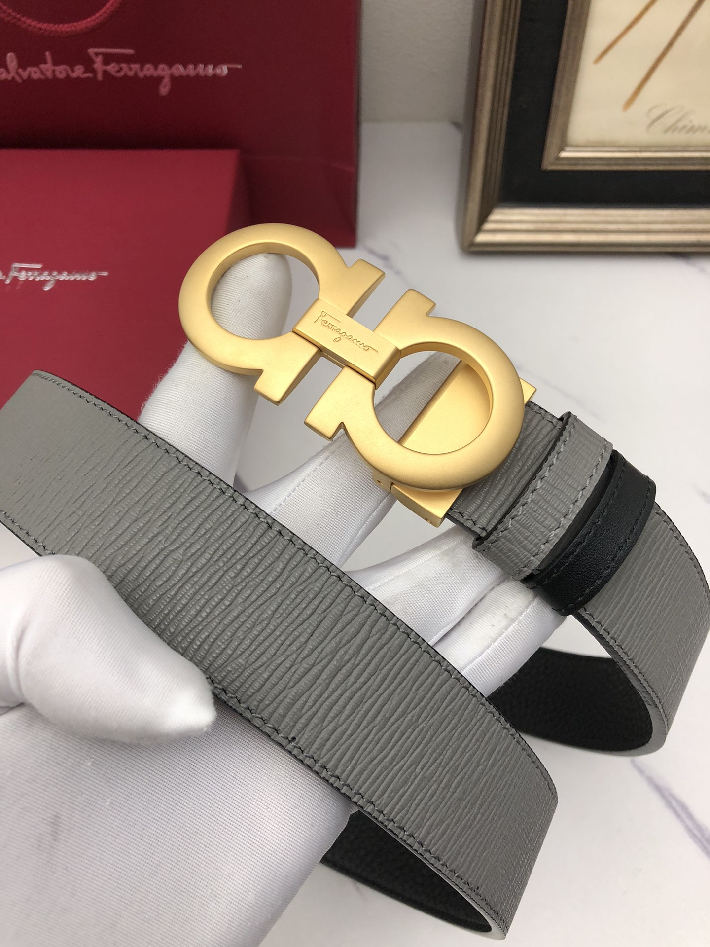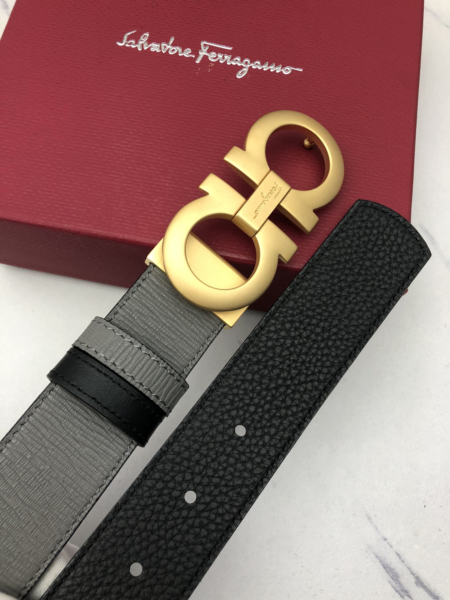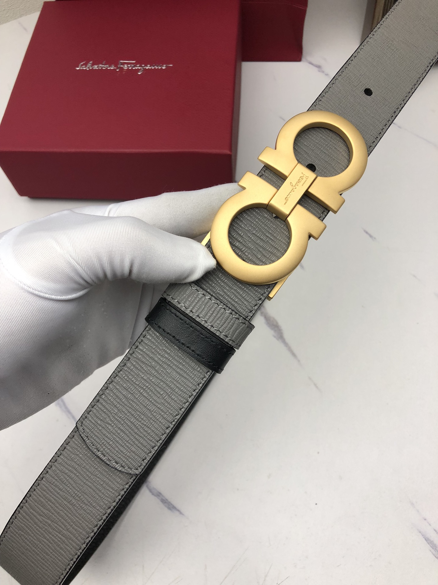 這款皮帶是AAAAA 1:1 質量(非常棒). 使用了和原版一模一樣的材料. 商標部分也保持了和菲拉格慕/Salvatore Ferragamo一樣. 圖片拍攝是實物皮帶拍攝, 您所收到的實物保證和我們圖片一模一樣.