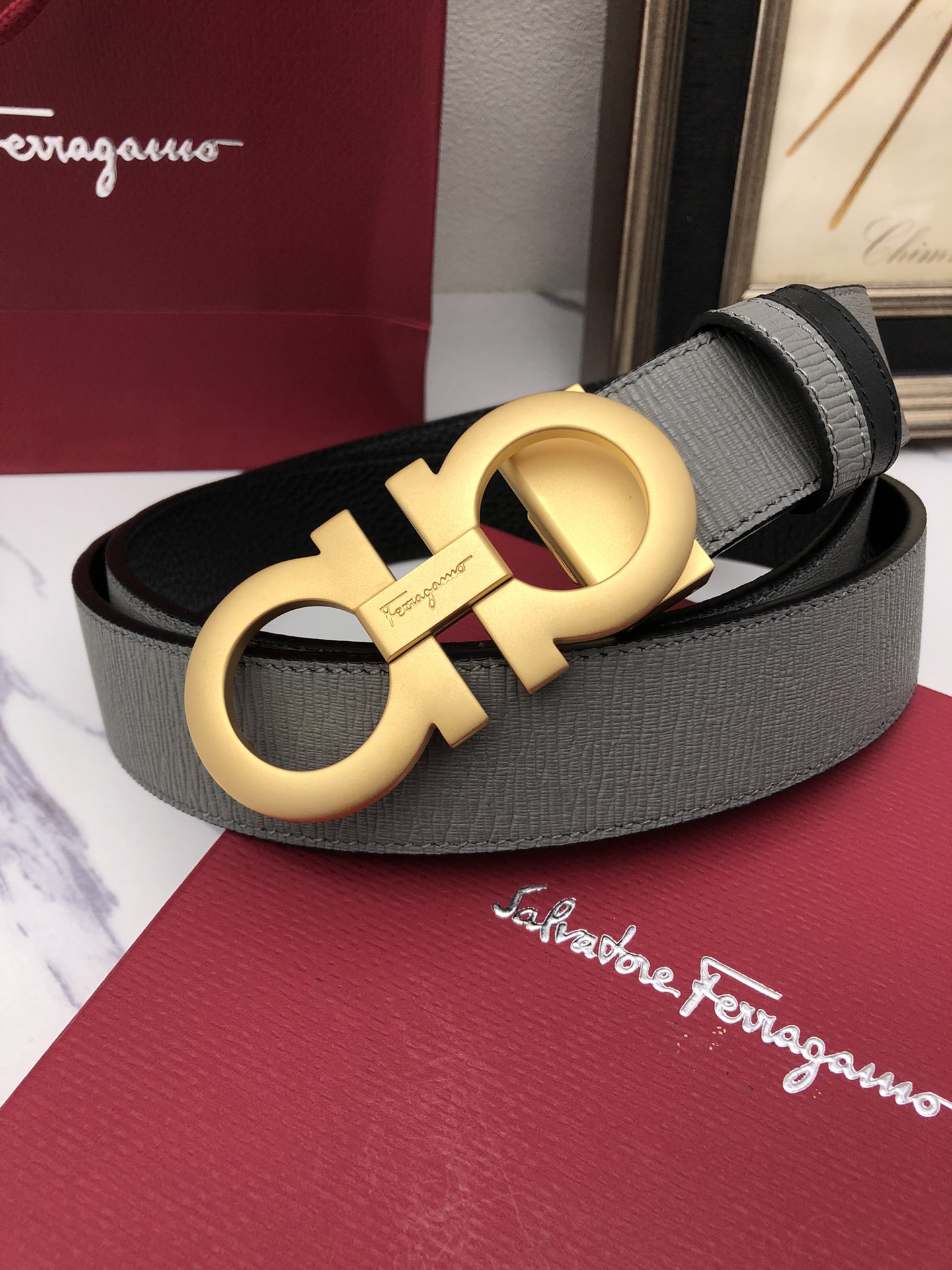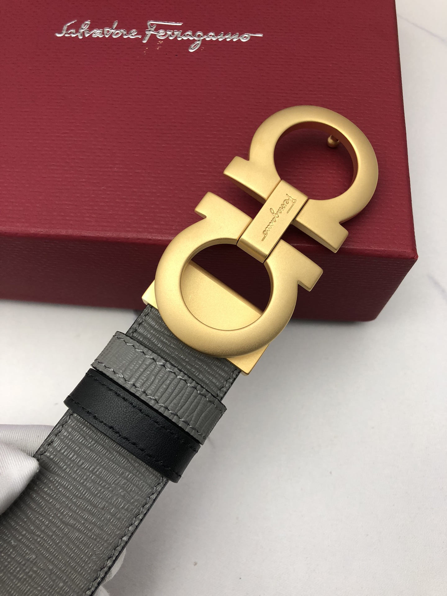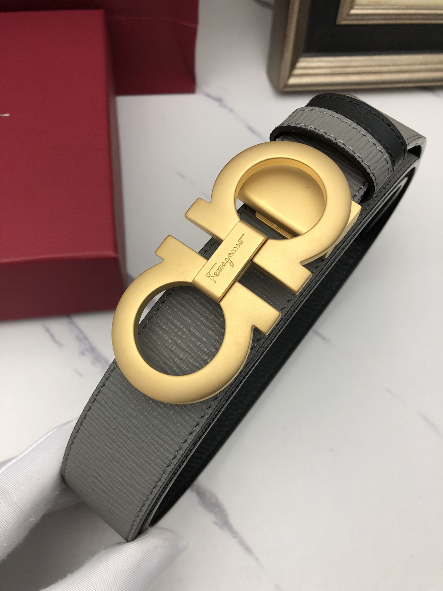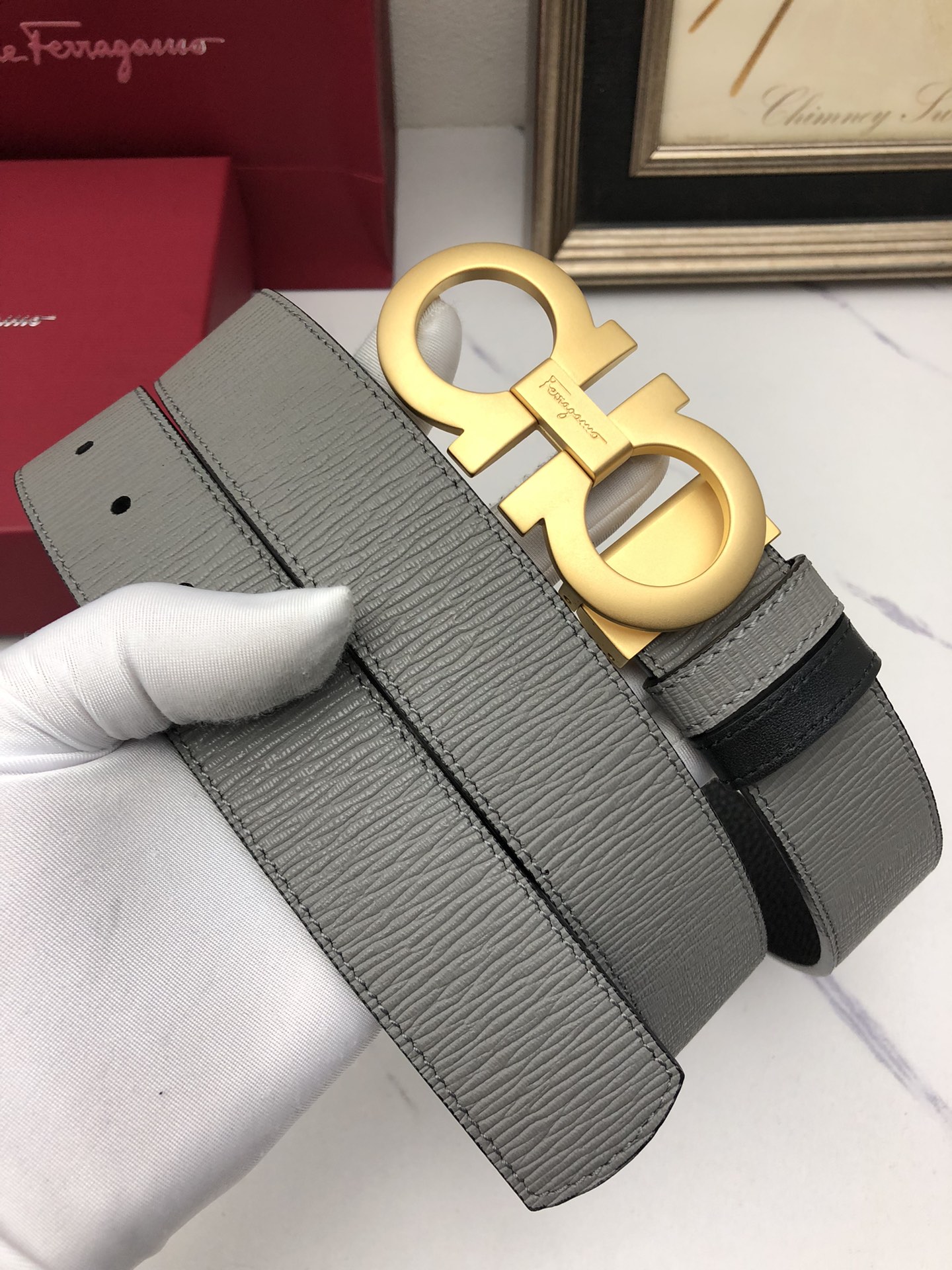 這款皮帶是AAAAA 1:1 質量(非常棒). 使用了和原版一模一樣的材料. 商標部分也保持了和菲拉格慕/Salvatore Ferragamo一樣. 圖片拍攝是實物皮帶拍攝, 您所收到的實物保證和我們圖片一模一樣.