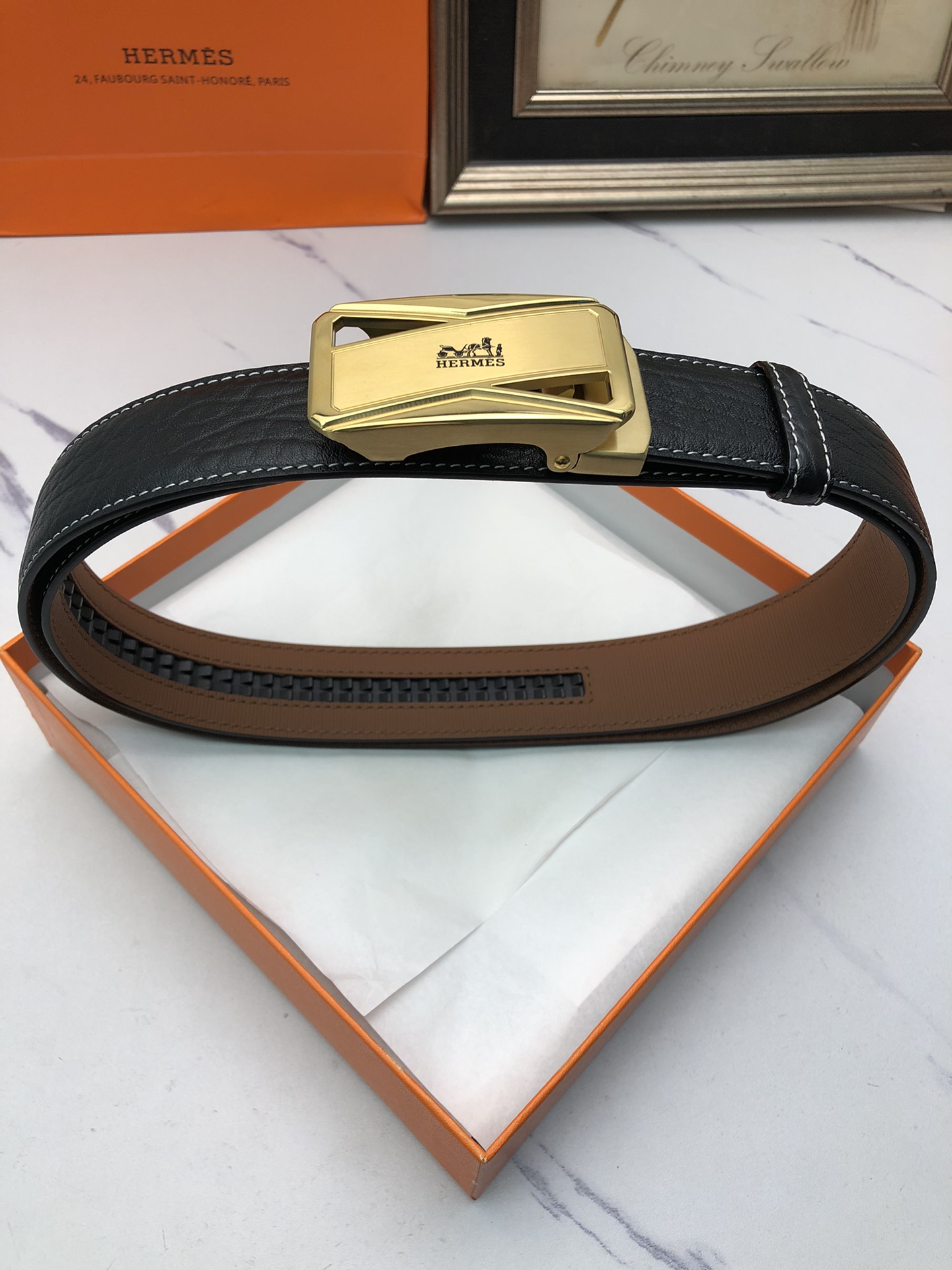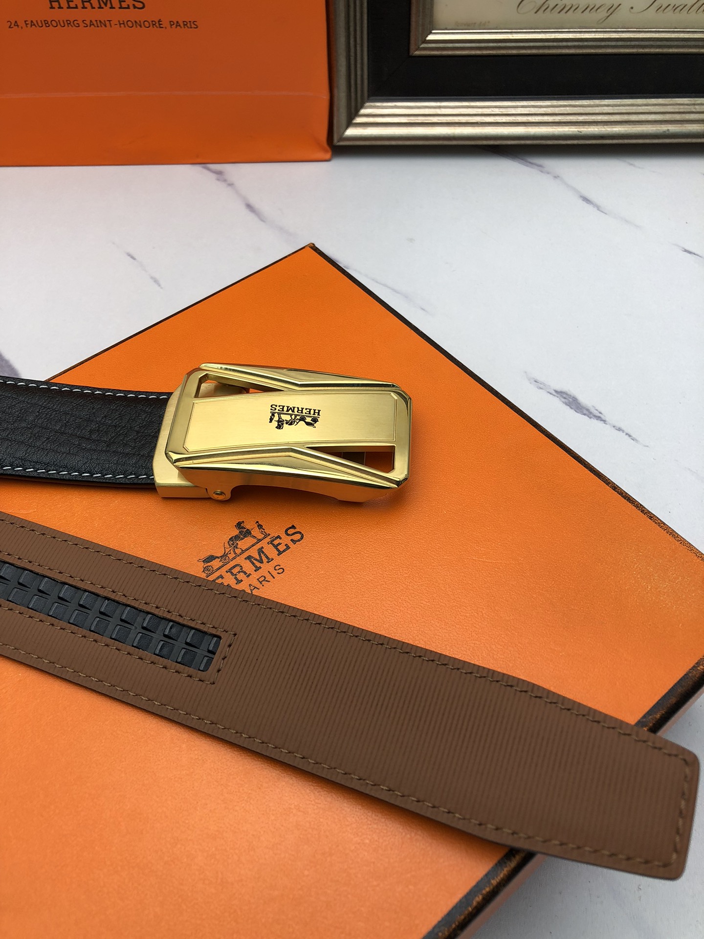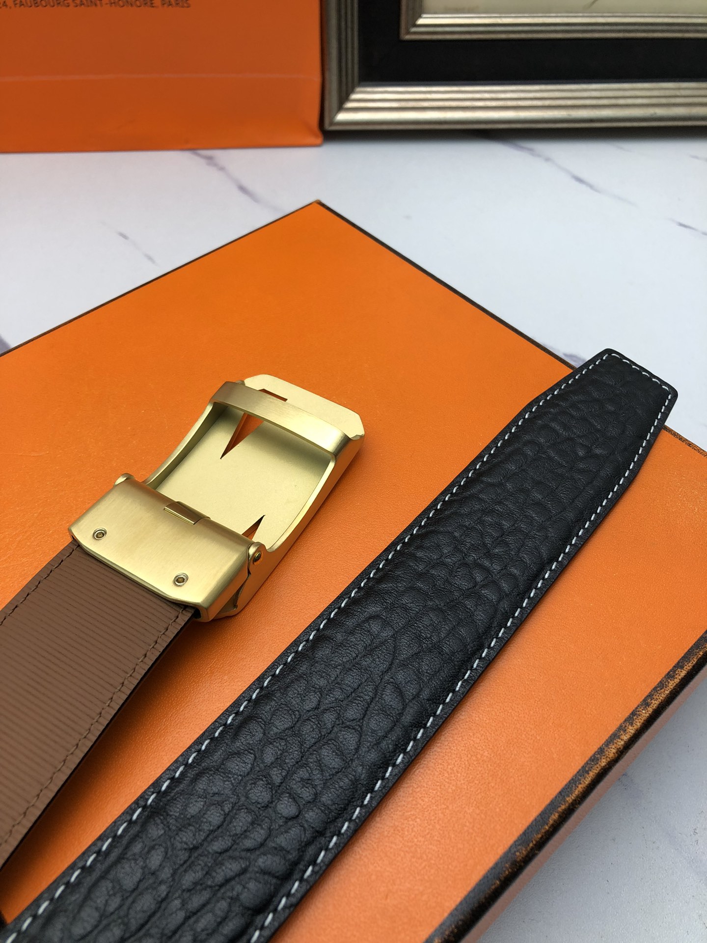 這款皮帶是AAAAA 1:1 質量(非常棒). 使用了和原版一模一樣的材料. 商標部分也保持了和愛馬仕/Hermes一樣. 圖片拍攝是實物皮帶拍攝, 您所收到的實物保證和我們圖片一模一樣.