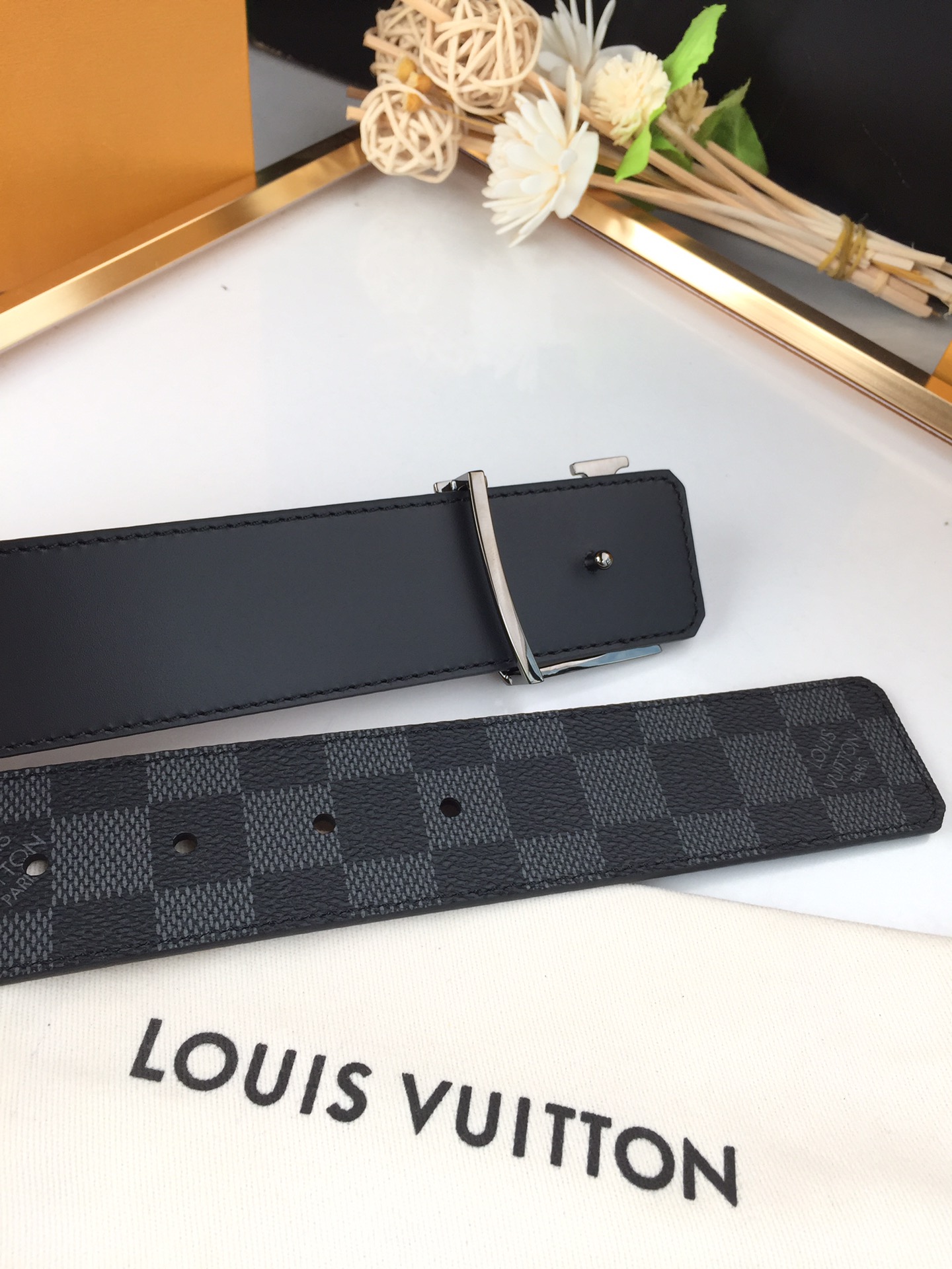 這款皮帶是AAAAA 1:1 質量(非常棒). 使用了和原版一模一樣的材料. 商標部分也保持了和路易威登/Louis Vuitton一樣. 圖片拍攝是實物皮帶拍攝, 您所收到的實物保證和我們圖片一模一樣.