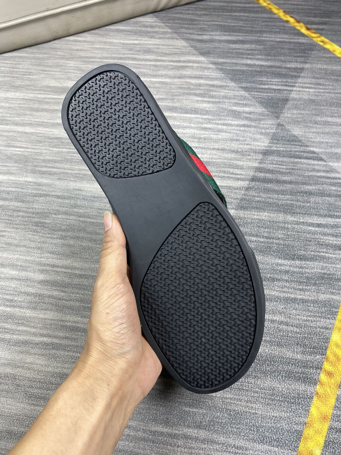 這款鞋子是AAAAA 1:1 質量(非常棒). 使用了和原版一模一樣的材料. 商標部分也保持了和古奇/Gucci一樣. 圖片拍攝是實物鞋子拍攝, 您所收到的實物保證和我們圖片一模一樣.