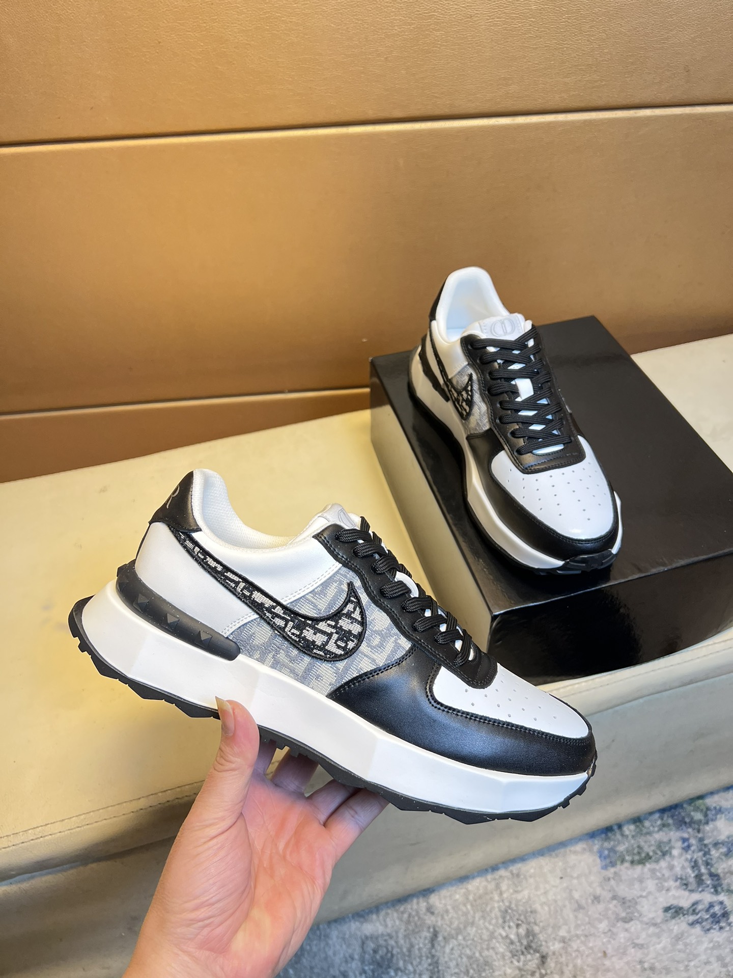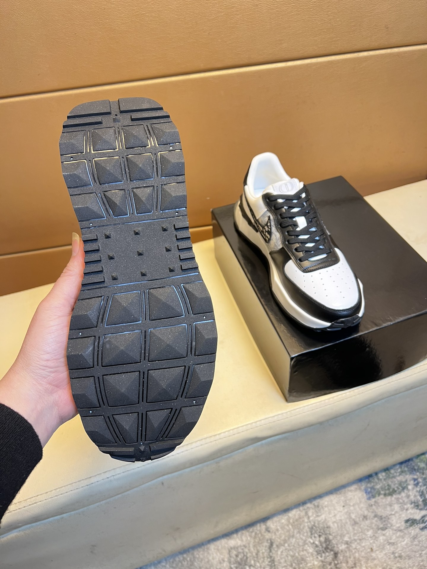 這款鞋子是AAAAA 1:1 質量(非常棒). 使用了和原版一模一樣的材料. 商標部分也保持了和普拉達/Prada一樣. 圖片拍攝是實物鞋子拍攝, 您所收到的實物保證和我們圖片一模一樣.
