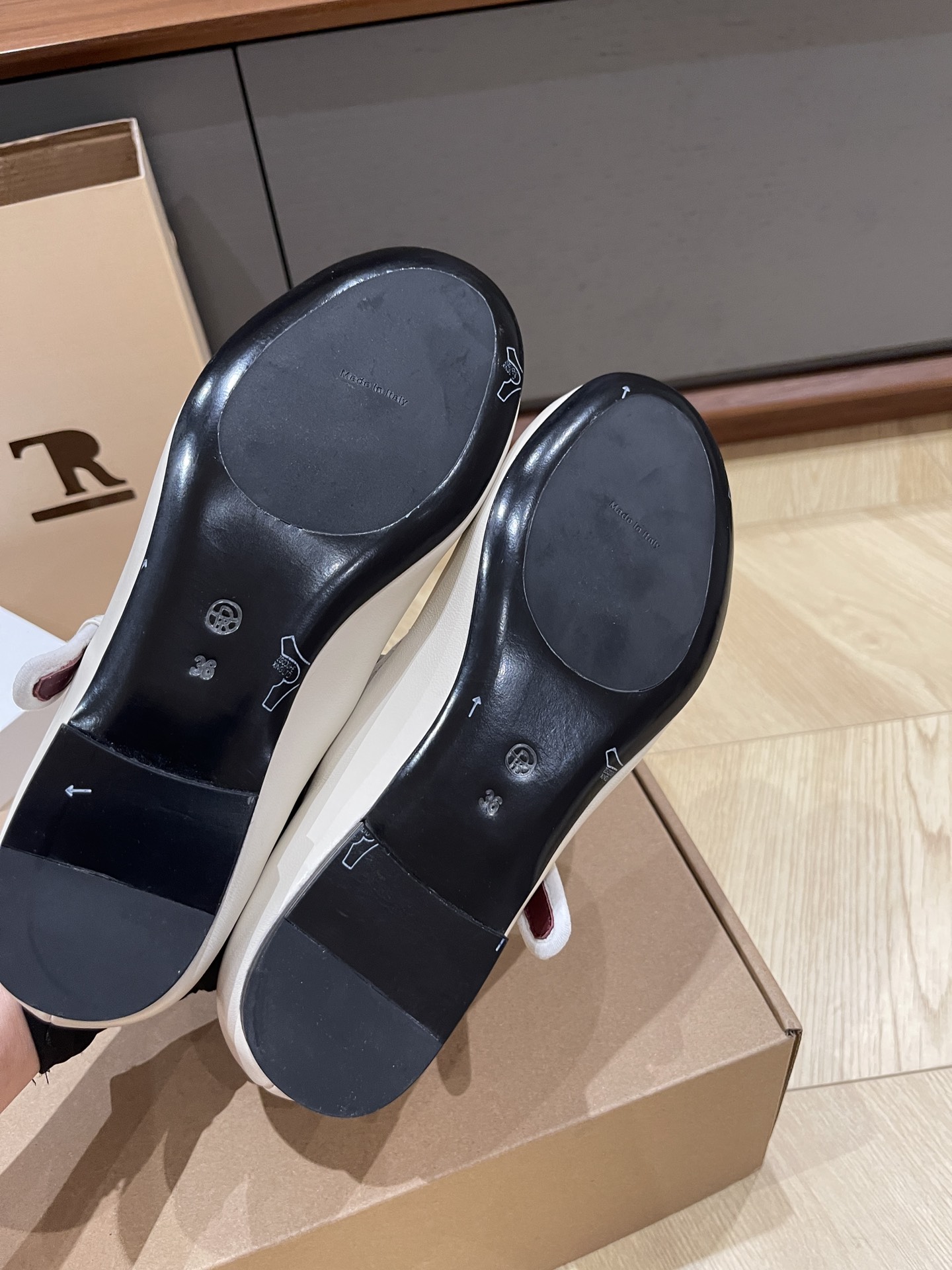 這款鞋子是AAAAA 1:1 質量(非常棒). 使用了和原版一模一樣的材料. 商標部分也保持了和The Row一樣. 圖片拍攝是實物鞋子拍攝, 您所收到的實物保證和我們圖片一模一樣.