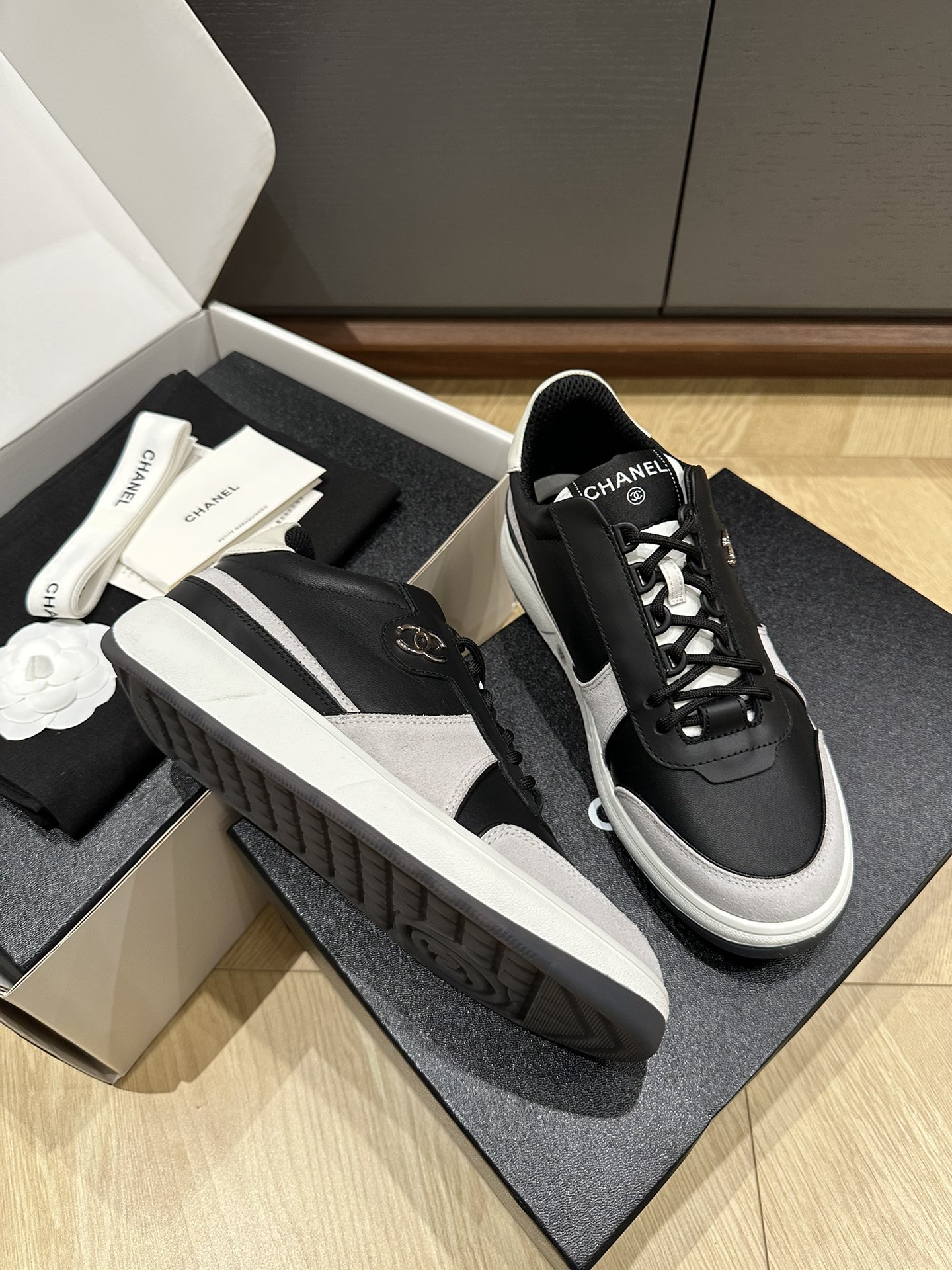 這款鞋子是AAAAA 1:1 質量(非常棒). 使用了和原版一模一樣的材料. 商標部分也保持了和香奈兒/Chanel一樣. 圖片拍攝是實物鞋子拍攝, 您所收到的實物保證和我們圖片一模一樣.