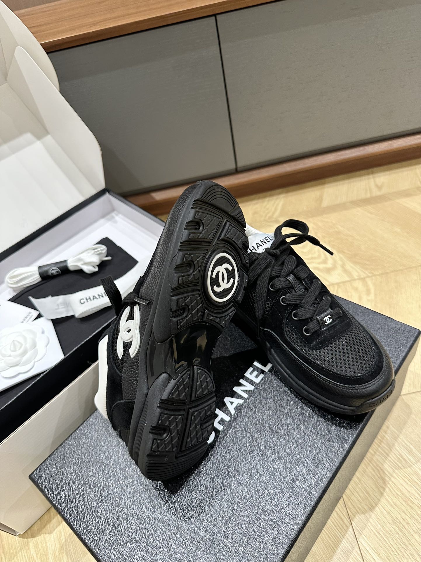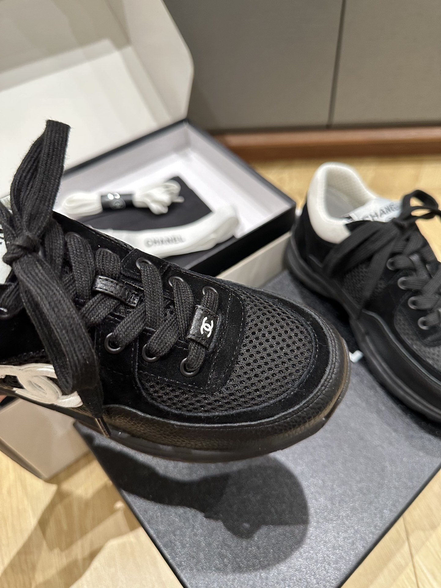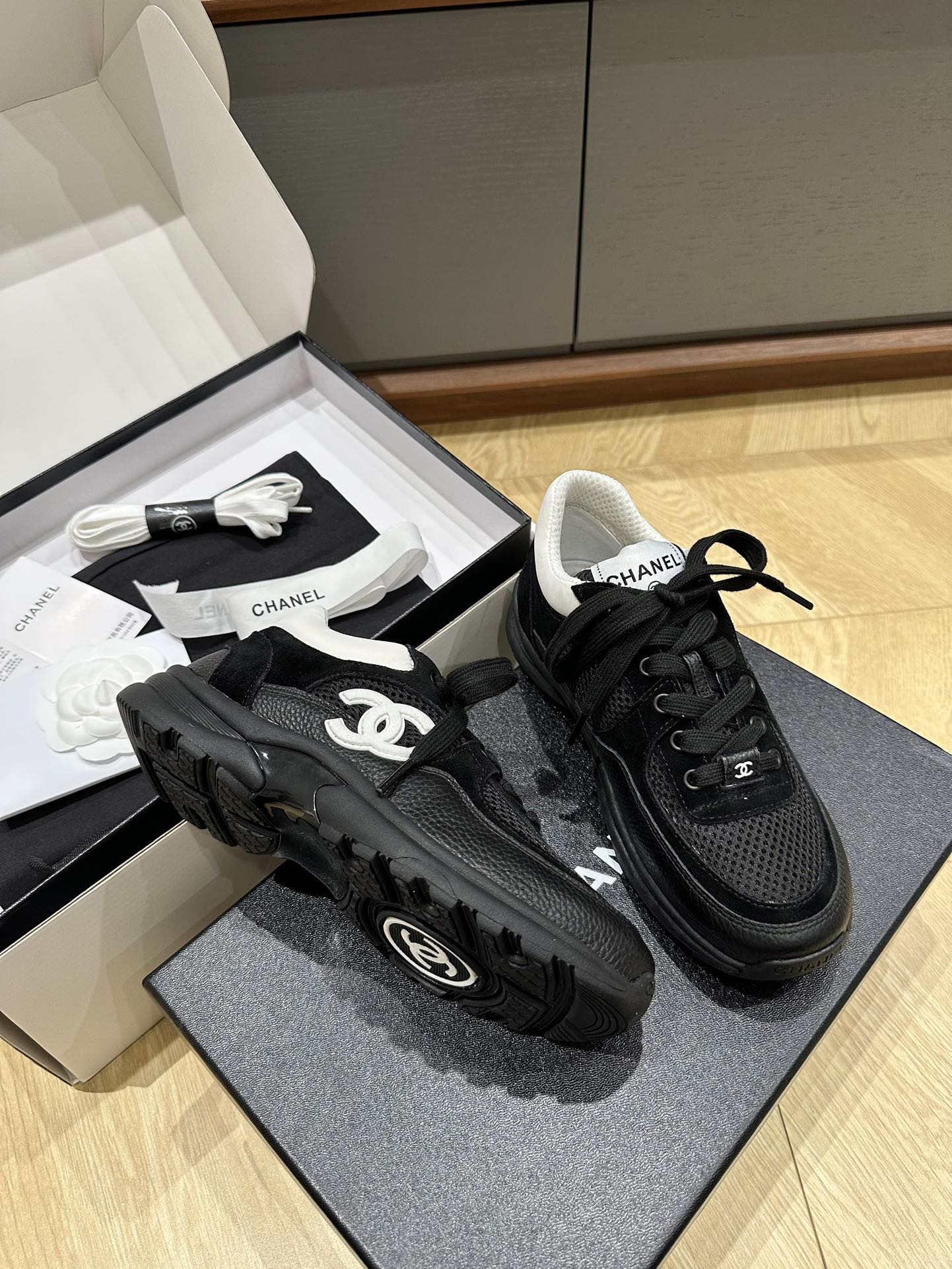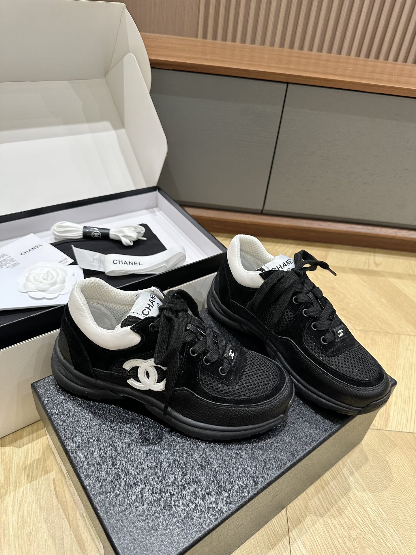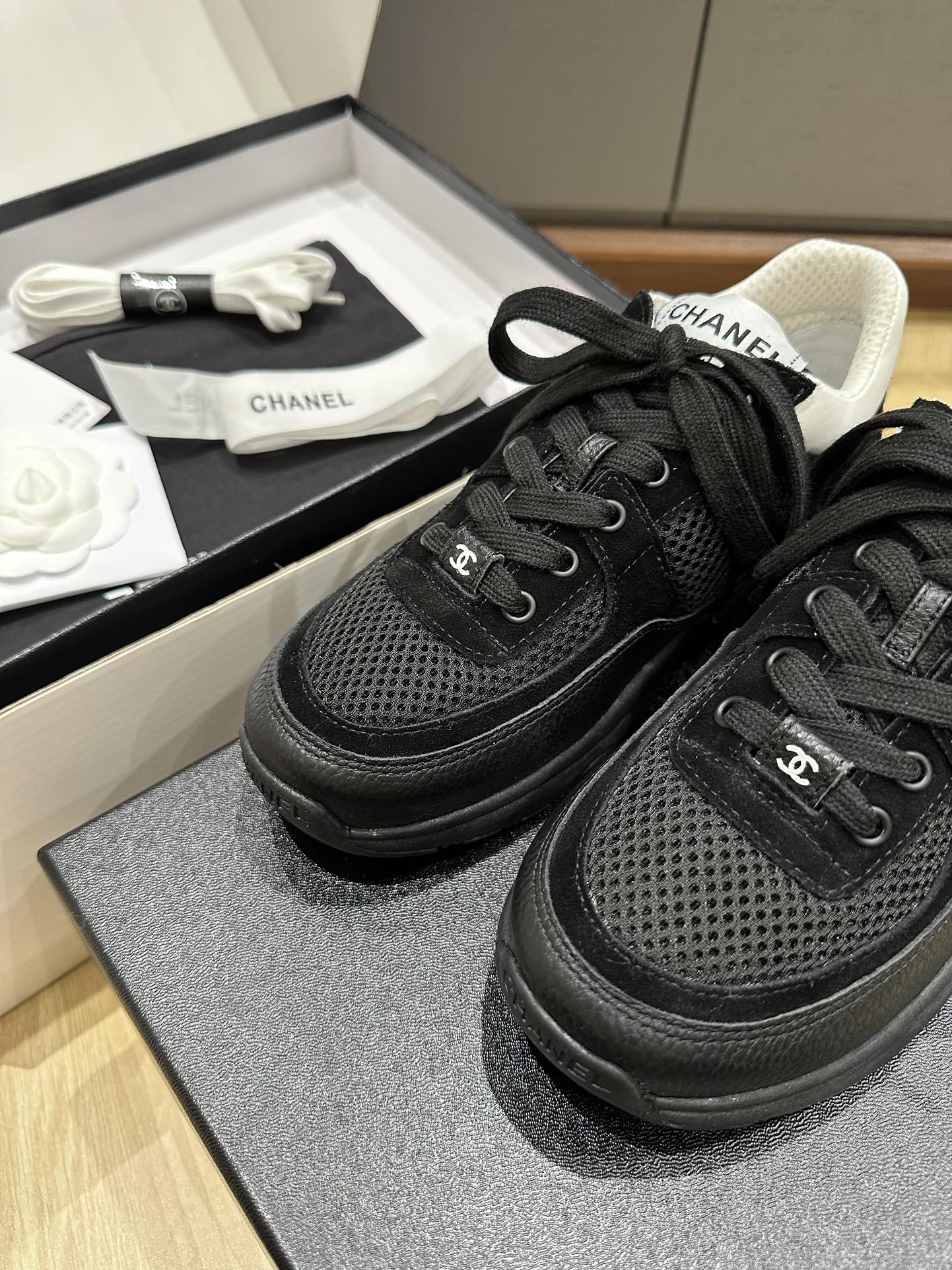 這款鞋子是AAAAA 1:1 質量(非常棒). 使用了和原版一模一樣的材料. 商標部分也保持了和香奈兒/Chanel一樣. 圖片拍攝是實物鞋子拍攝, 您所收到的實物保證和我們圖片一模一樣.