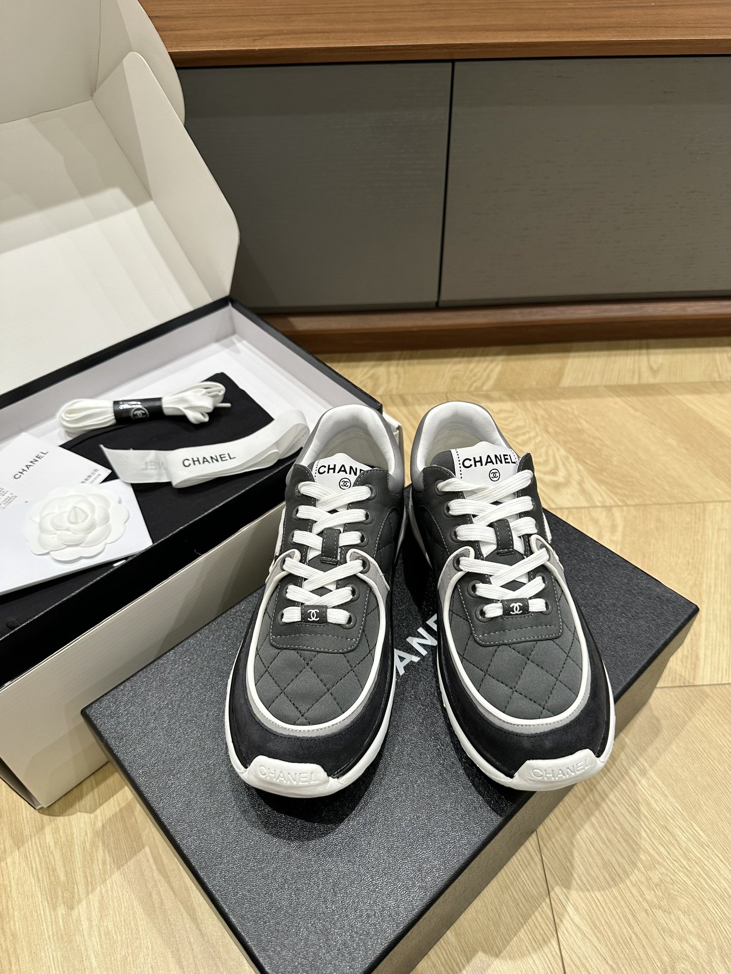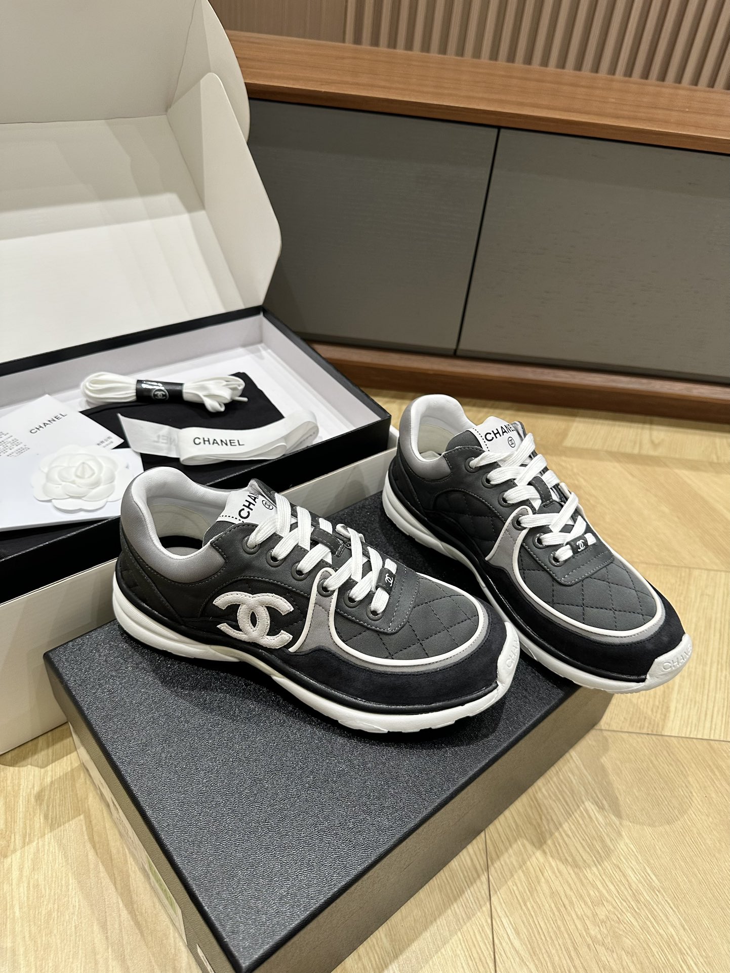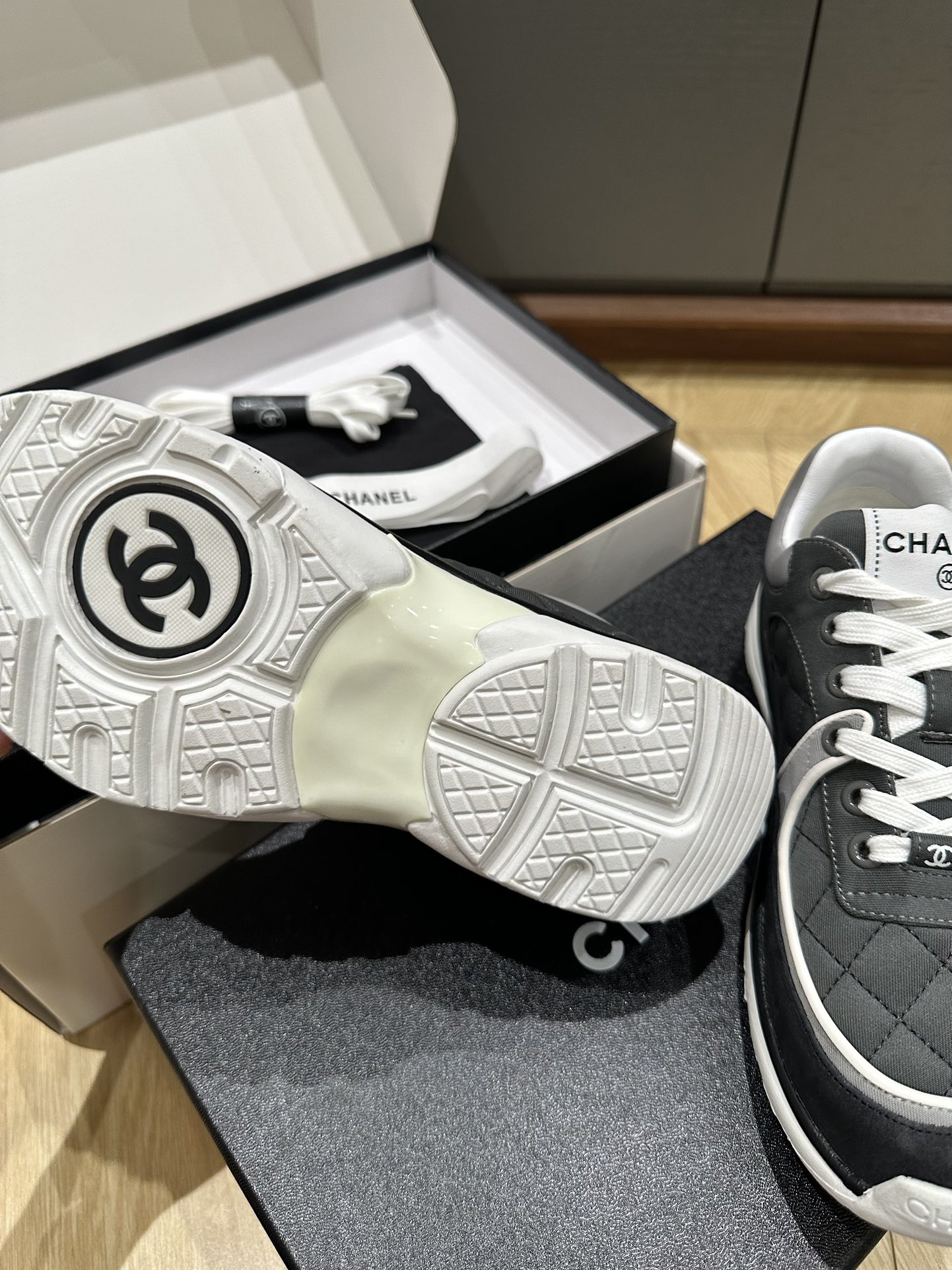 這款鞋子是AAAAA 1:1 質量(非常棒). 使用了和原版一模一樣的材料. 商標部分也保持了和香奈兒/Chanel一樣. 圖片拍攝是實物鞋子拍攝, 您所收到的實物保證和我們圖片一模一樣.
