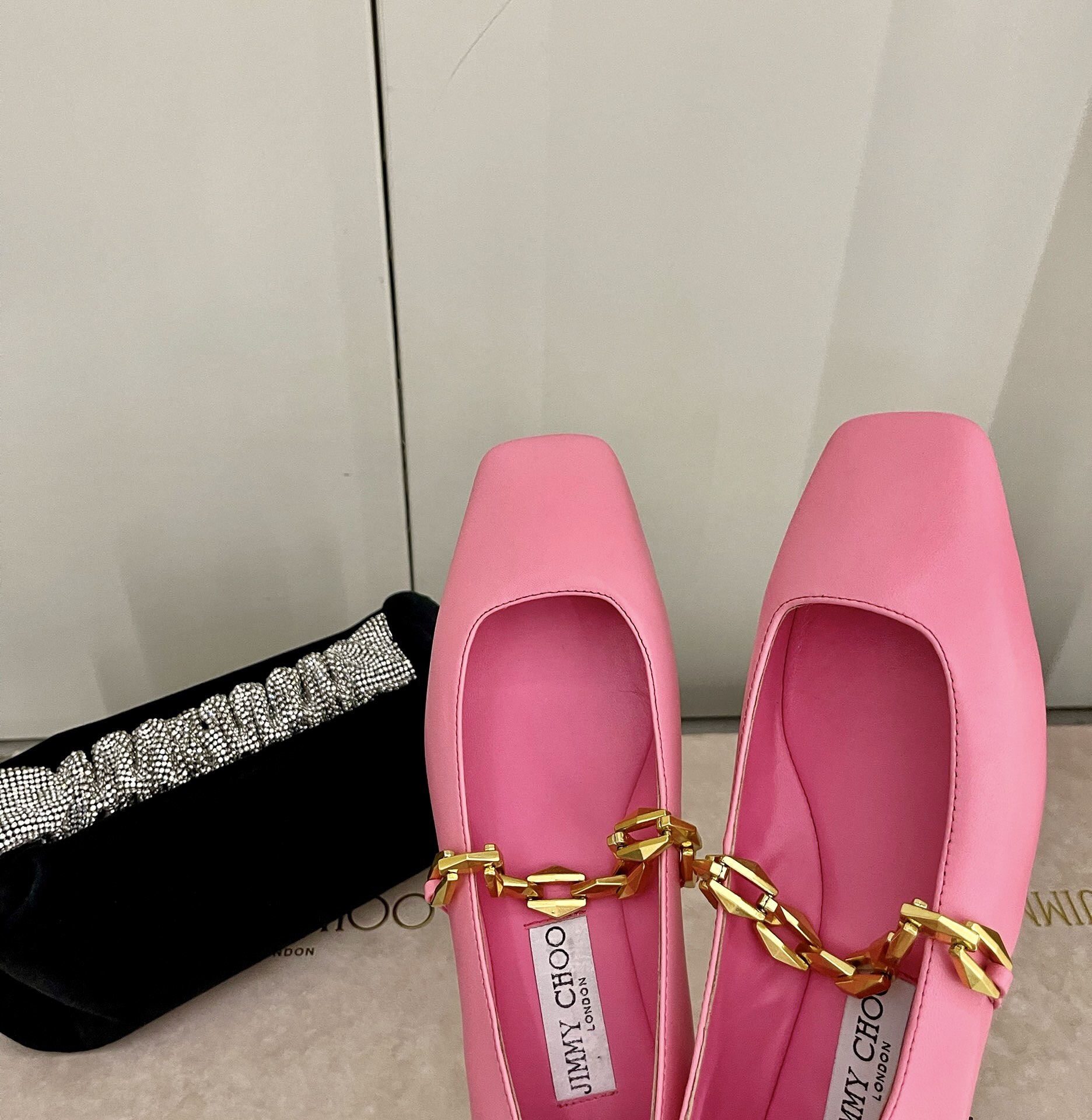 這款鞋子是AAAAA 1:1 質量(非常棒). 使用了和原版一模一樣的材料. 商標部分也保持了和吉米喬/JIMMY CHOO一樣. 圖片拍攝是實物鞋子拍攝, 您所收到的實物保證和我們圖片一模一樣.