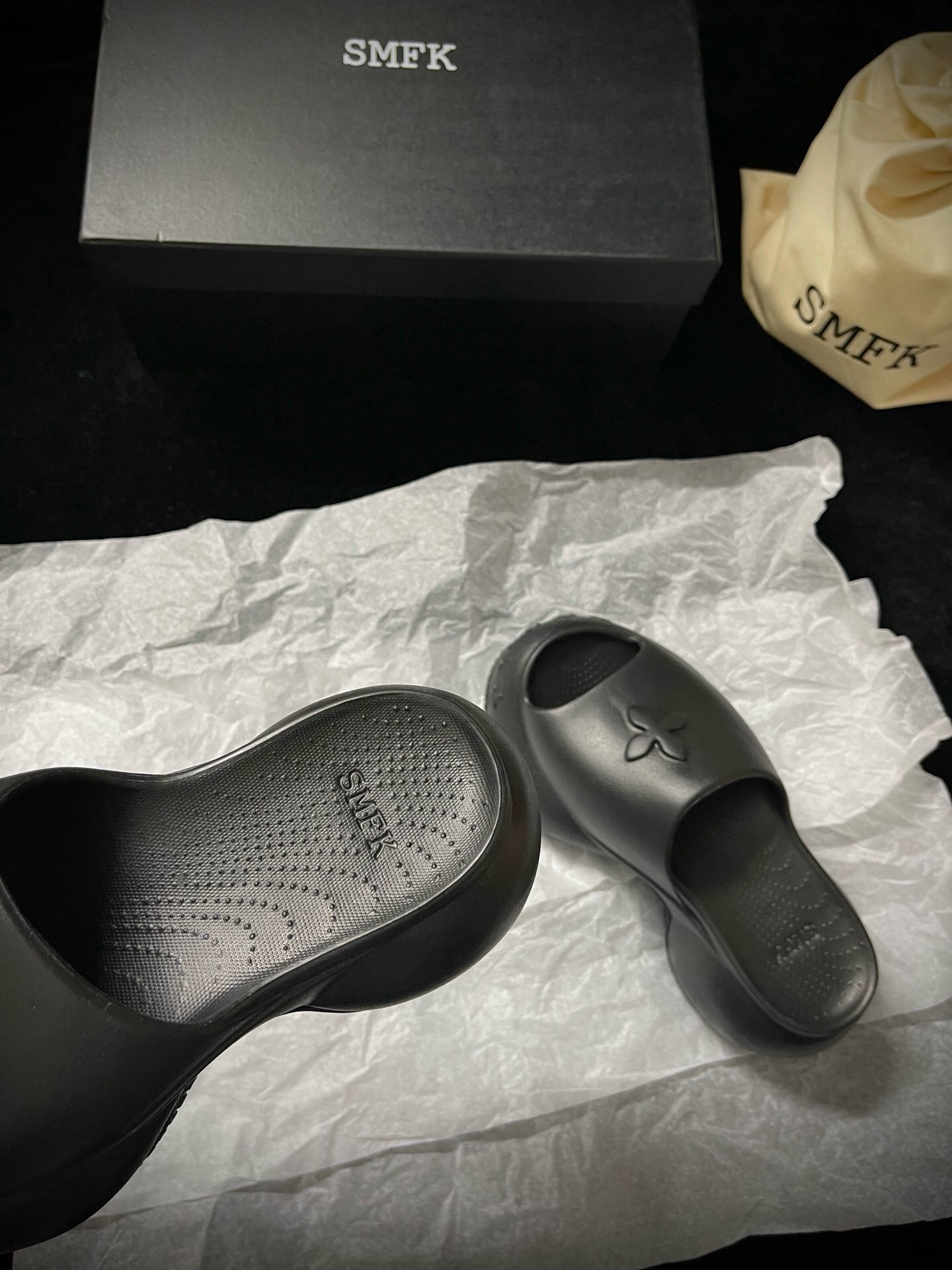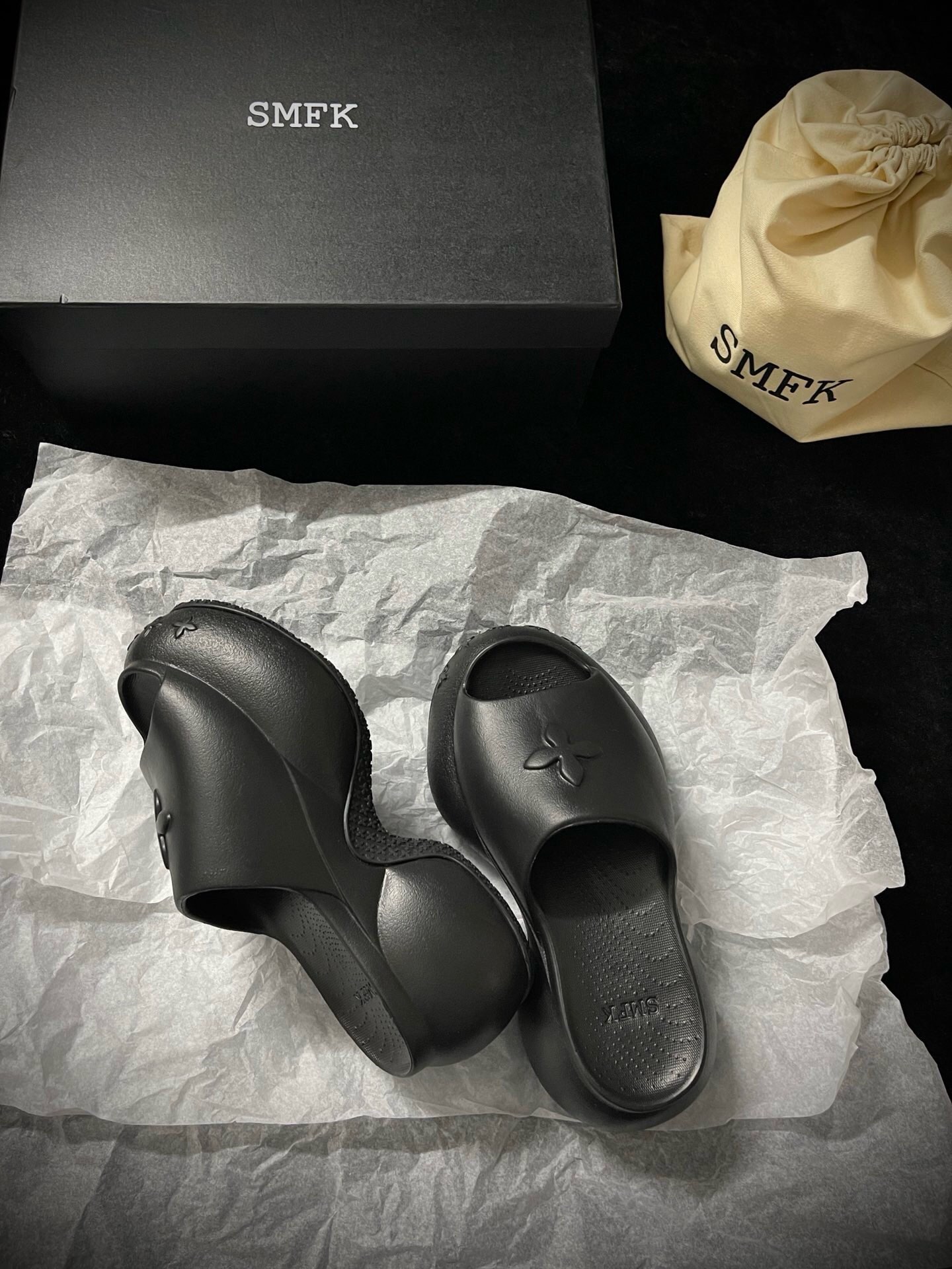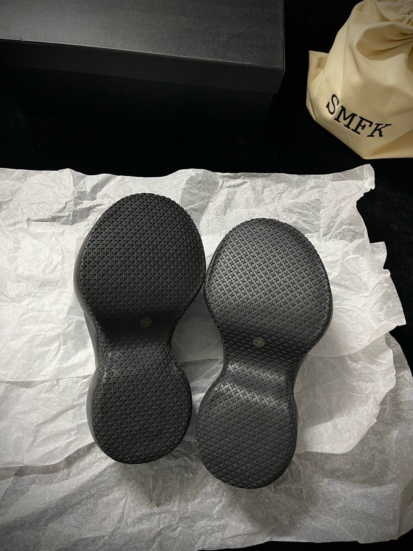 這款鞋子是AAAAA 1:1 質量(非常棒). 使用了和原版一模一樣的材料. 商標部分也保持了和SMFK一樣. 圖片拍攝是實物鞋子拍攝, 您所收到的實物保證和我們圖片一模一樣.
