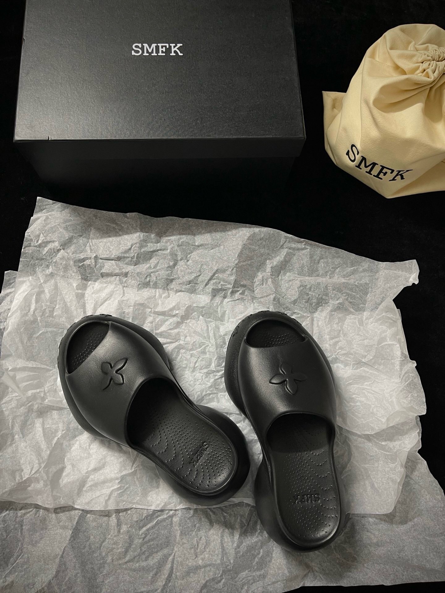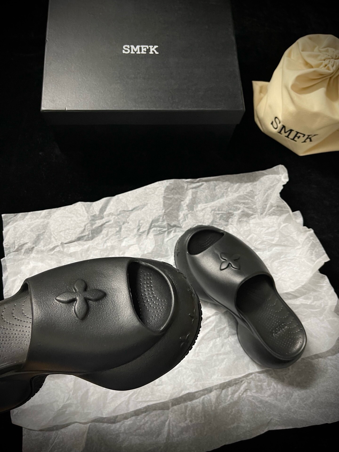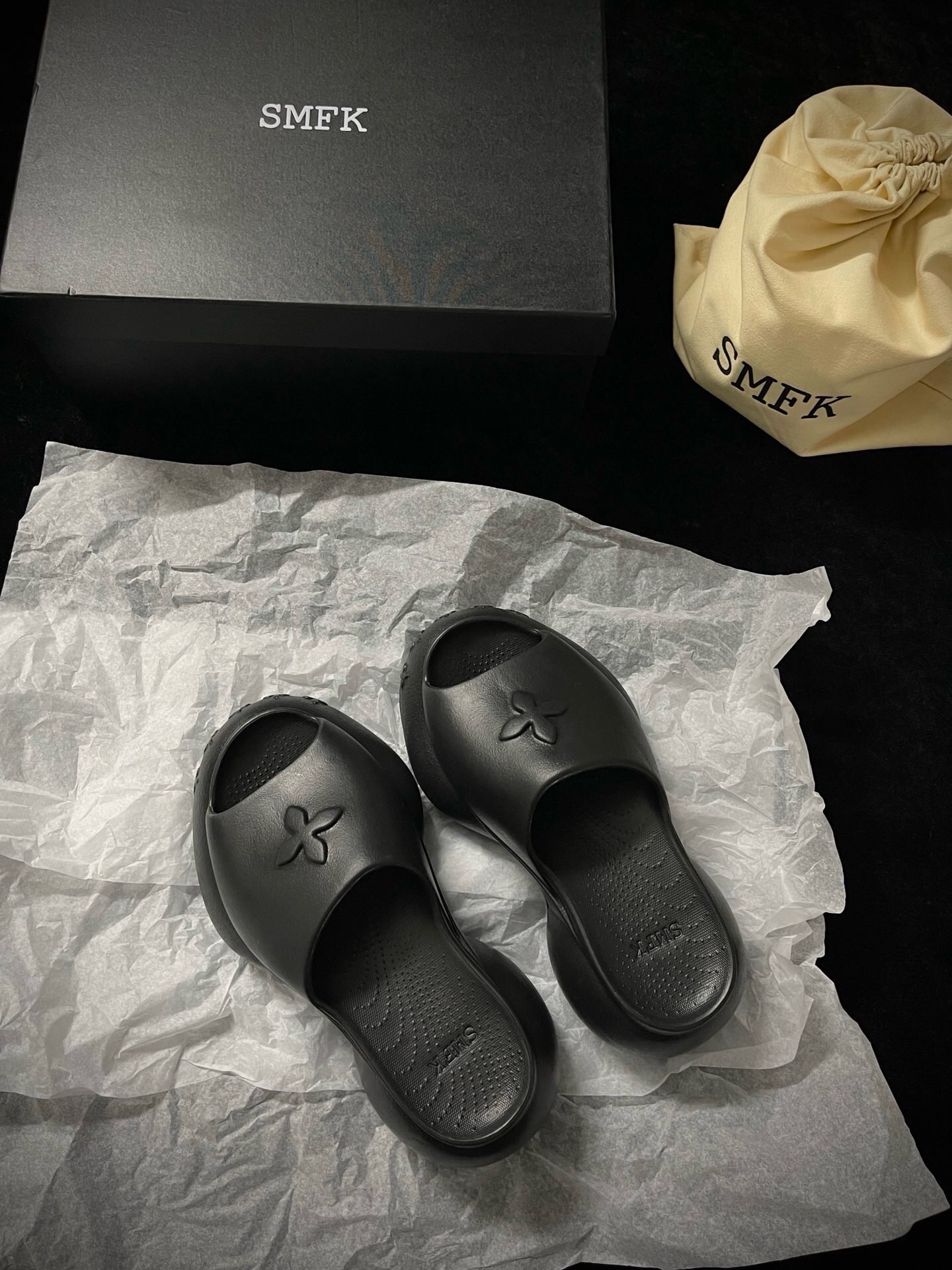 這款鞋子是AAAAA 1:1 質量(非常棒). 使用了和原版一模一樣的材料. 商標部分也保持了和SMFK一樣. 圖片拍攝是實物鞋子拍攝, 您所收到的實物保證和我們圖片一模一樣.