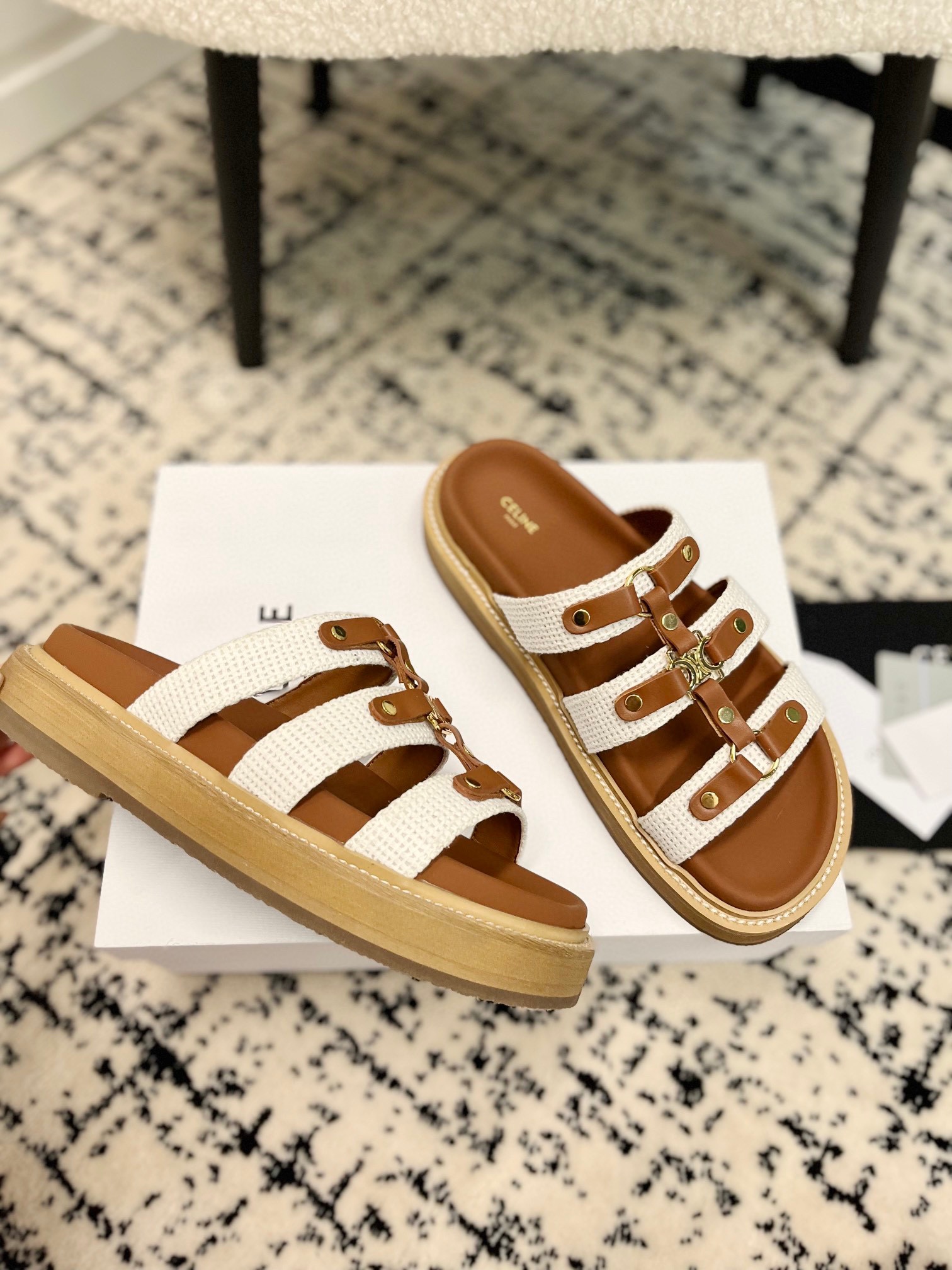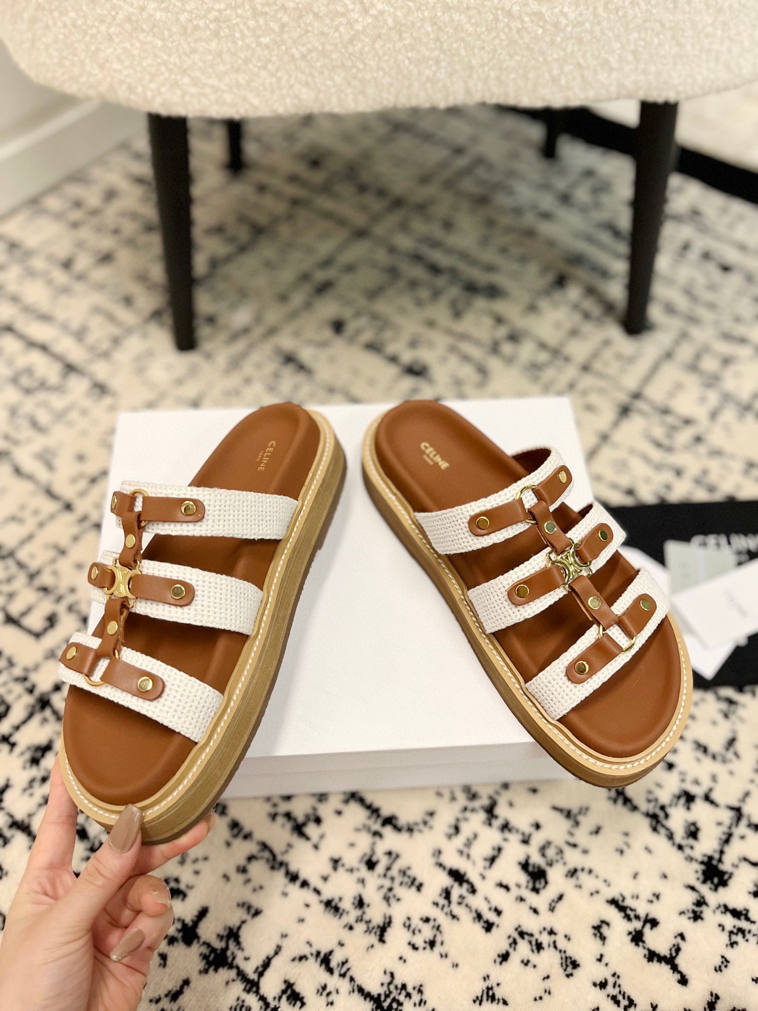 這款鞋子是AAAAA 1:1 質量(非常棒). 使用了和原版一模一樣的材料. 商標部分也保持了和思琳/赛琳/Celine一樣. 圖片拍攝是實物鞋子拍攝, 您所收到的實物保證和我們圖片一模一樣.