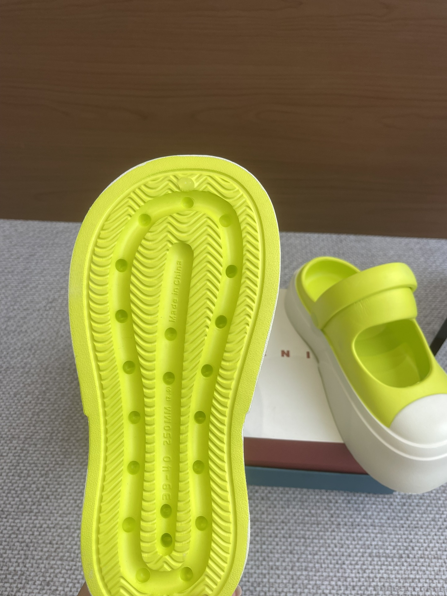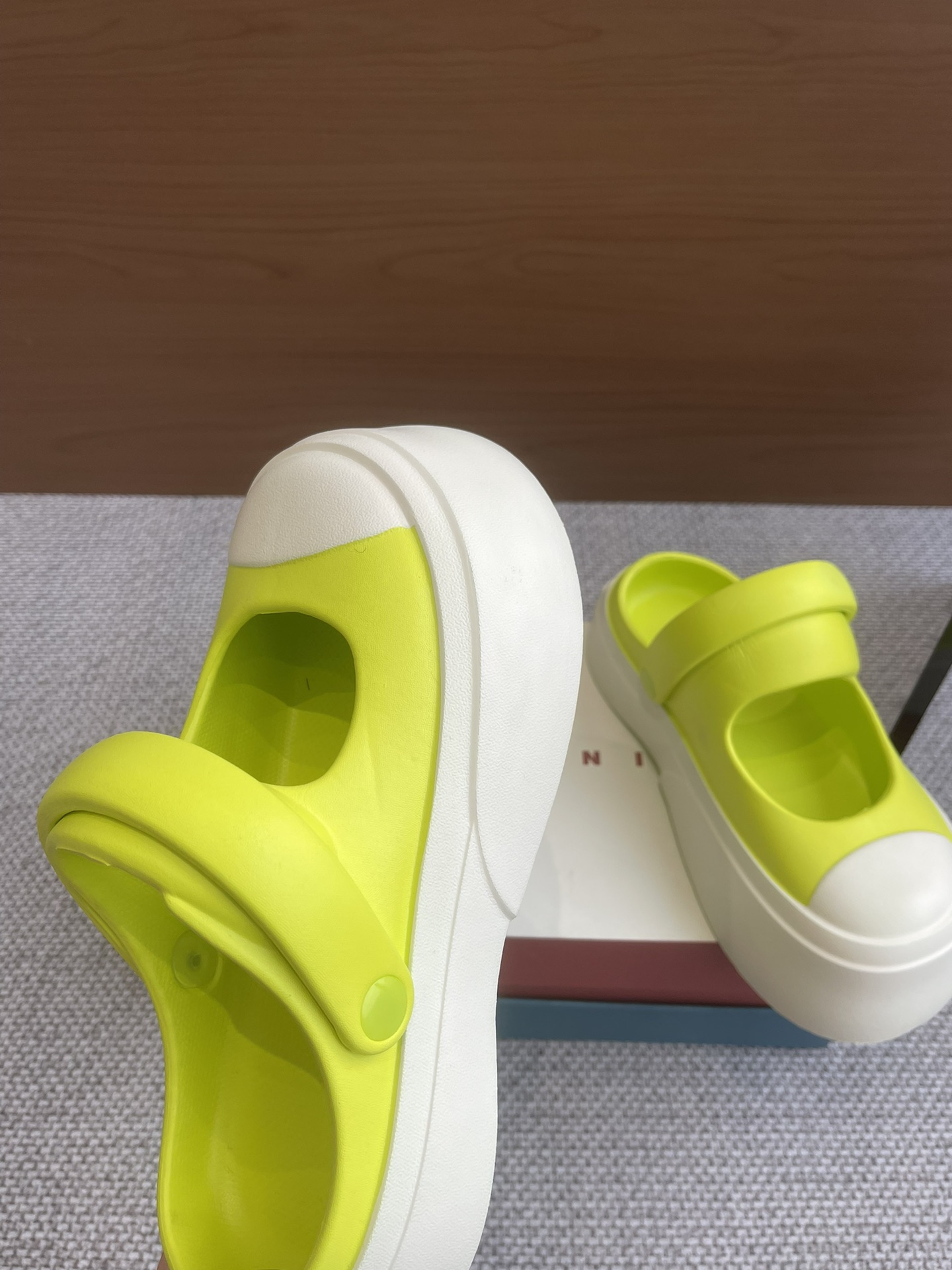 這款鞋子是AAAAA 1:1 質量(非常棒). 使用了和原版一模一樣的材料. 商標部分也保持了和馬爾尼/Marni一樣. 圖片拍攝是實物鞋子拍攝, 您所收到的實物保證和我們圖片一模一樣.