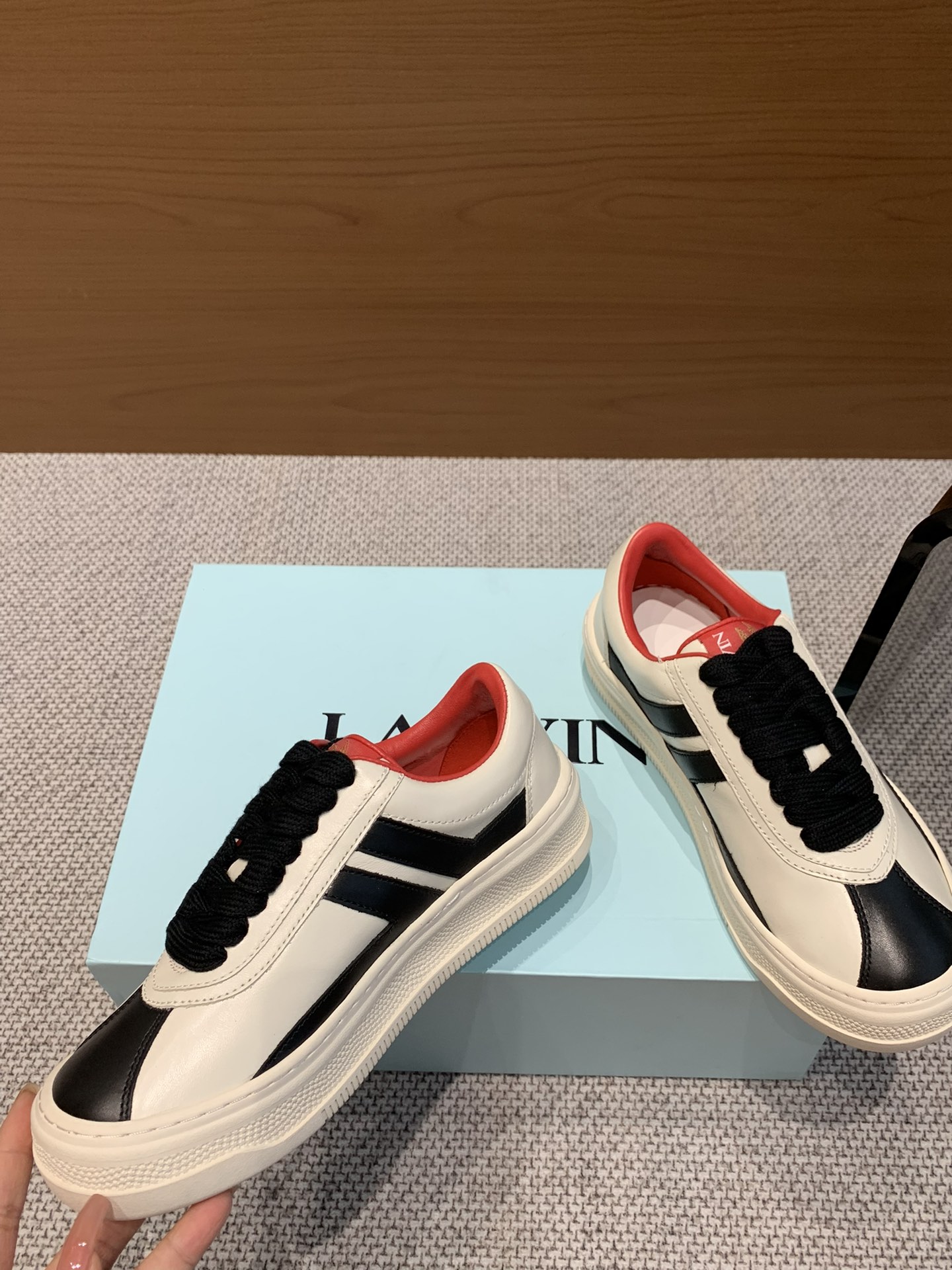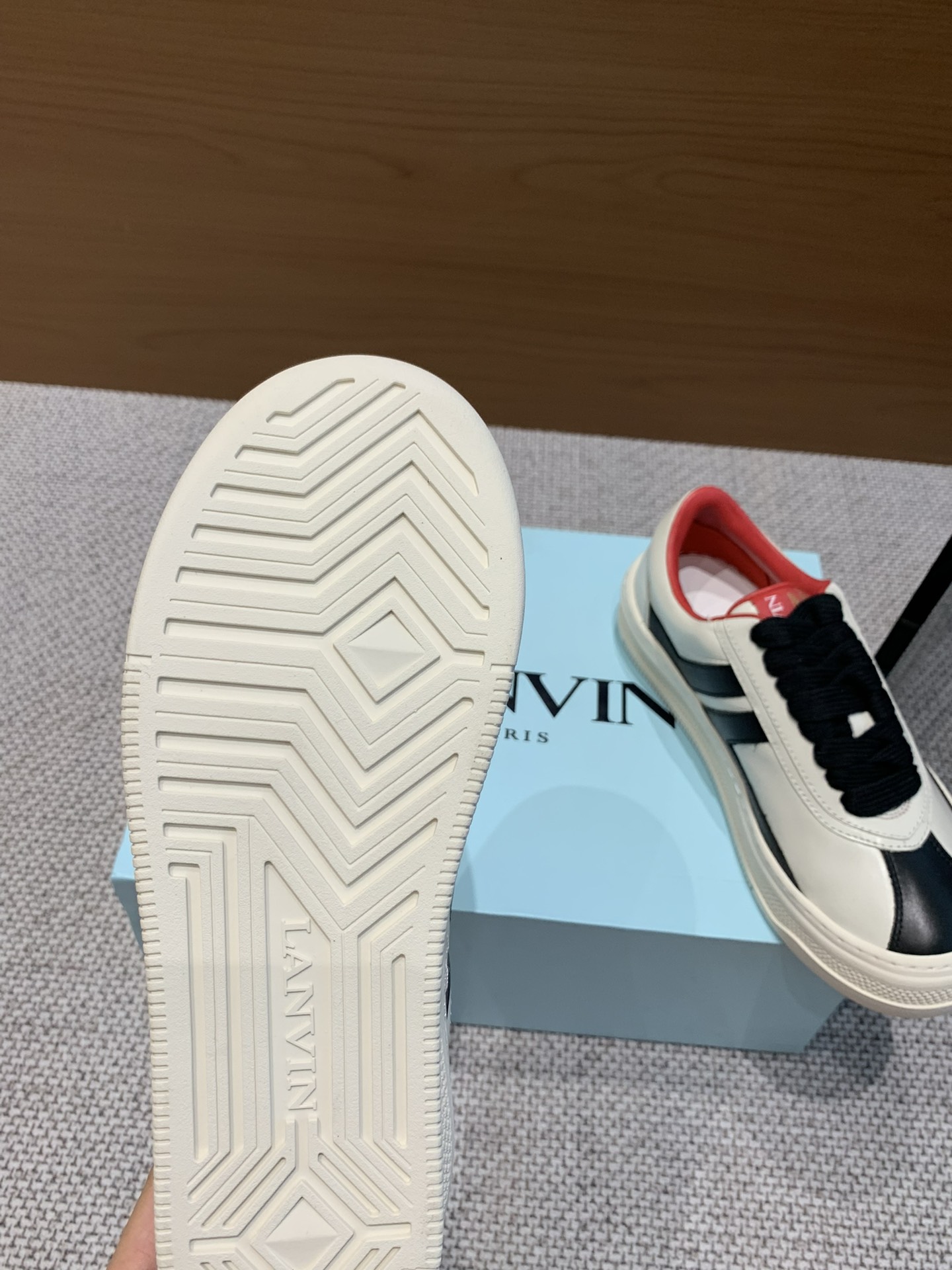 這款鞋子是AAAAA 1:1 質量(非常棒). 使用了和原版一模一樣的材料. 商標部分也保持了和Lanvin一樣. 圖片拍攝是實物鞋子拍攝, 您所收到的實物保證和我們圖片一模一樣.