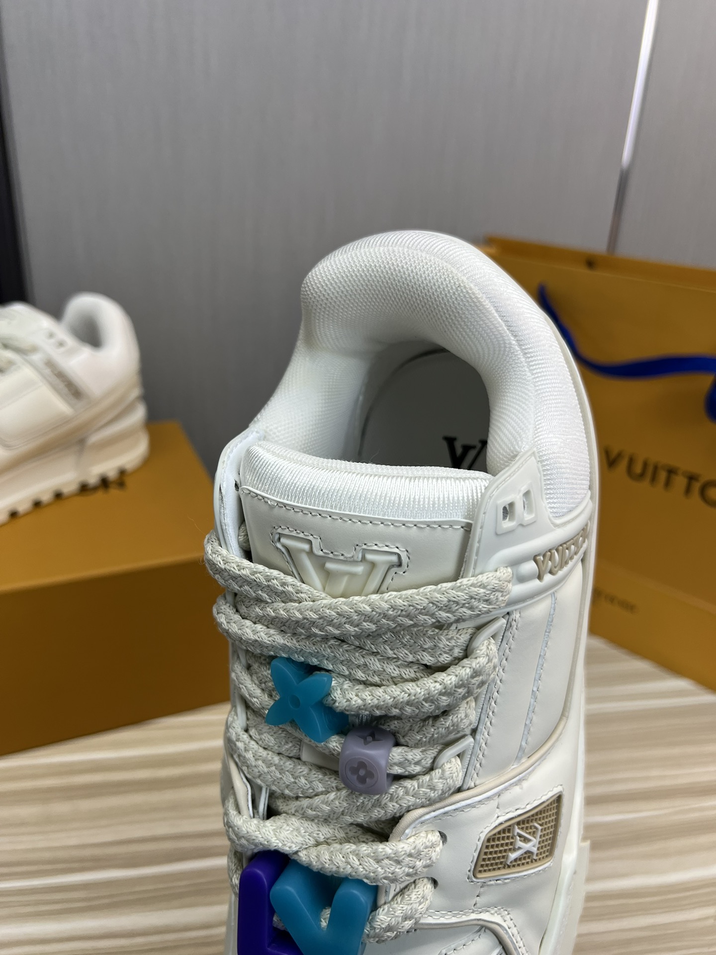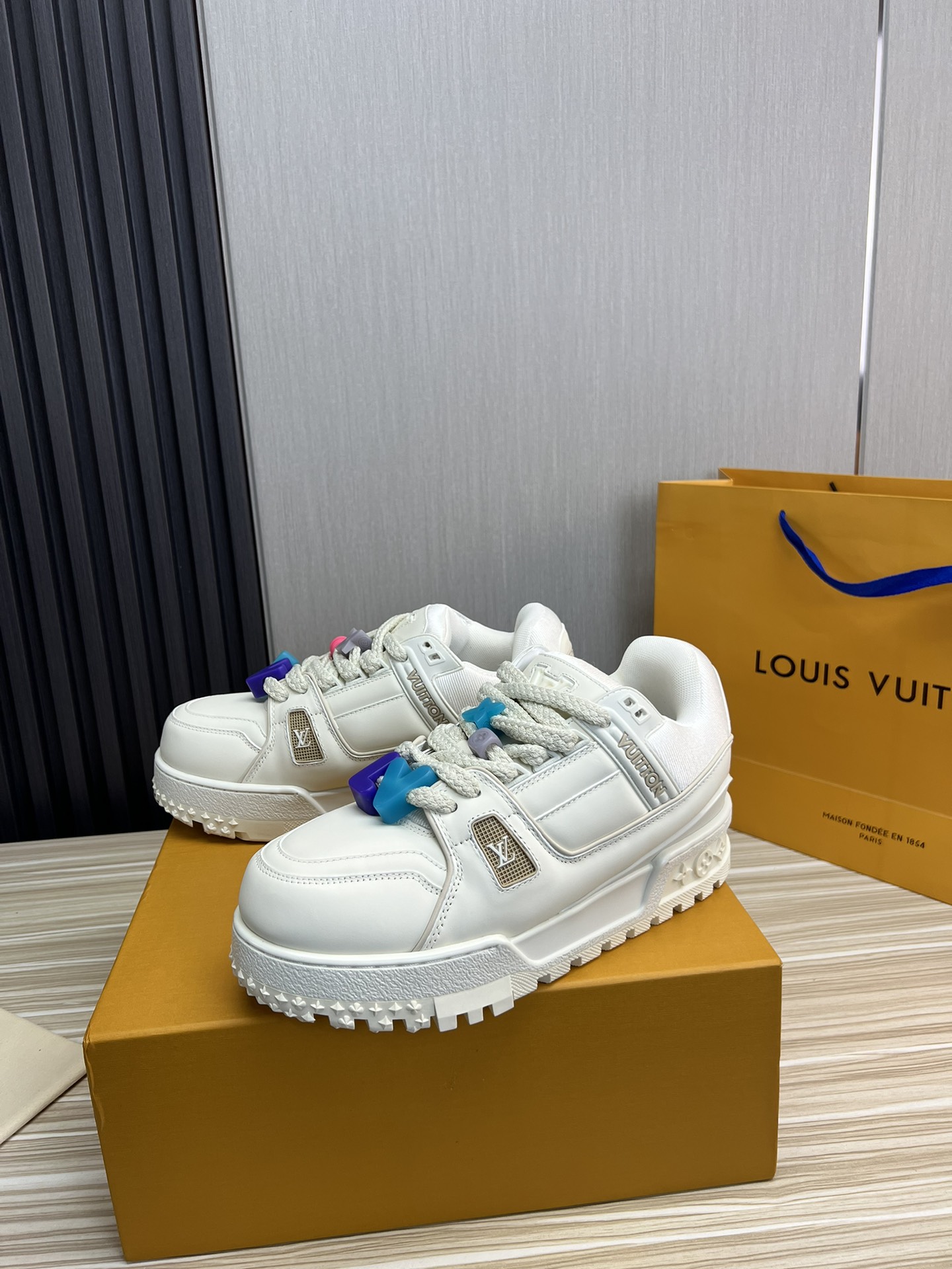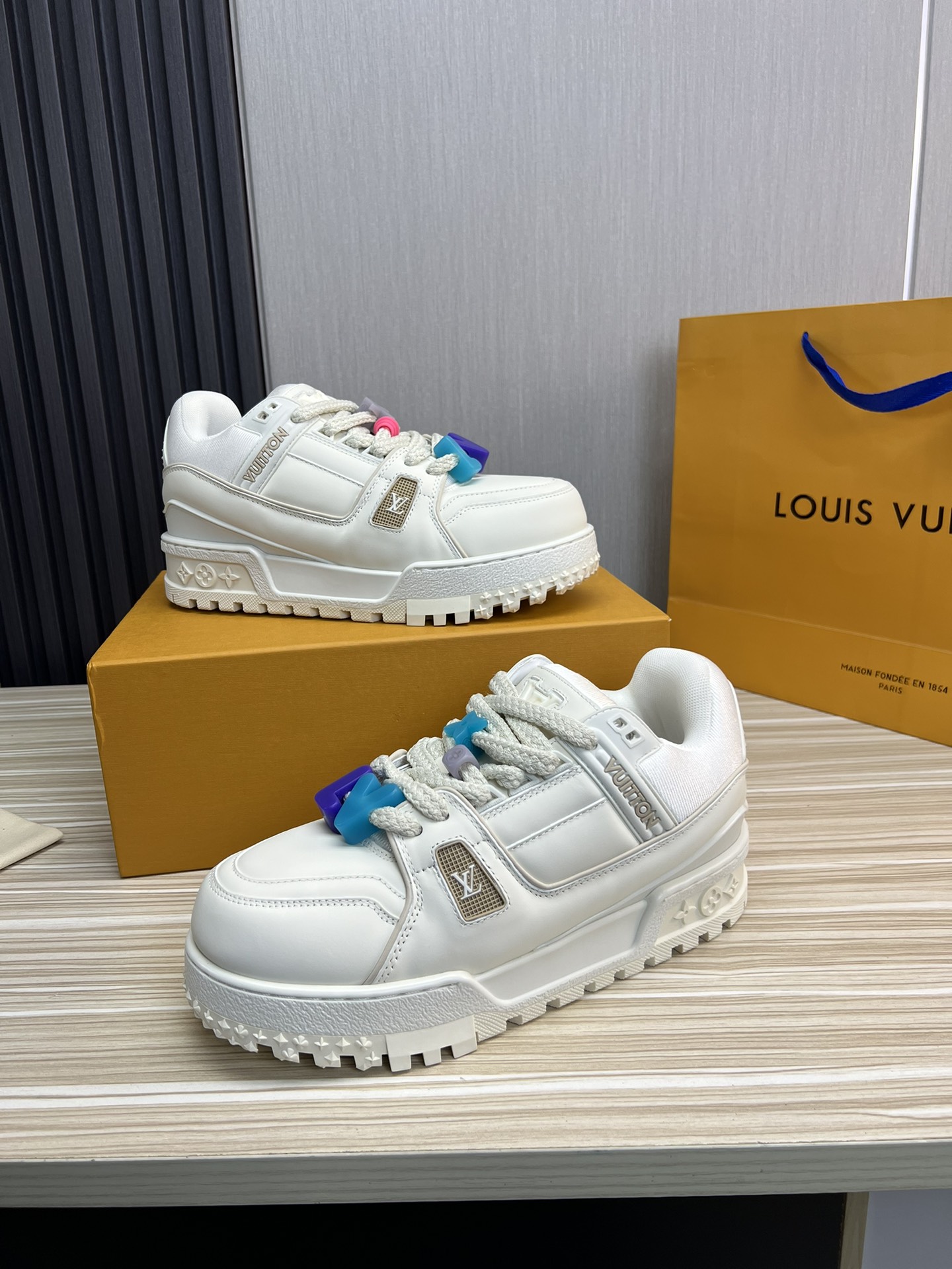 這款鞋子是AAAAA 1:1 質量(非常棒). 使用了和原版一模一樣的材料. 商標部分也保持了和路易威登/Louis Vuitton一樣. 圖片拍攝是實物鞋子拍攝, 您所收到的實物保證和我們圖片一模一樣.