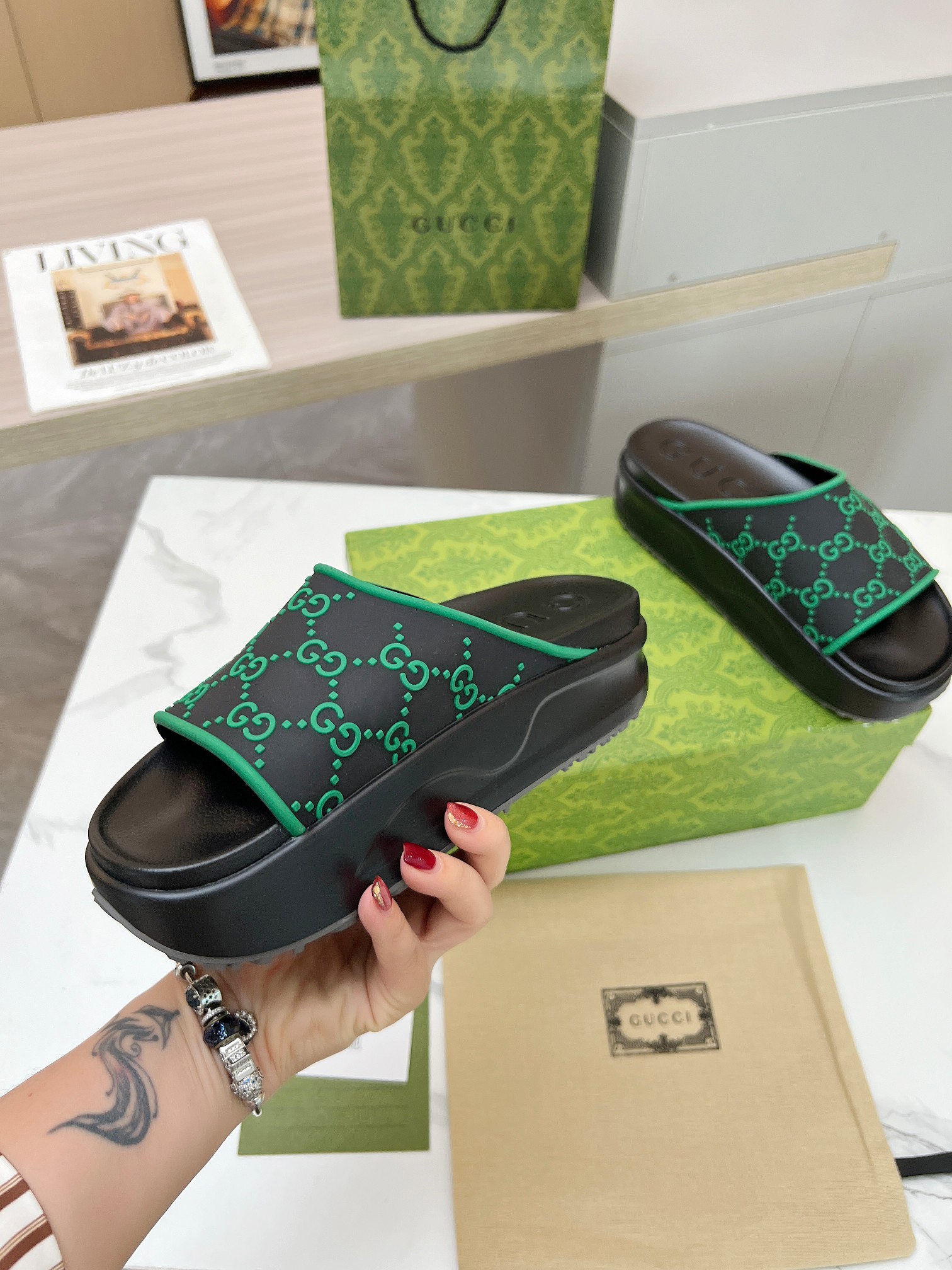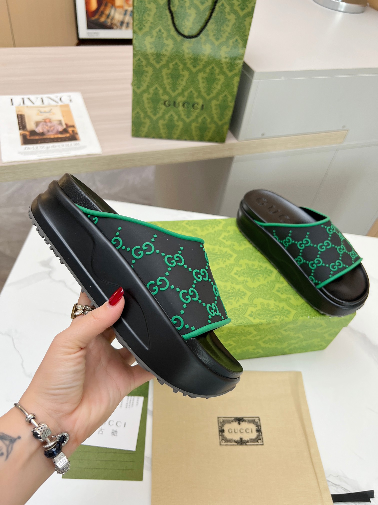 這款鞋子是AAAAA 1:1 質量(非常棒). 使用了和原版一模一樣的材料. 商標部分也保持了和古奇/Gucci一樣. 圖片拍攝是實物鞋子拍攝, 您所收到的實物保證和我們圖片一模一樣.