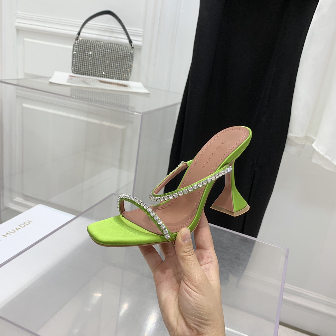 這款鞋子是AAAAA 1:1 質量(非常棒). 使用了和原版一模一樣的材料. 商標部分也保持了和Amina Muaddi一樣. 圖片拍攝是實物鞋子拍攝, 您所收到的實物保證和我們圖片一模一樣.