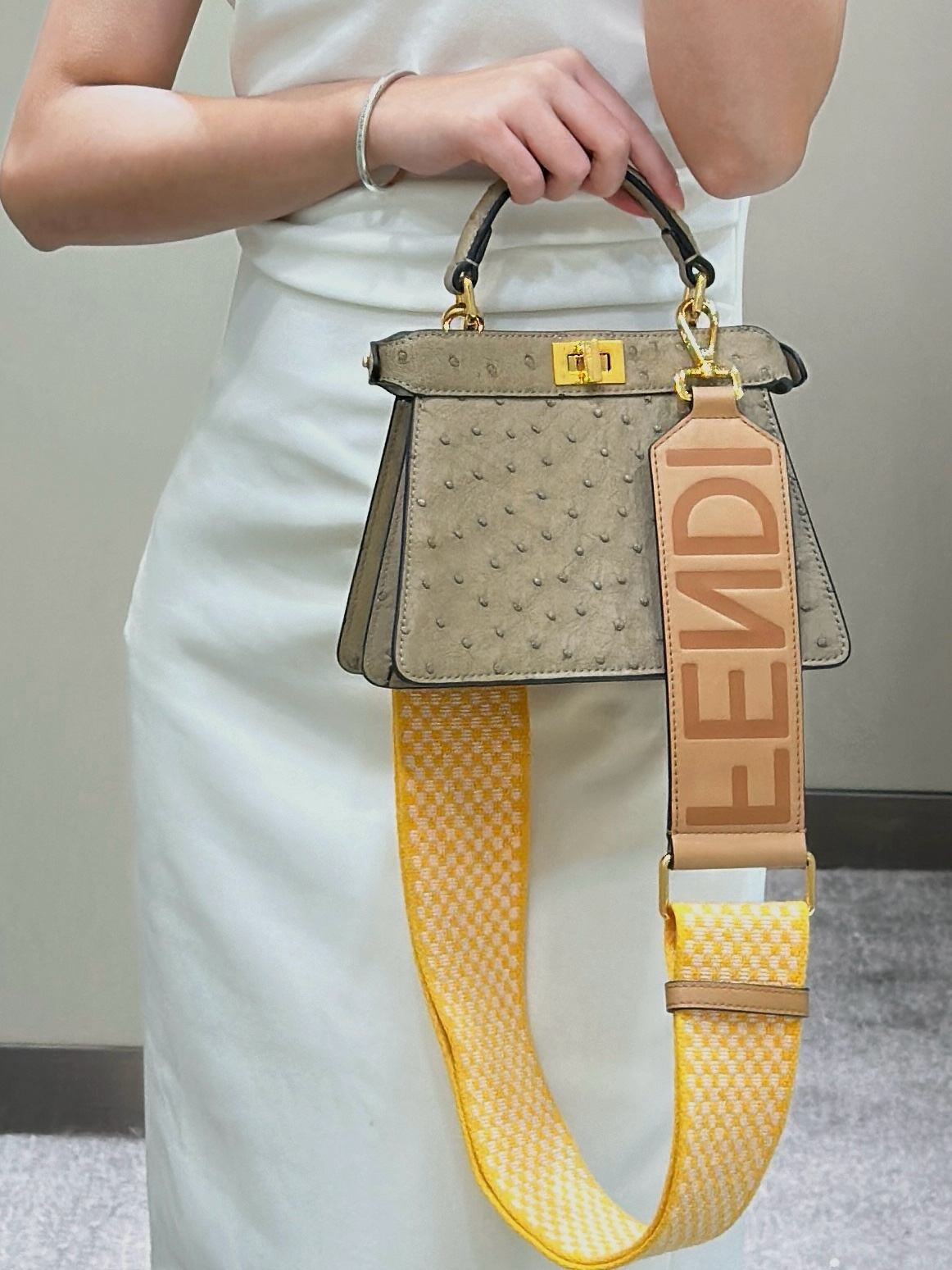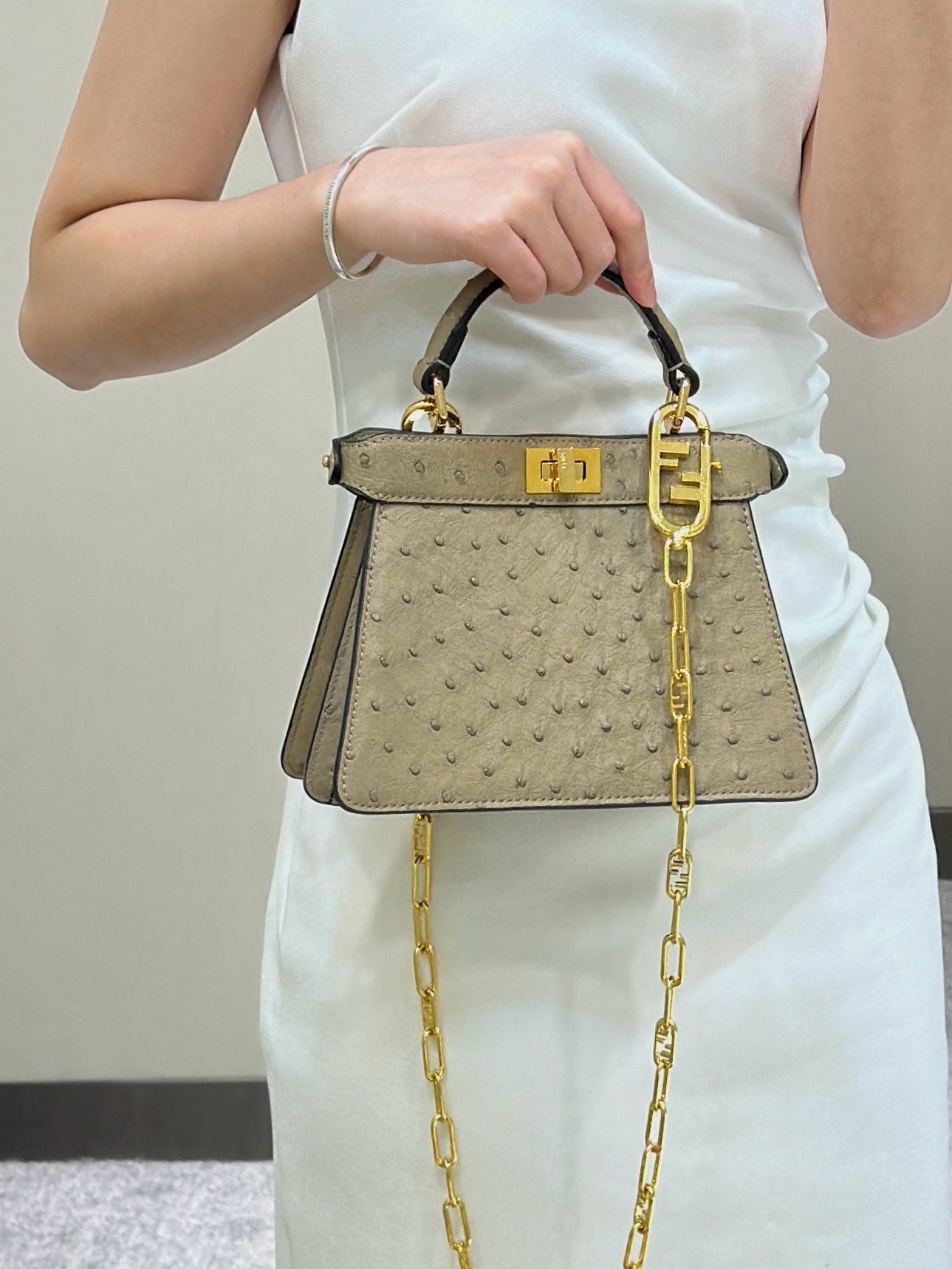 這款包包是AAAAA 1:1 質量(非常棒). 使用了和原版一模一樣的材料. 商標部分也保持了和芬迪/Fendi一樣. 圖片拍攝是實物包包拍攝, 您所收到的實物保證和我們圖片一模一樣.