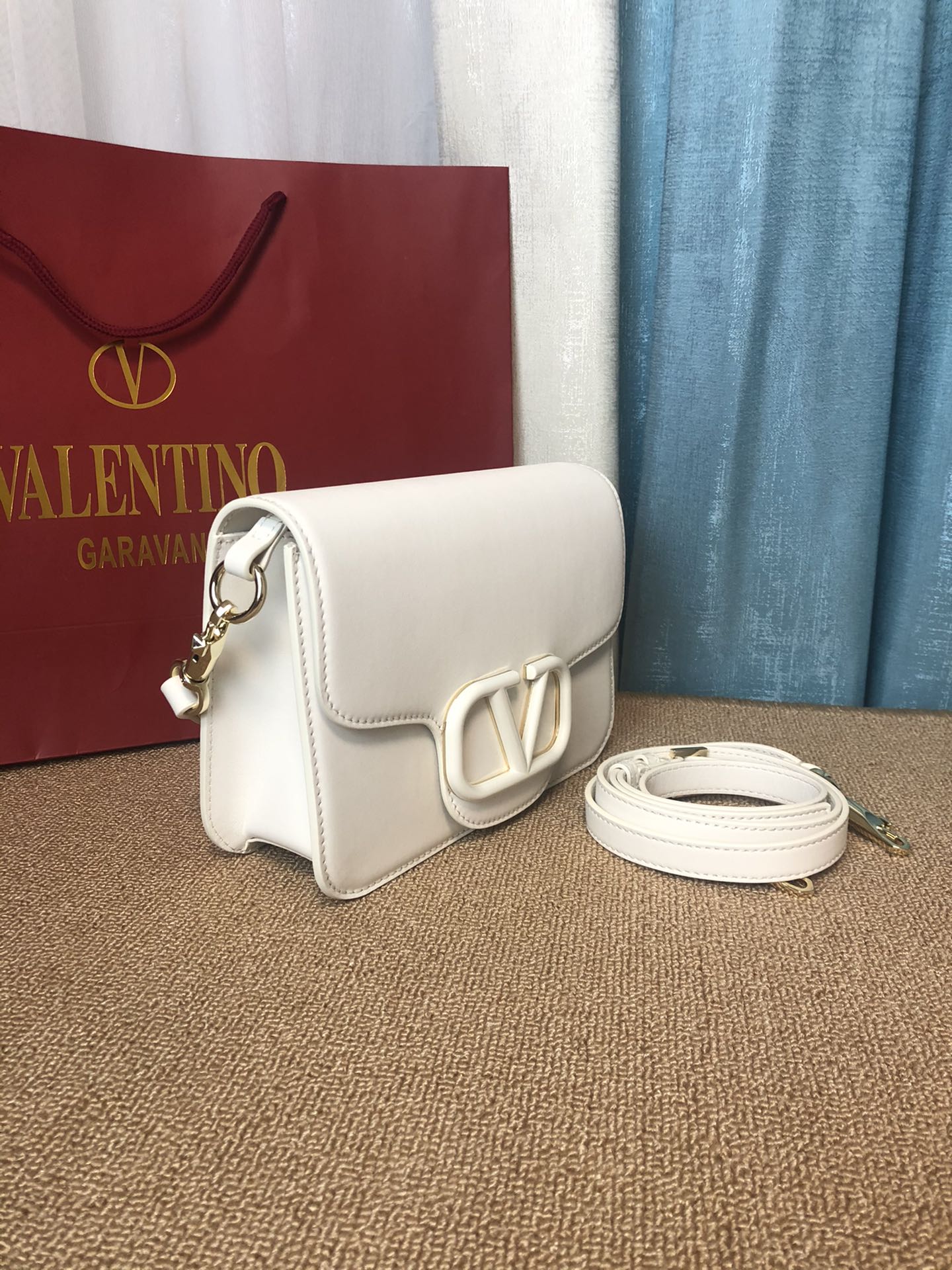 這款包包是AAAAA 1:1 質量(非常棒). 使用了和原版一模一樣的材料. 商標部分也保持了和瓦倫蒂諾/Valentino一樣. 圖片拍攝是實物包包拍攝, 您所收到的實物保證和我們圖片一模一樣.