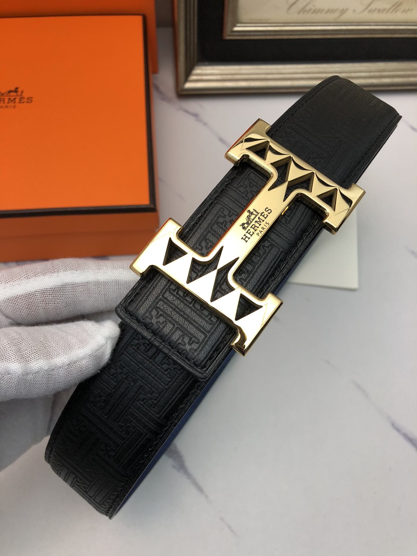 這款皮帶是AAAAA 1:1 質量(非常棒). 使用了和原版一模一樣的材料. 商標部分也保持了和愛馬仕/Hermes一樣. 圖片拍攝是實物皮帶拍攝, 您所收到的實物保證和我們圖片一模一樣.