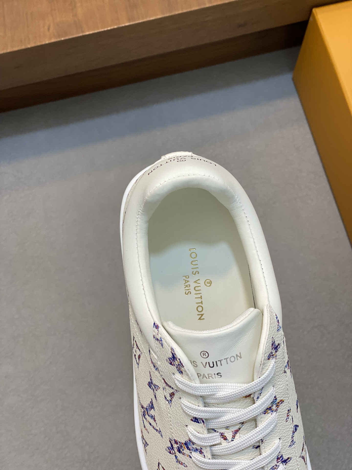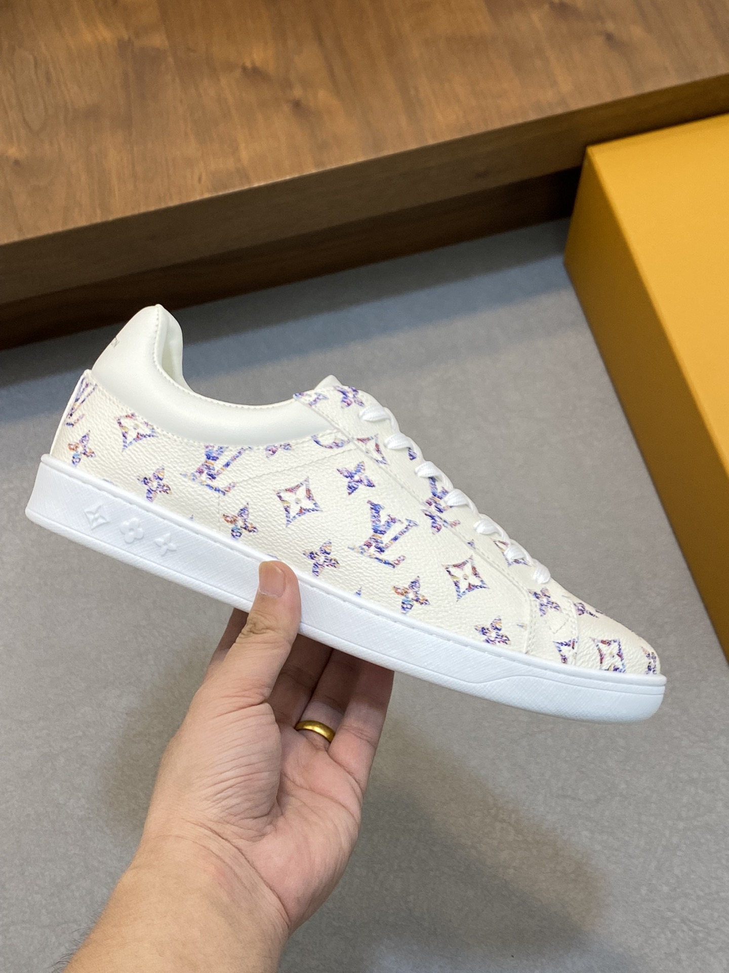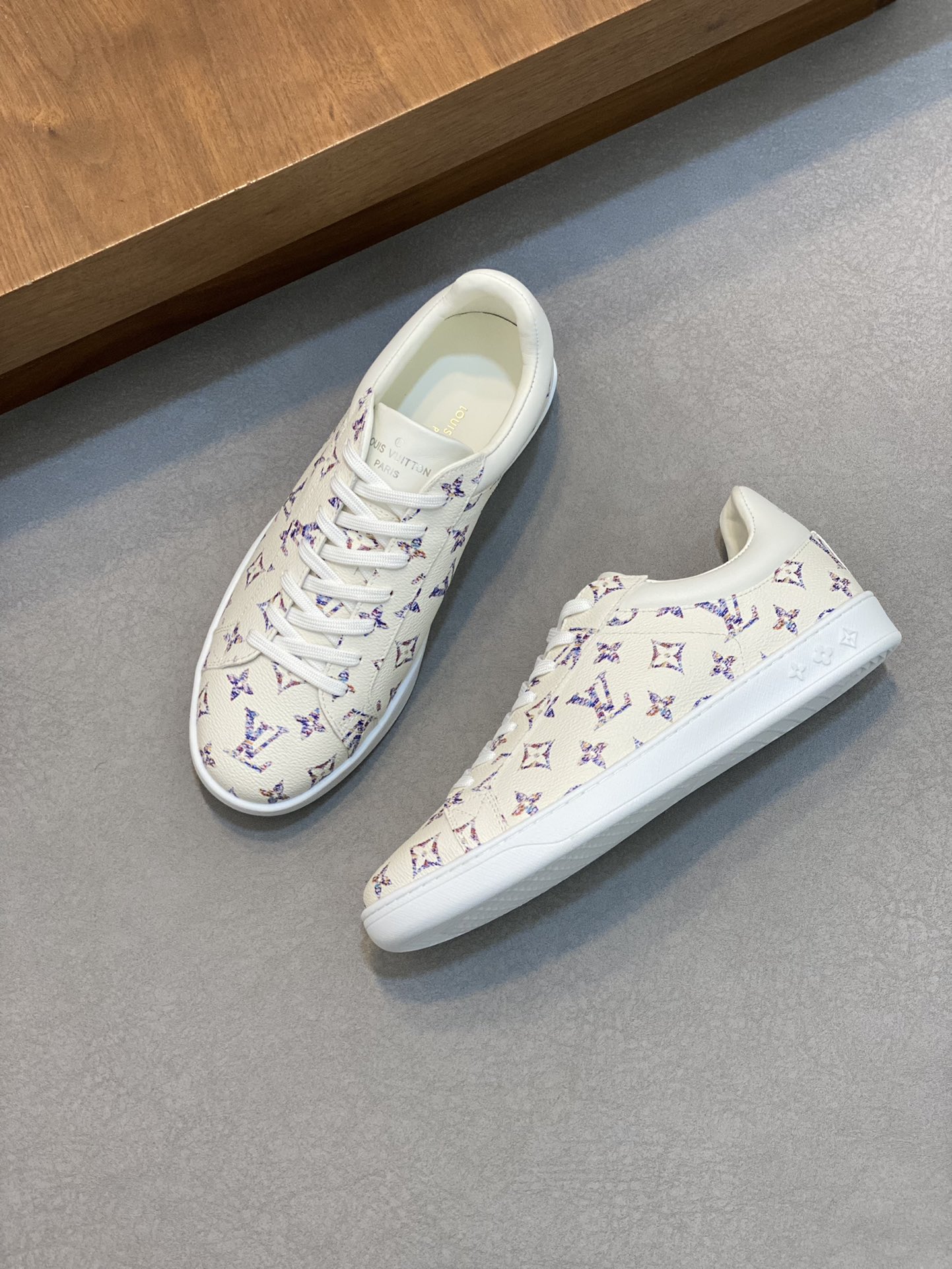 這款鞋子是AAAAA 1:1 質量(非常棒). 使用了和原版一模一樣的材料. 商標部分也保持了和路易威登/Louis Vuitton一樣. 圖片拍攝是實物鞋子拍攝, 您所收到的實物保證和我們圖片一模一樣.