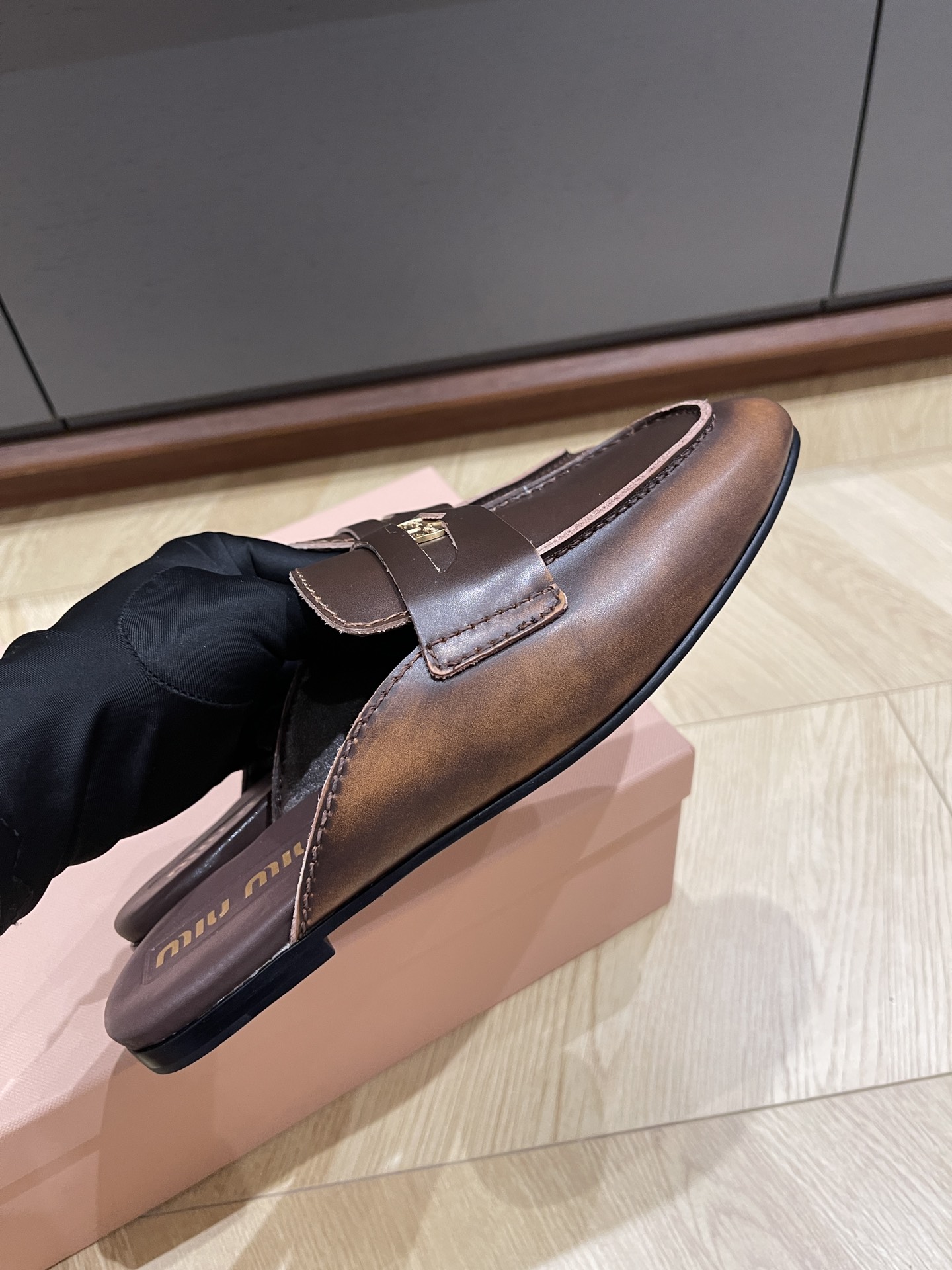 這款鞋子是AAAAA 1:1 質量(非常棒). 使用了和原版一模一樣的材料. 商標部分也保持了和繆繆/Miu Miu一樣. 圖片拍攝是實物鞋子拍攝, 您所收到的實物保證和我們圖片一模一樣.