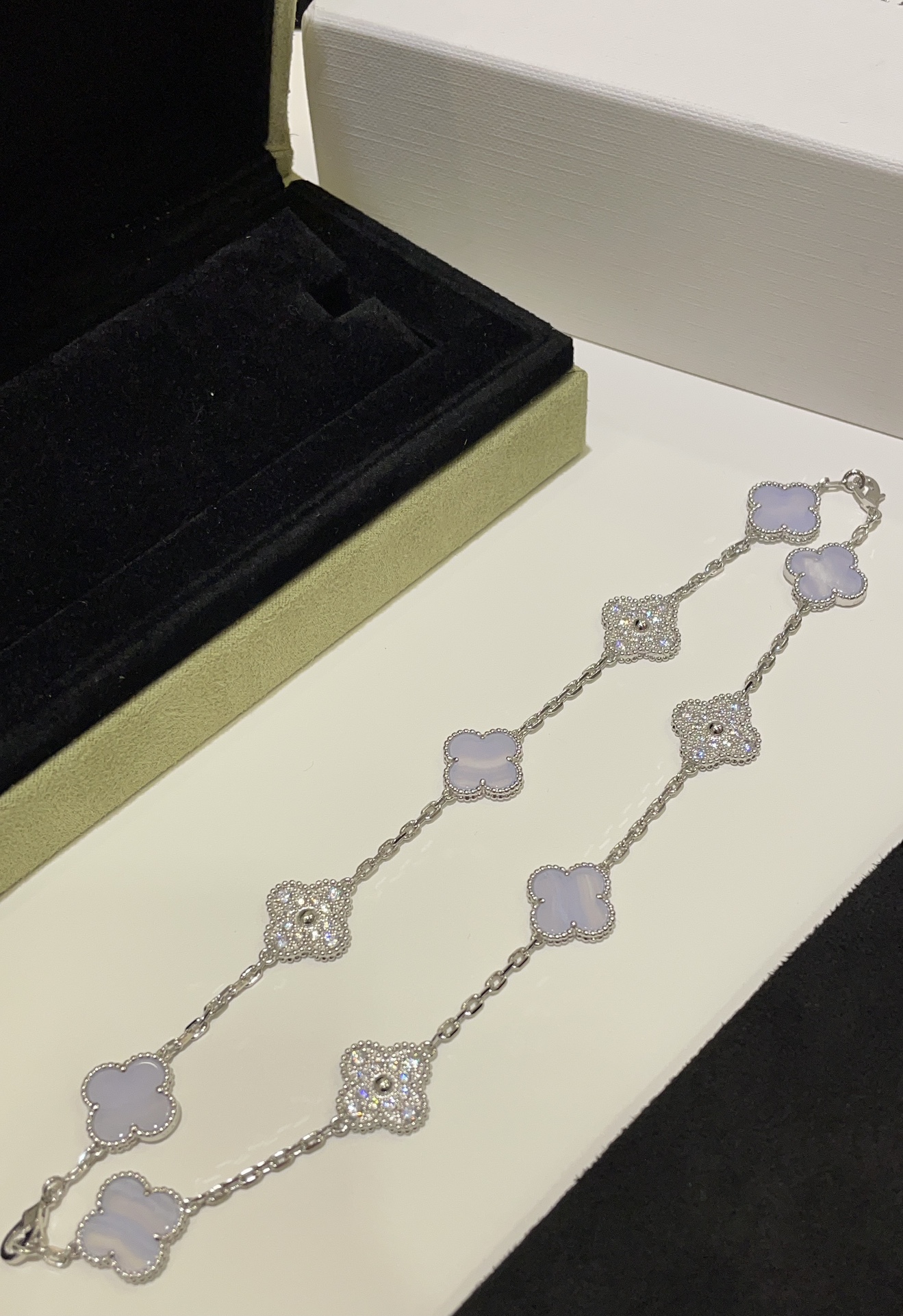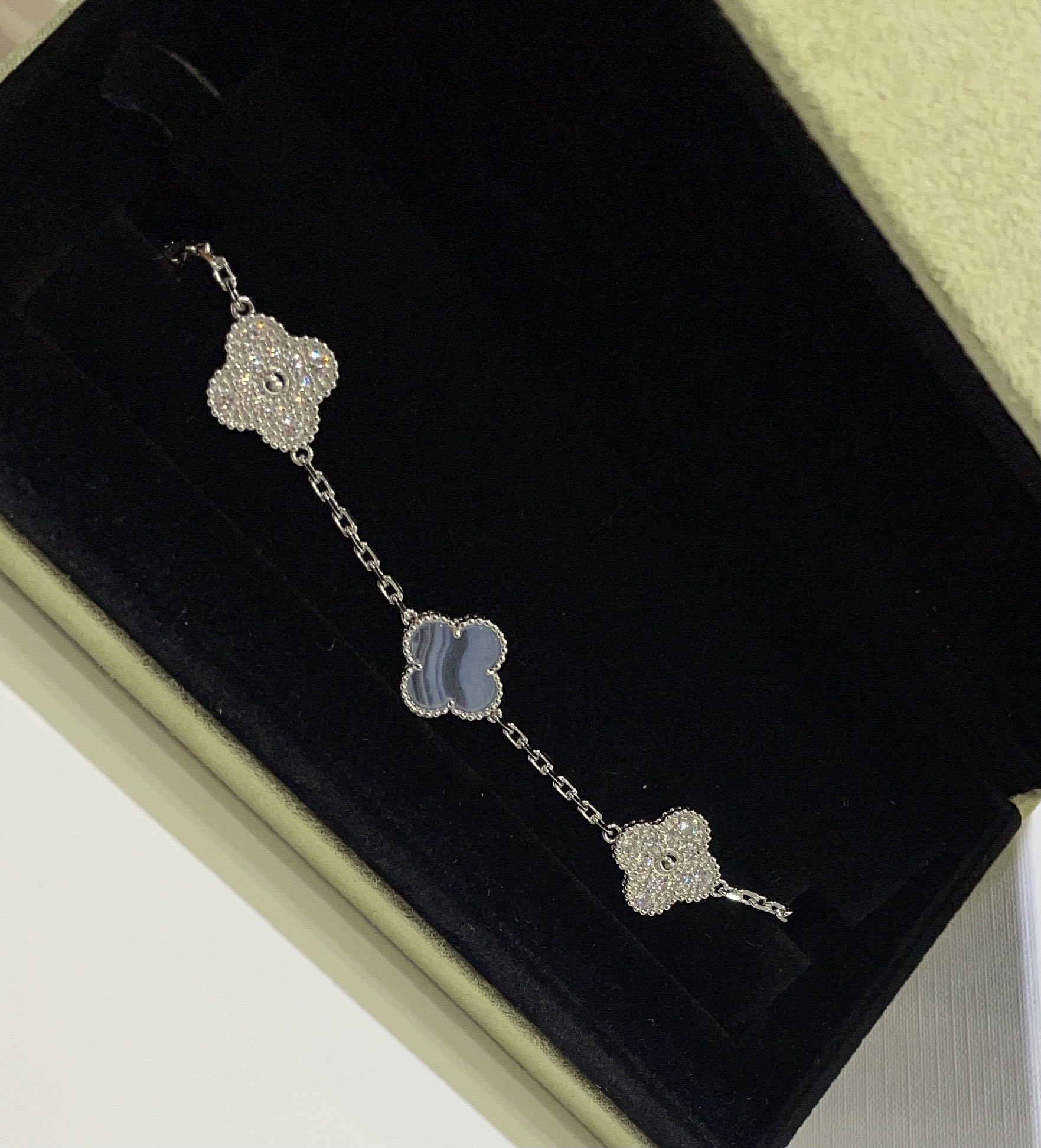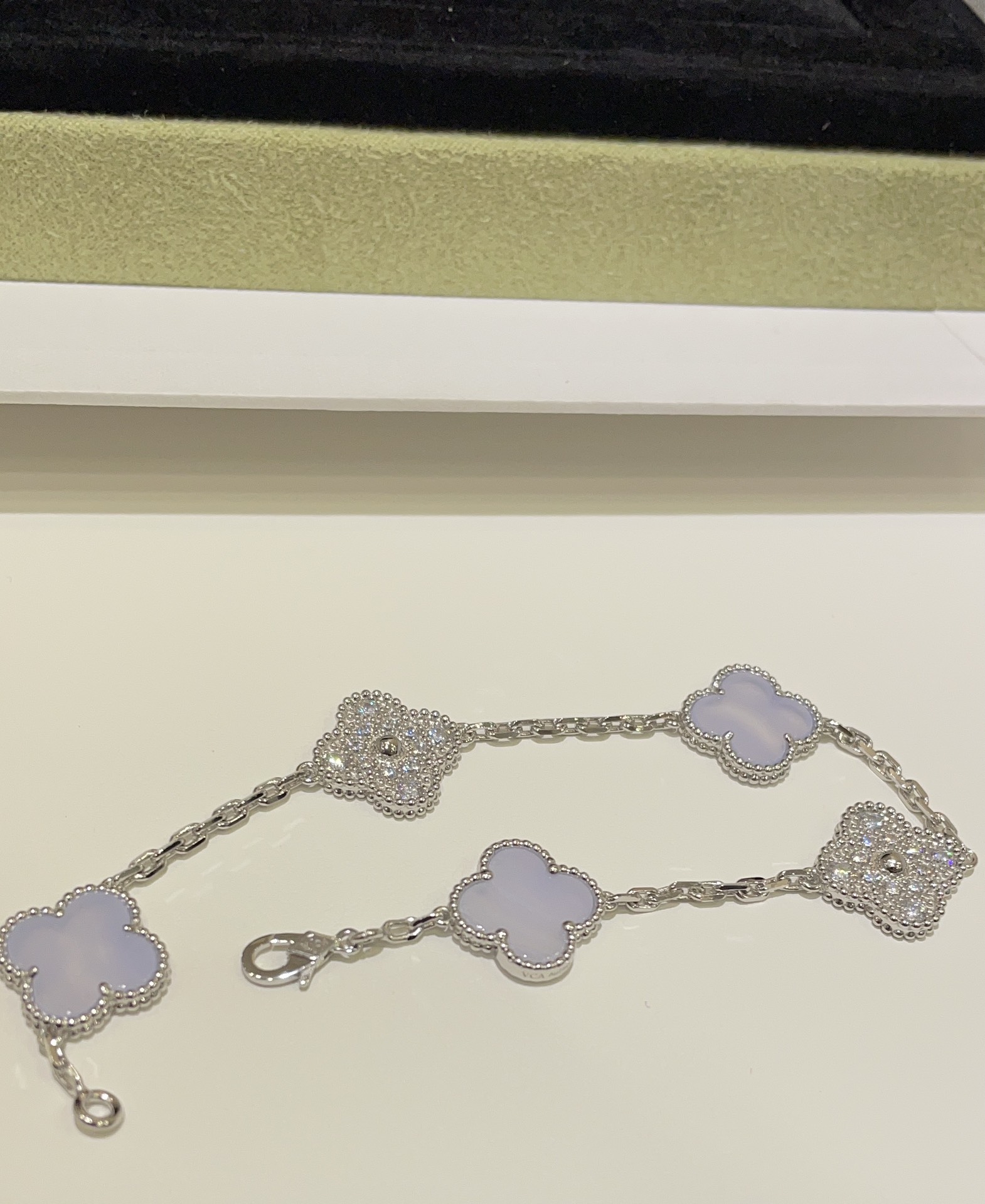 這款首飾是AAAAA 1:1 質量(非常棒). 使用了和原版一模一樣的材料. 商標部分也保持了和梵克雅寶/Van Cleef & Arpels一樣. 圖片拍攝是實物首飾拍攝, 您所收到的實物保證和我們圖片一模一樣.