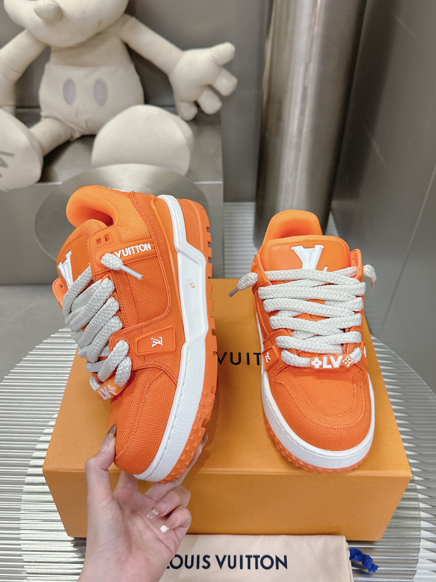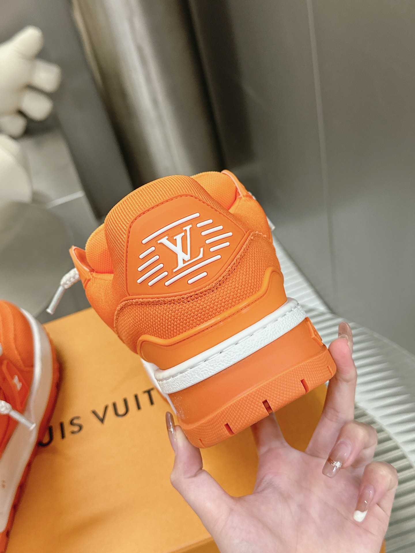 這款鞋子是AAAAA 1:1 質量(非常棒). 使用了和原版一模一樣的材料. 商標部分也保持了和路易威登/Louis Vuitton一樣. 圖片拍攝是實物鞋子拍攝, 您所收到的實物保證和我們圖片一模一樣.