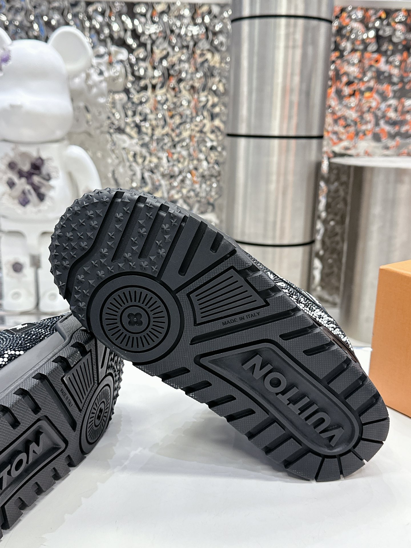 這款鞋子是AAAAA 1:1 質量(非常棒). 使用了和原版一模一樣的材料. 商標部分也保持了和路易威登/Louis Vuitton一樣. 圖片拍攝是實物鞋子拍攝, 您所收到的實物保證和我們圖片一模一樣.