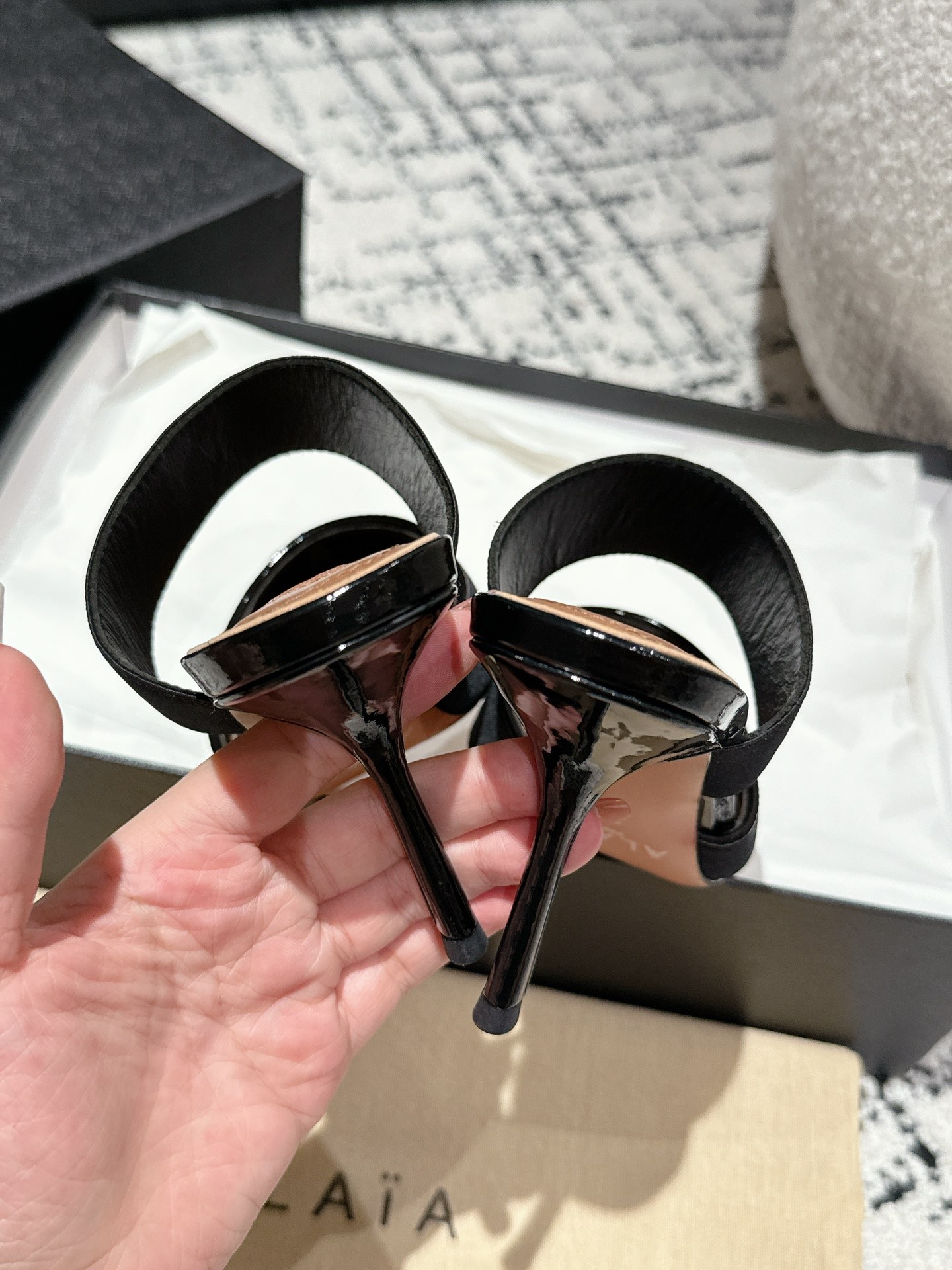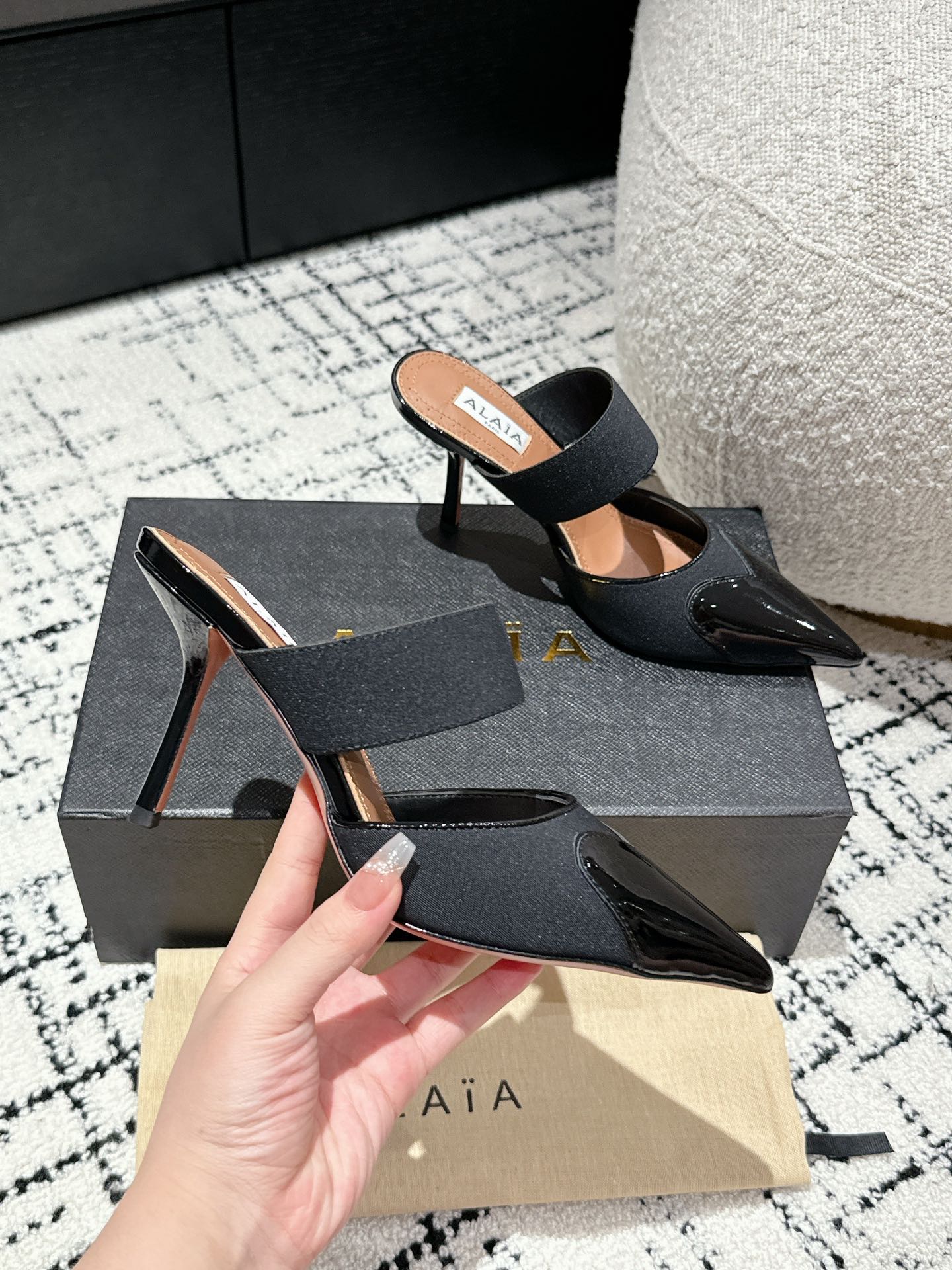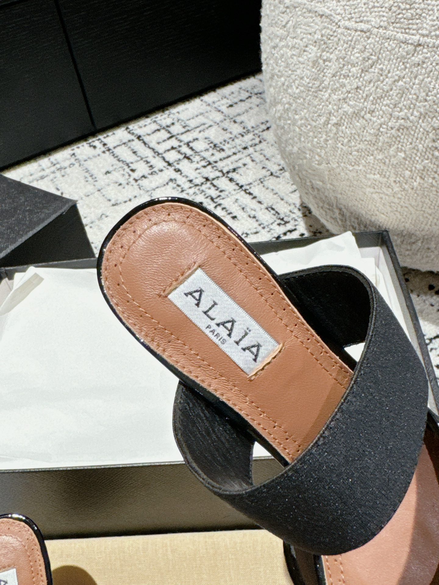 這款鞋子是AAAAA 1:1 質量(非常棒). 使用了和原版一模一樣的材料. 商標部分也保持了和Alaia一樣. 圖片拍攝是實物鞋子拍攝, 您所收到的實物保證和我們圖片一模一樣.