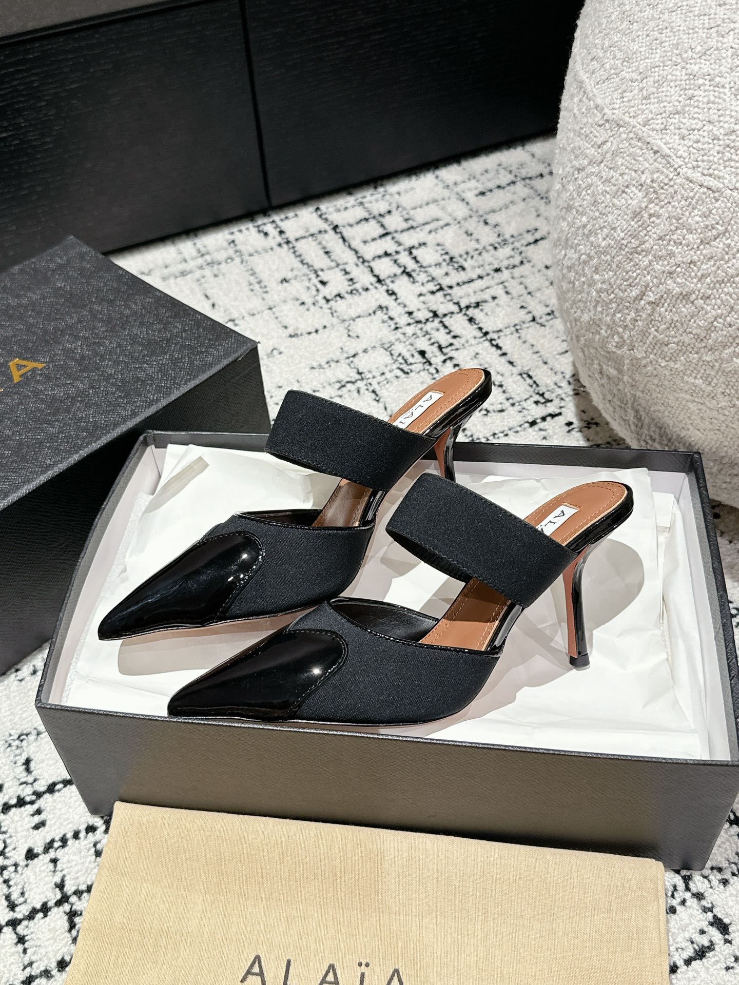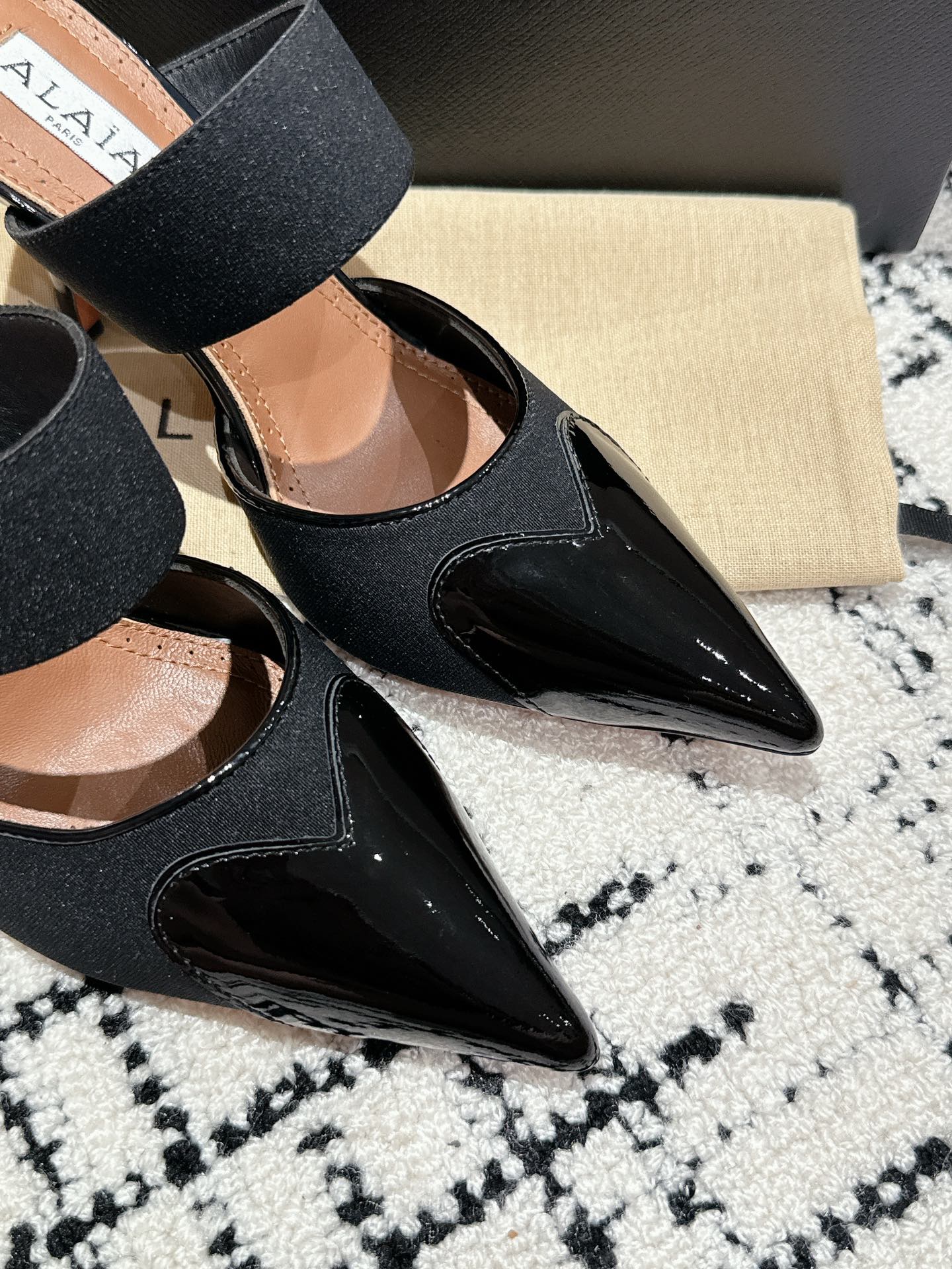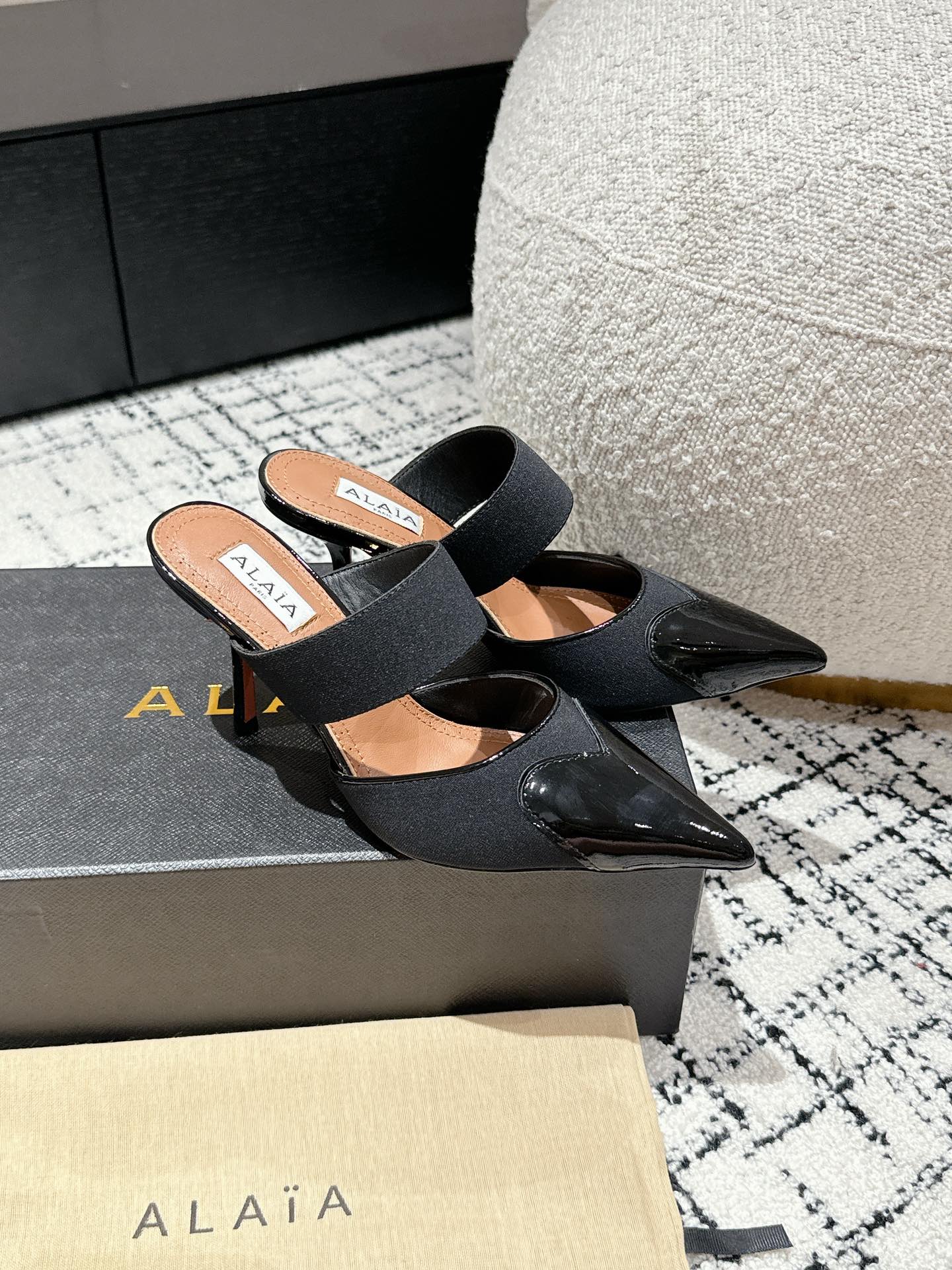 這款鞋子是AAAAA 1:1 質量(非常棒). 使用了和原版一模一樣的材料. 商標部分也保持了和Alaia一樣. 圖片拍攝是實物鞋子拍攝, 您所收到的實物保證和我們圖片一模一樣.