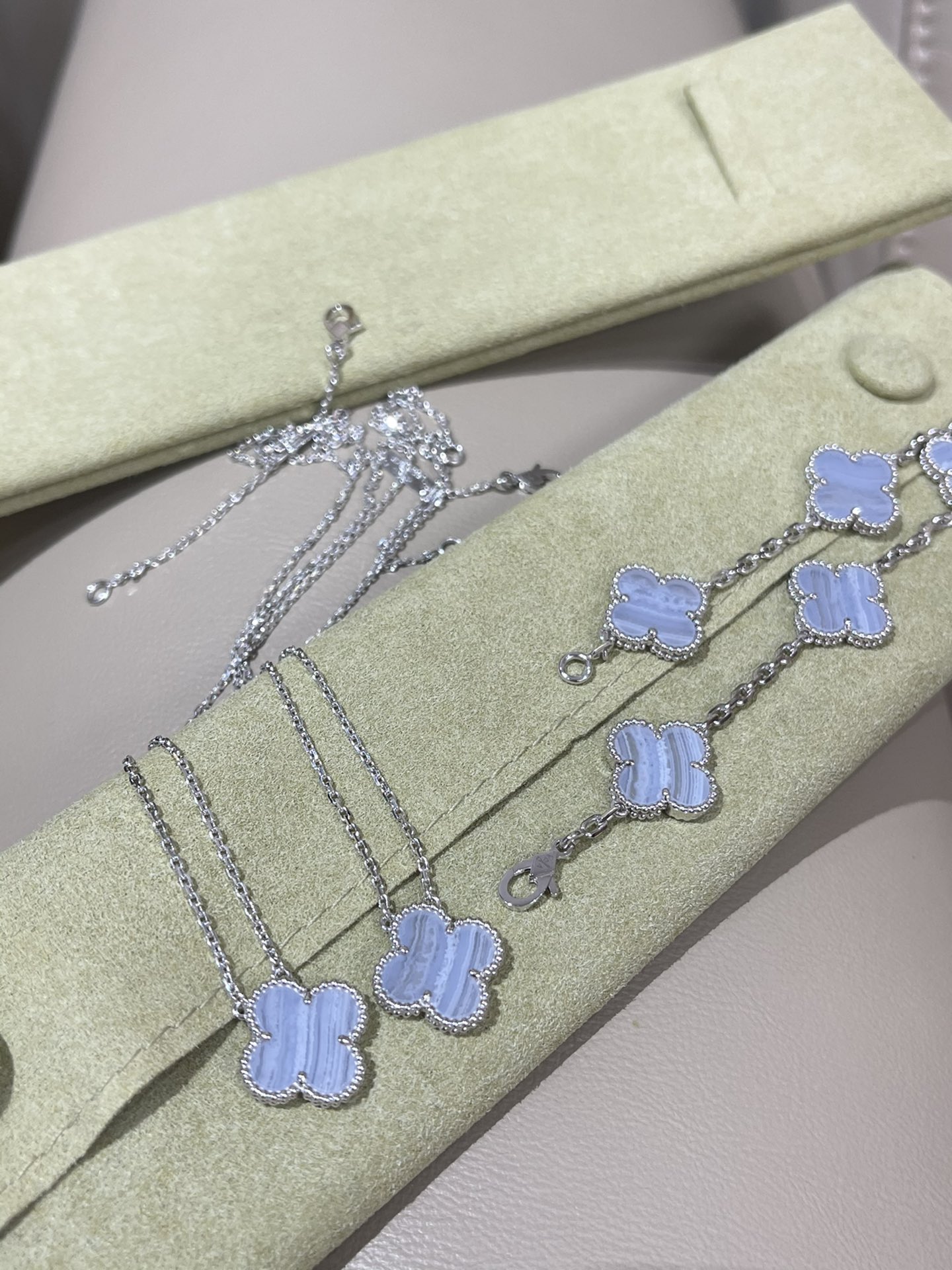 這款首飾是AAAAA 1:1 質量(非常棒). 使用了和原版一模一樣的材料. 商標部分也保持了和梵克雅寶/Van Cleef & Arpels一樣. 圖片拍攝是實物首飾拍攝, 您所收到的實物保證和我們圖片一模一樣.