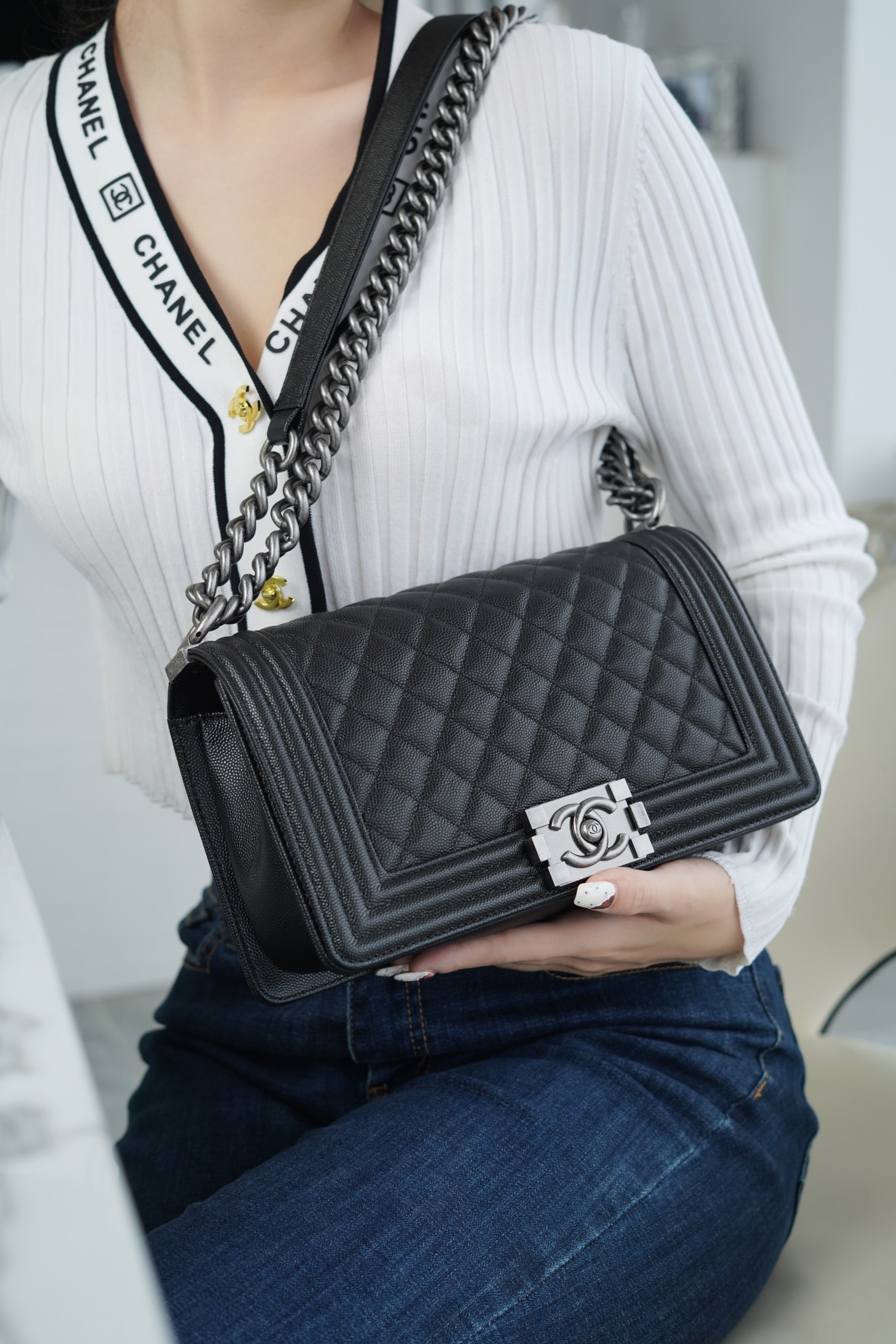 這款包包是AAAAA 1:1 質量(非常棒). 使用了和原版一模一樣的材料. 商標部分也保持了和香奈兒/Chanel一樣. 圖片拍攝是實物包包拍攝, 您所收到的實物保證和我們圖片一模一樣.