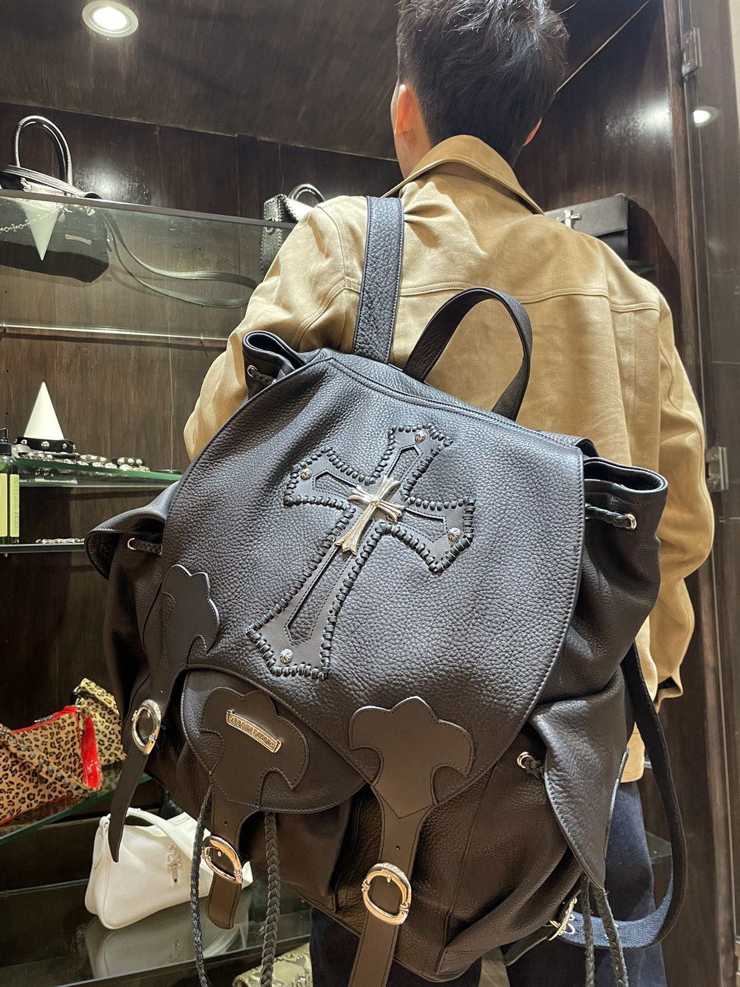 這款包包是AAAAA 1:1 質量(非常棒). 使用了和原版一模一樣的材料. 商標部分也保持了和鉻心/Chrome Hearts一樣. 圖片拍攝是實物包包拍攝, 您所收到的實物保證和我們圖片一模一樣.