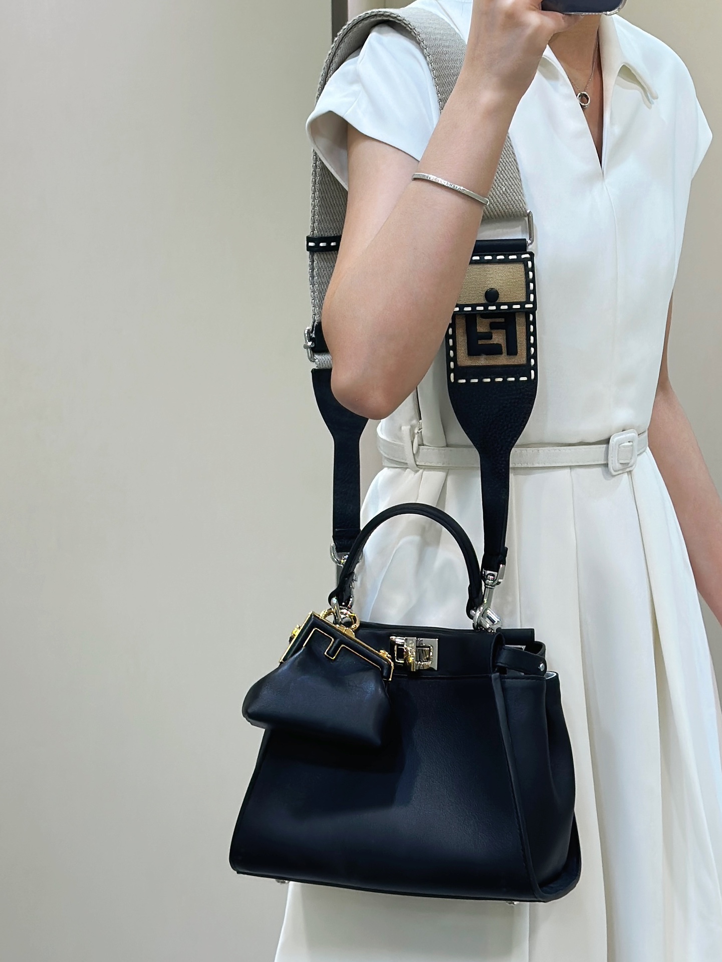 這款包包是AAAAA 1:1 質量(非常棒). 使用了和原版一模一樣的材料. 商標部分也保持了和芬迪/Fendi一樣. 圖片拍攝是實物包包拍攝, 您所收到的實物保證和我們圖片一模一樣.