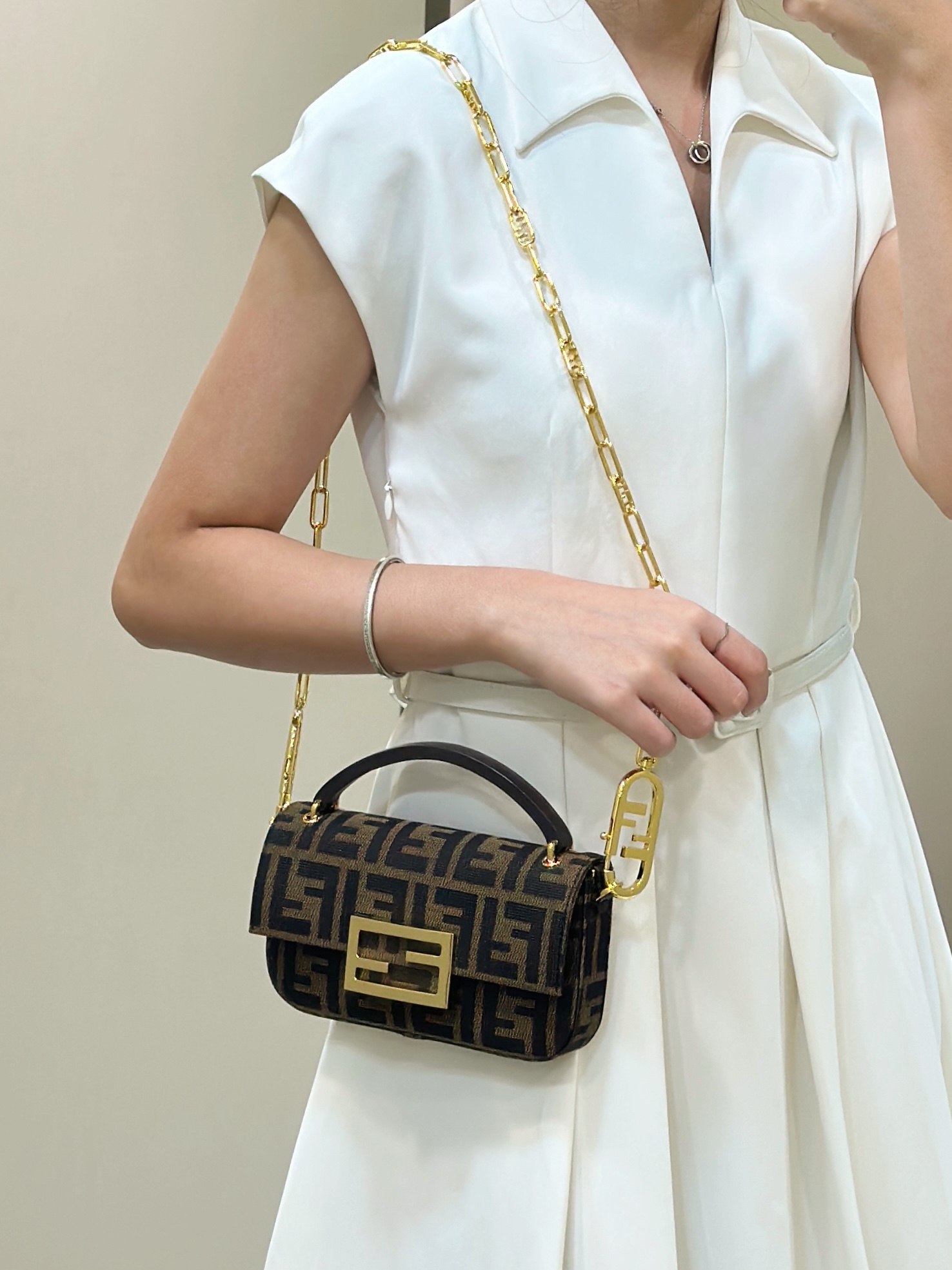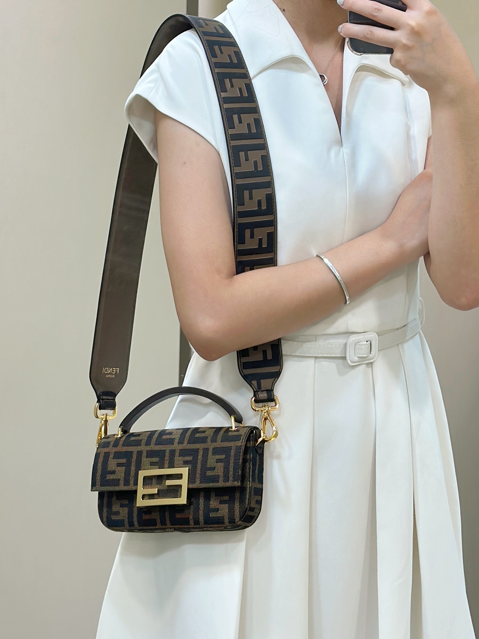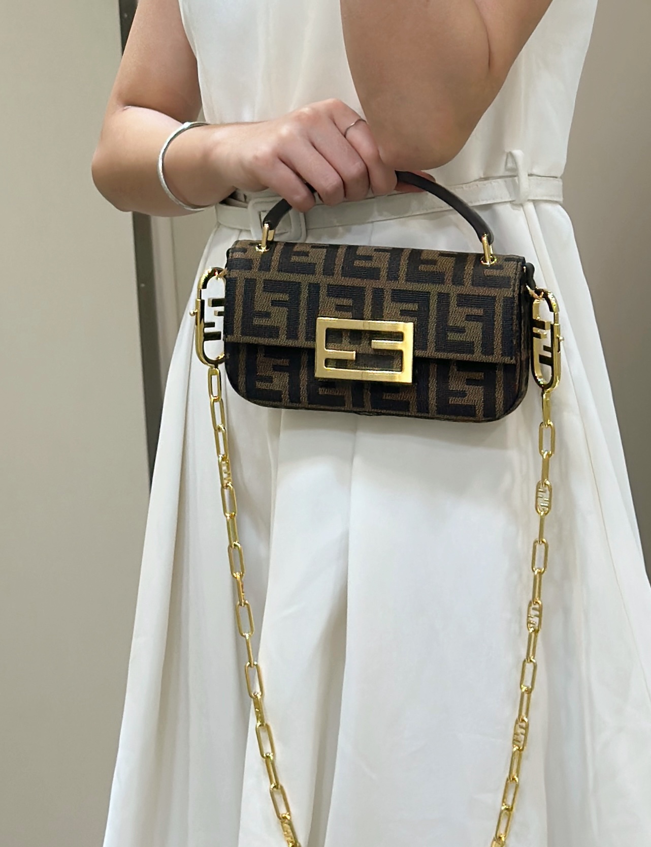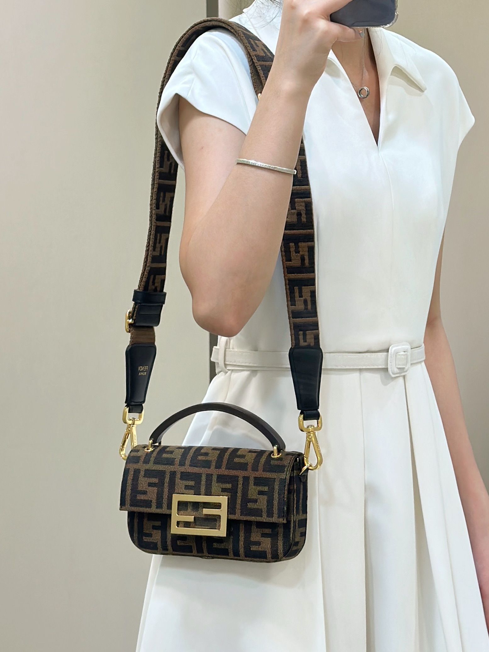 這款包包是AAAAA 1:1 質量(非常棒). 使用了和原版一模一樣的材料. 商標部分也保持了和芬迪/Fendi一樣. 圖片拍攝是實物包包拍攝, 您所收到的實物保證和我們圖片一模一樣.