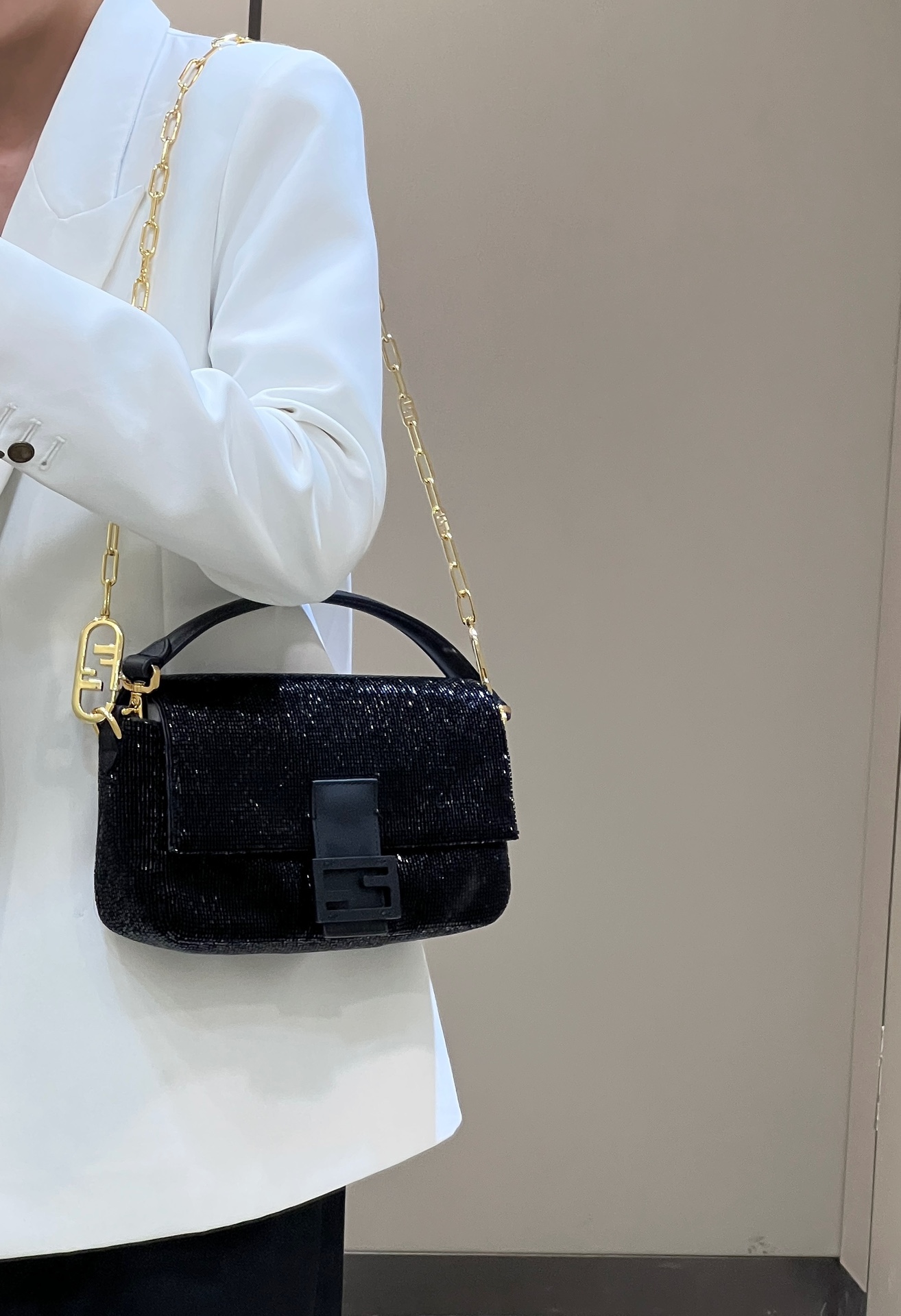 這款包包是AAAAA 1:1 質量(非常棒). 使用了和原版一模一樣的材料. 商標部分也保持了和芬迪/Fendi一樣. 圖片拍攝是實物包包拍攝, 您所收到的實物保證和我們圖片一模一樣.