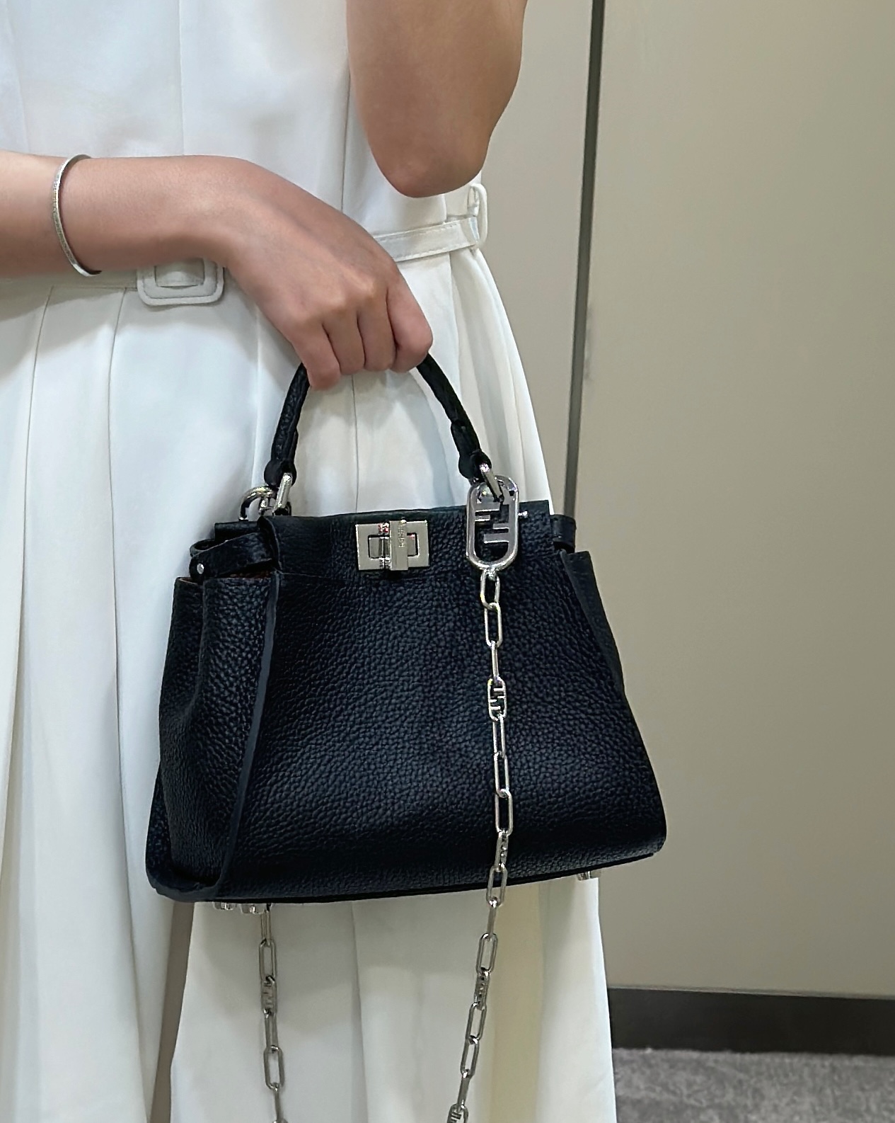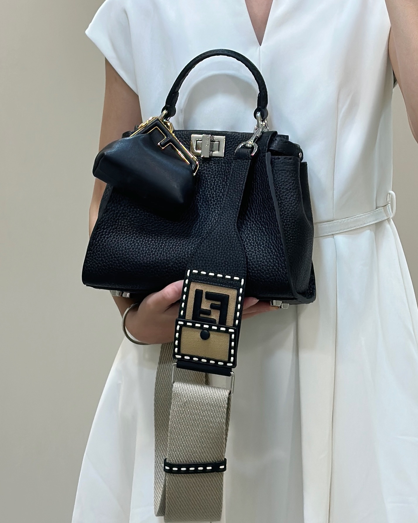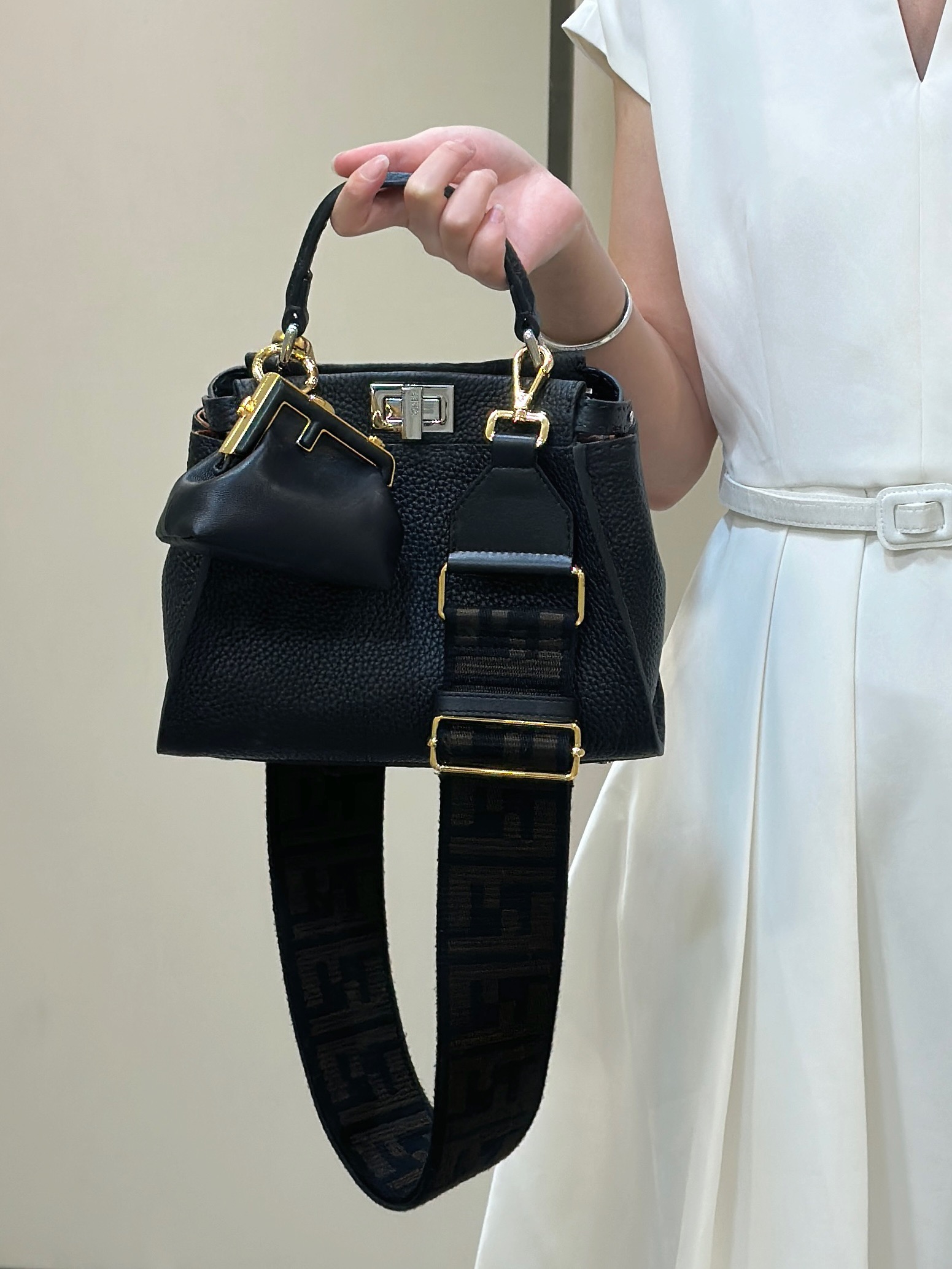 這款包包是AAAAA 1:1 質量(非常棒). 使用了和原版一模一樣的材料. 商標部分也保持了和芬迪/Fendi一樣. 圖片拍攝是實物包包拍攝, 您所收到的實物保證和我們圖片一模一樣.
