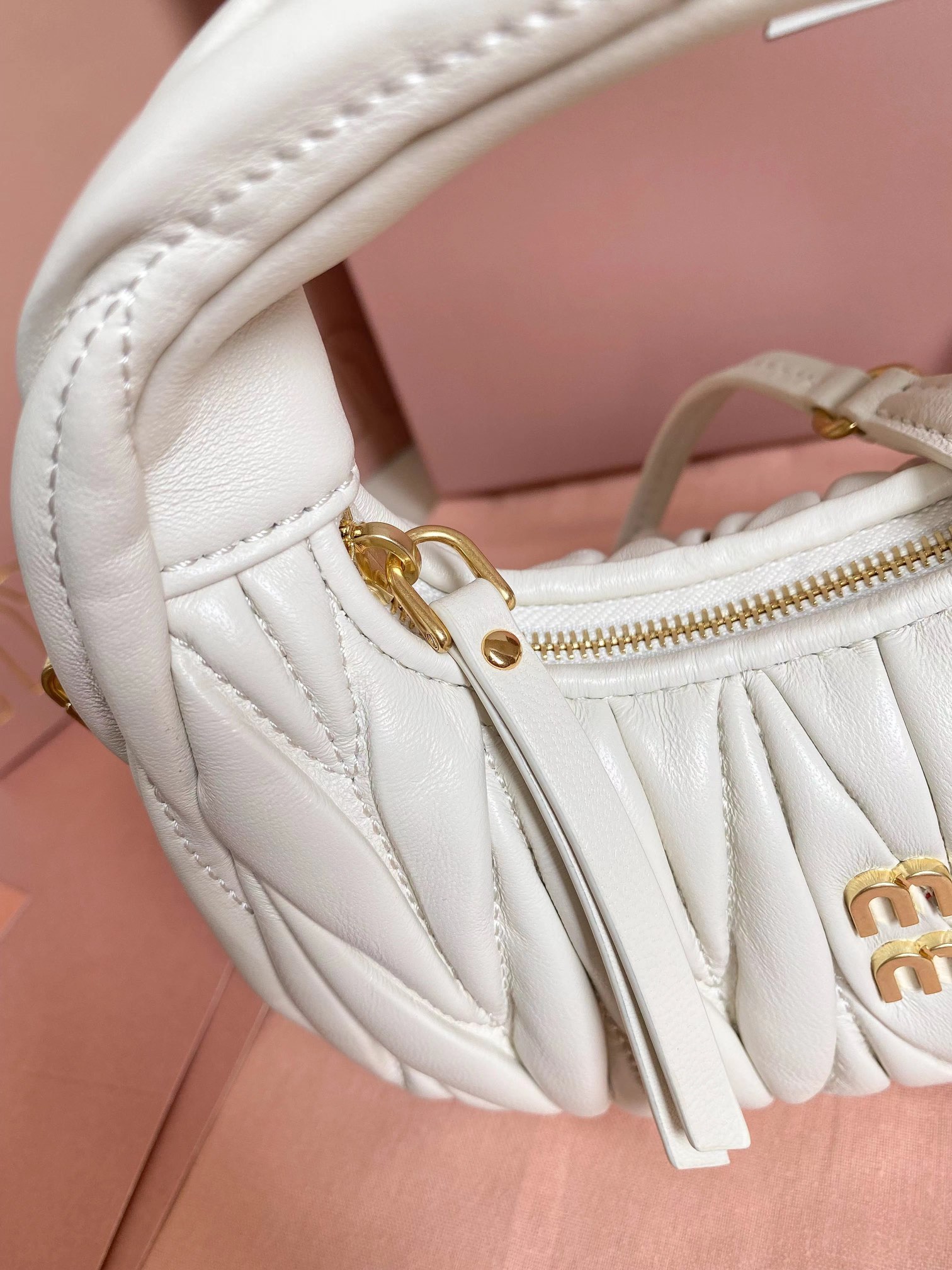 這款包包是AAAAA 1:1 質量(非常棒). 使用了和原版一模一樣的材料. 商標部分也保持了和繆繆/Miu Miu一樣. 圖片拍攝是實物包包拍攝, 您所收到的實物保證和我們圖片一模一樣.