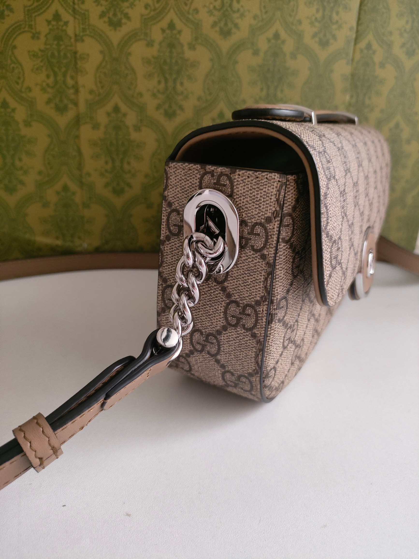 這款包包是AAAAA 1:1 質量(非常棒). 使用了和原版一模一樣的材料. 商標部分也保持了和古奇/Gucci一樣. 圖片拍攝是實物包包拍攝, 您所收到的實物保證和我們圖片一模一樣.