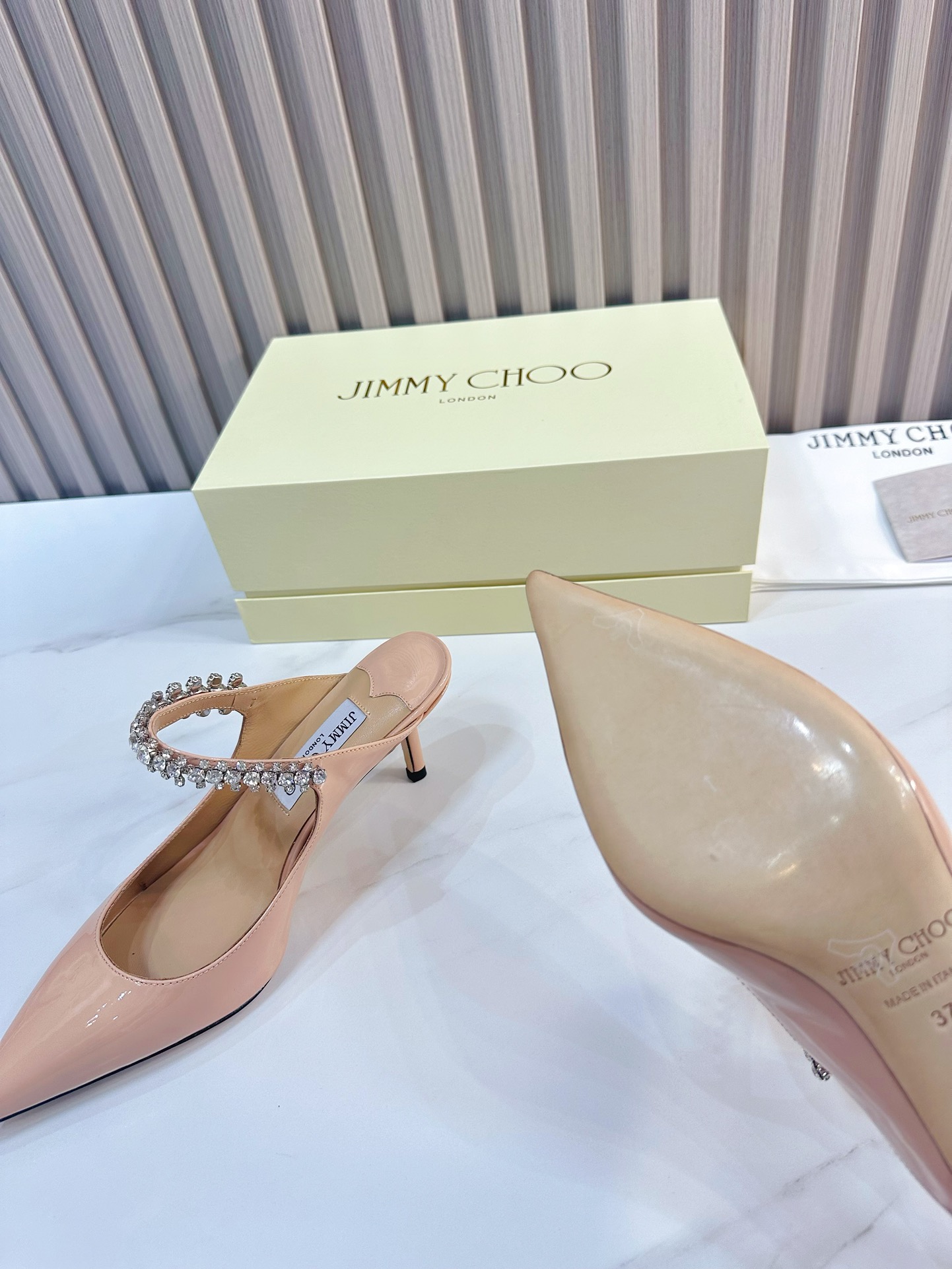 這款鞋子是AAAAA 1:1 質量(非常棒). 使用了和原版一模一樣的材料. 商標部分也保持了和吉米喬/JIMMY CHOO一樣. 圖片拍攝是實物鞋子拍攝, 您所收到的實物保證和我們圖片一模一樣.