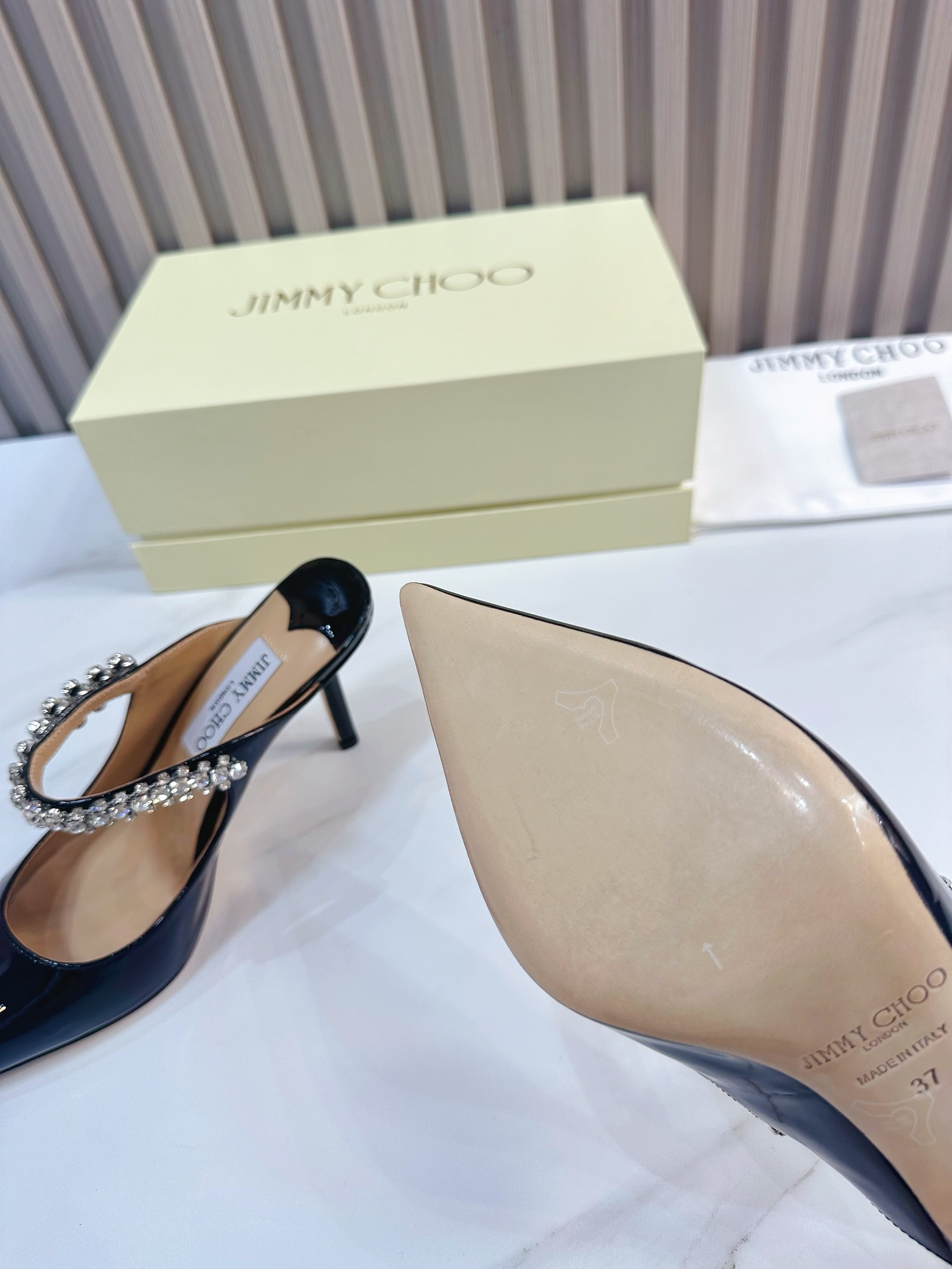 這款鞋子是AAAAA 1:1 質量(非常棒). 使用了和原版一模一樣的材料. 商標部分也保持了和吉米喬/JIMMY CHOO一樣. 圖片拍攝是實物鞋子拍攝, 您所收到的實物保證和我們圖片一模一樣.