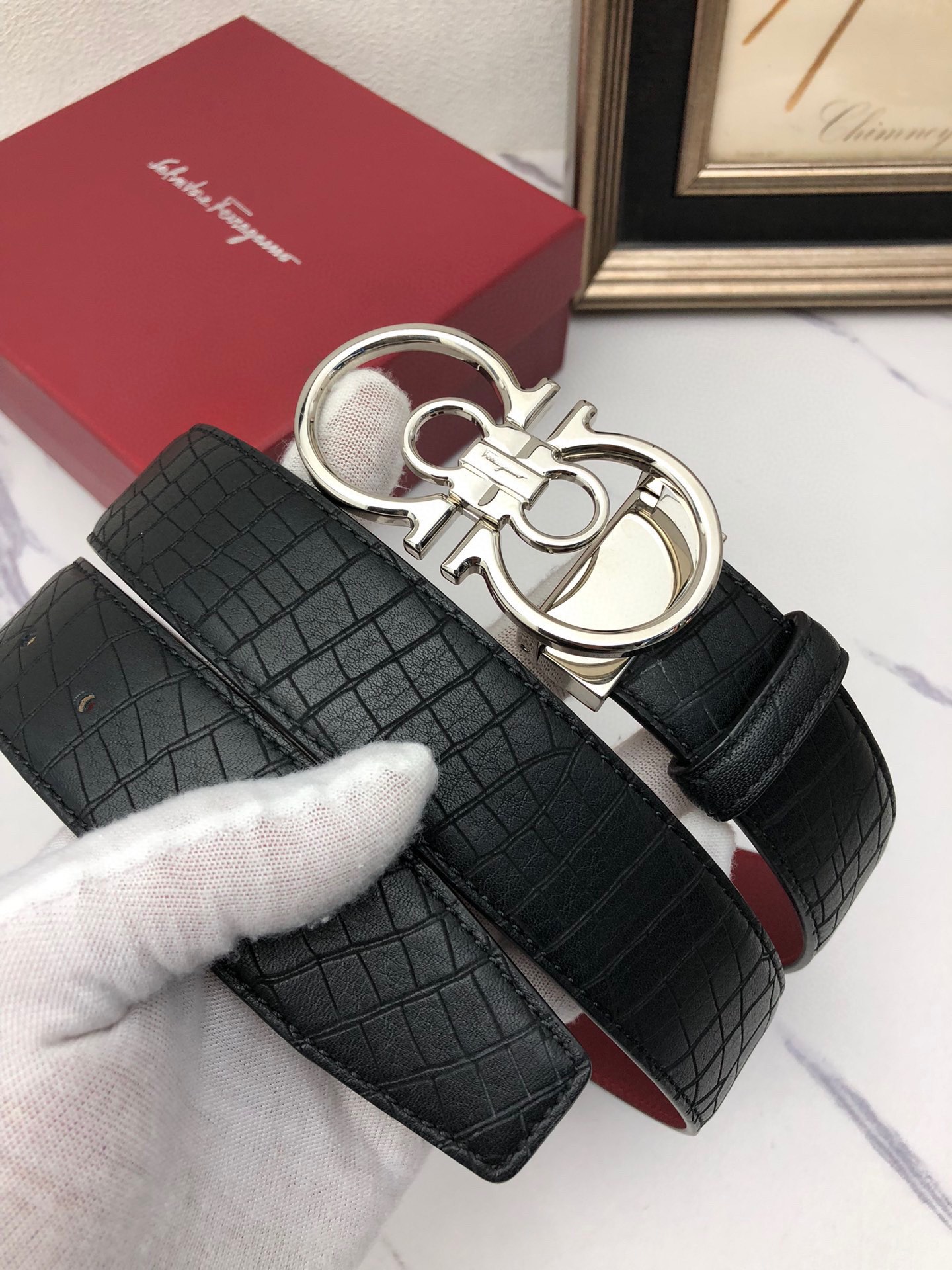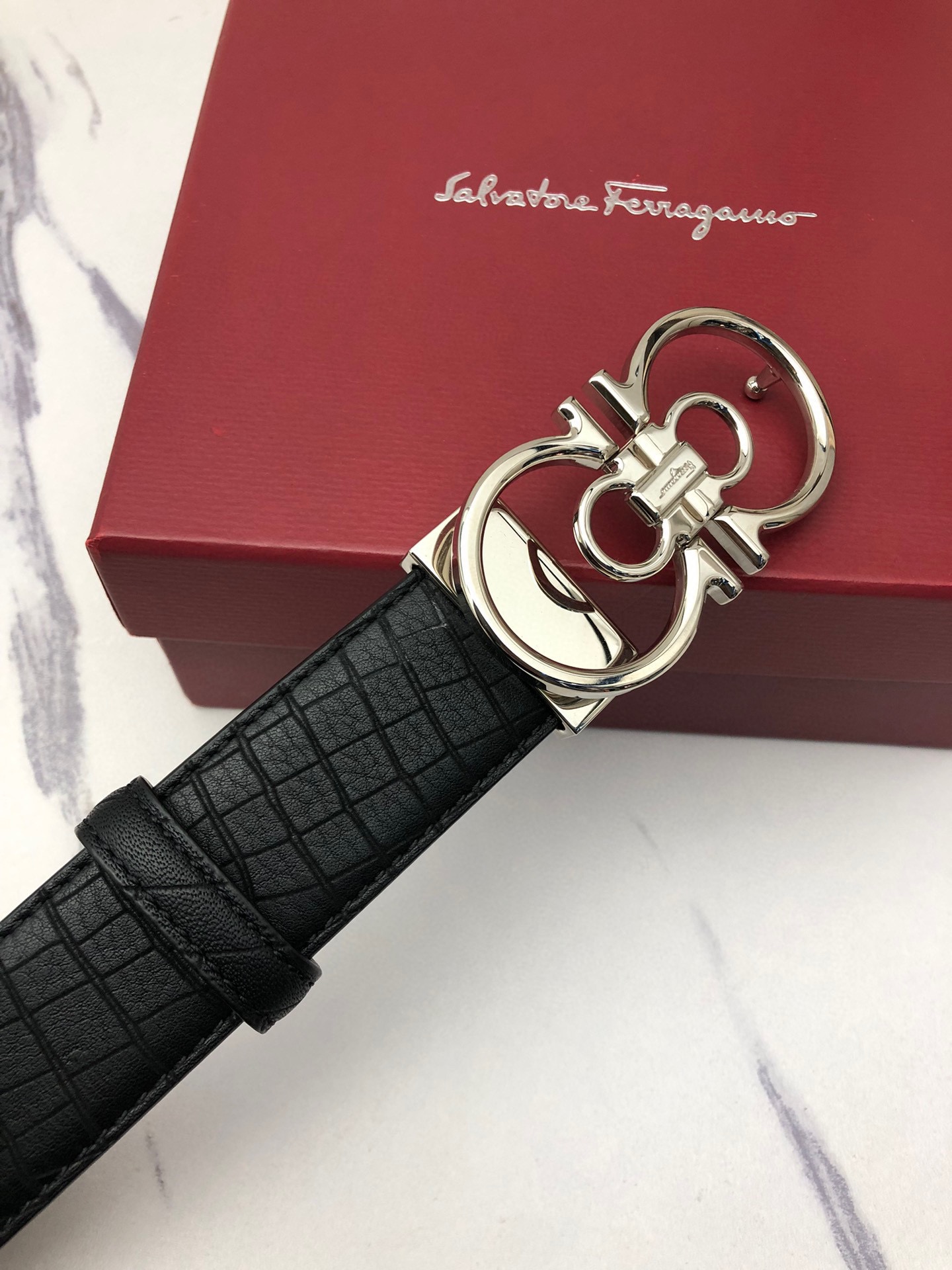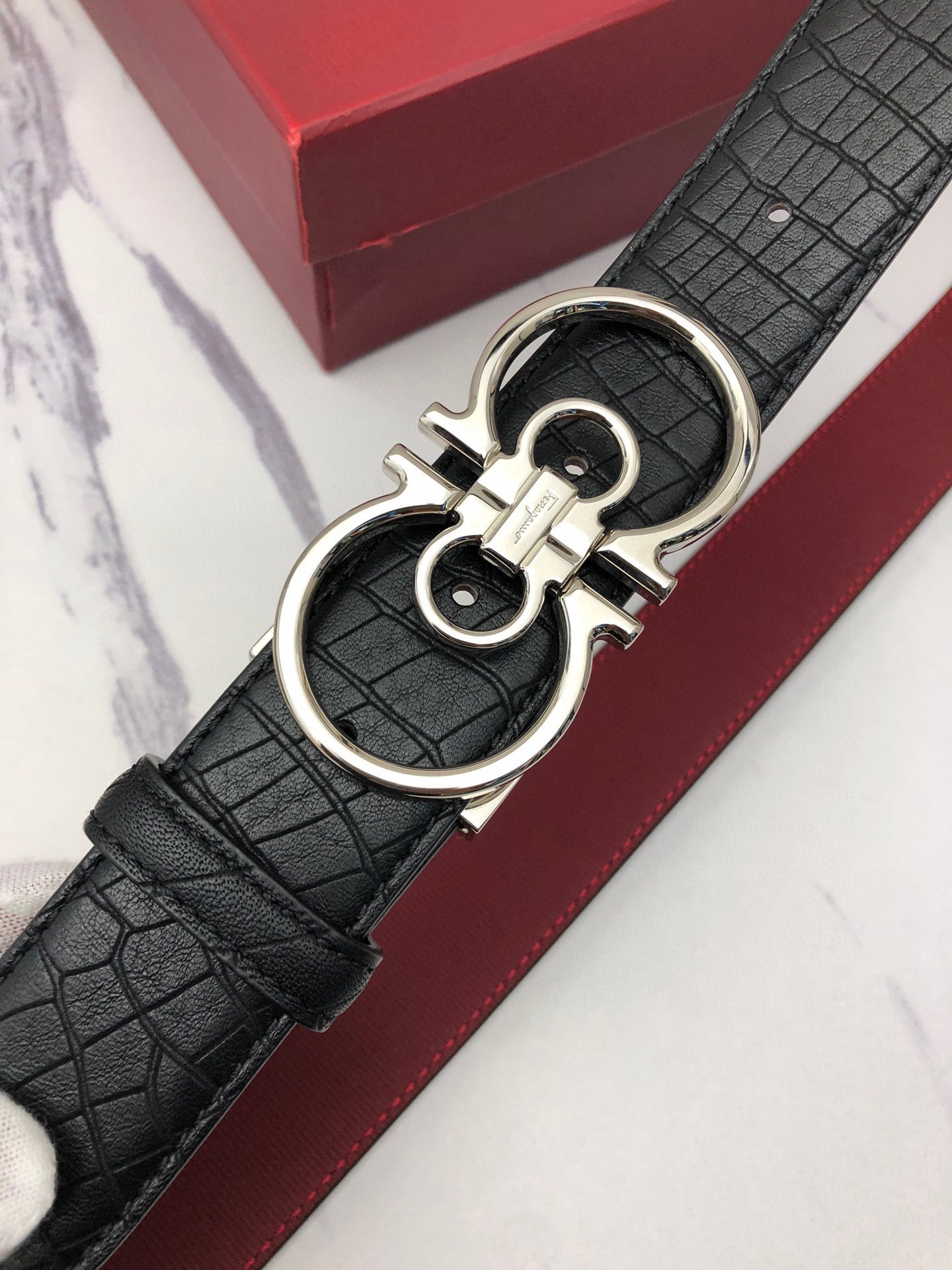 這款皮帶是AAAAA 1:1 質量(非常棒). 使用了和原版一模一樣的材料. 商標部分也保持了和菲拉格慕/Salvatore Ferragamo一樣. 圖片拍攝是實物皮帶拍攝, 您所收到的實物保證和我們圖片一模一樣.